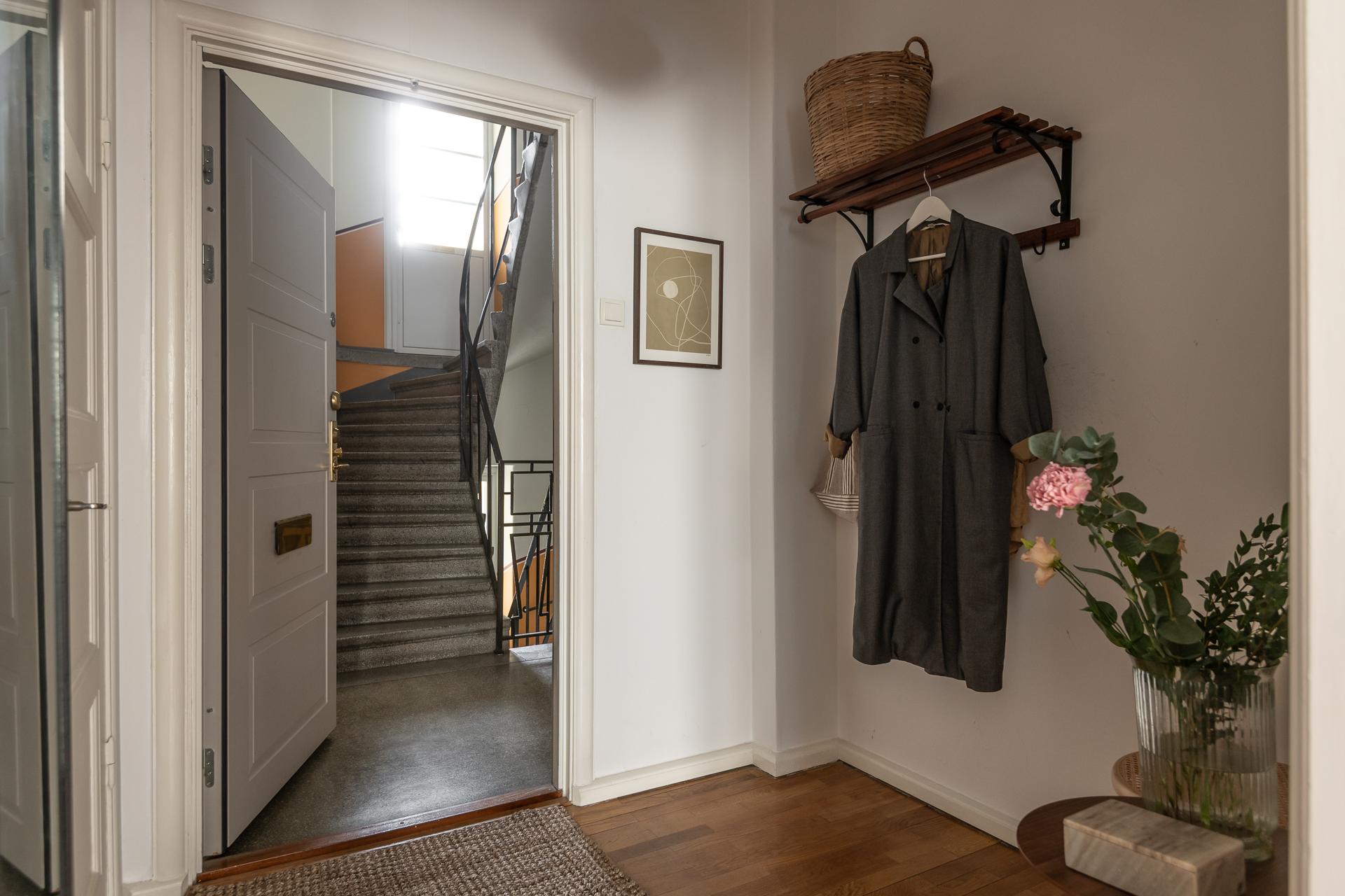 En ovanligt vacker tjugotalslägenhet i en mycket eftertraktad fastighet. Denna välplanerade 1,5:a erbjuder en smart planlösning med känslan av en liten mini-tvåa. Lägenheten är belägen på våning 2 av 5 med hiss och har höga fönster i västerläge som ger ett fint ljusinsläpp. Här möts du av smakfulla ytskikt, stilren stuckatur, klassisk stavparkett och djupa fönsternischer som förstärker den tidstypiska charmen. Bostaden tillhör en mycket välskött och stabil förening med god ekonomi och låg månadsavgift.