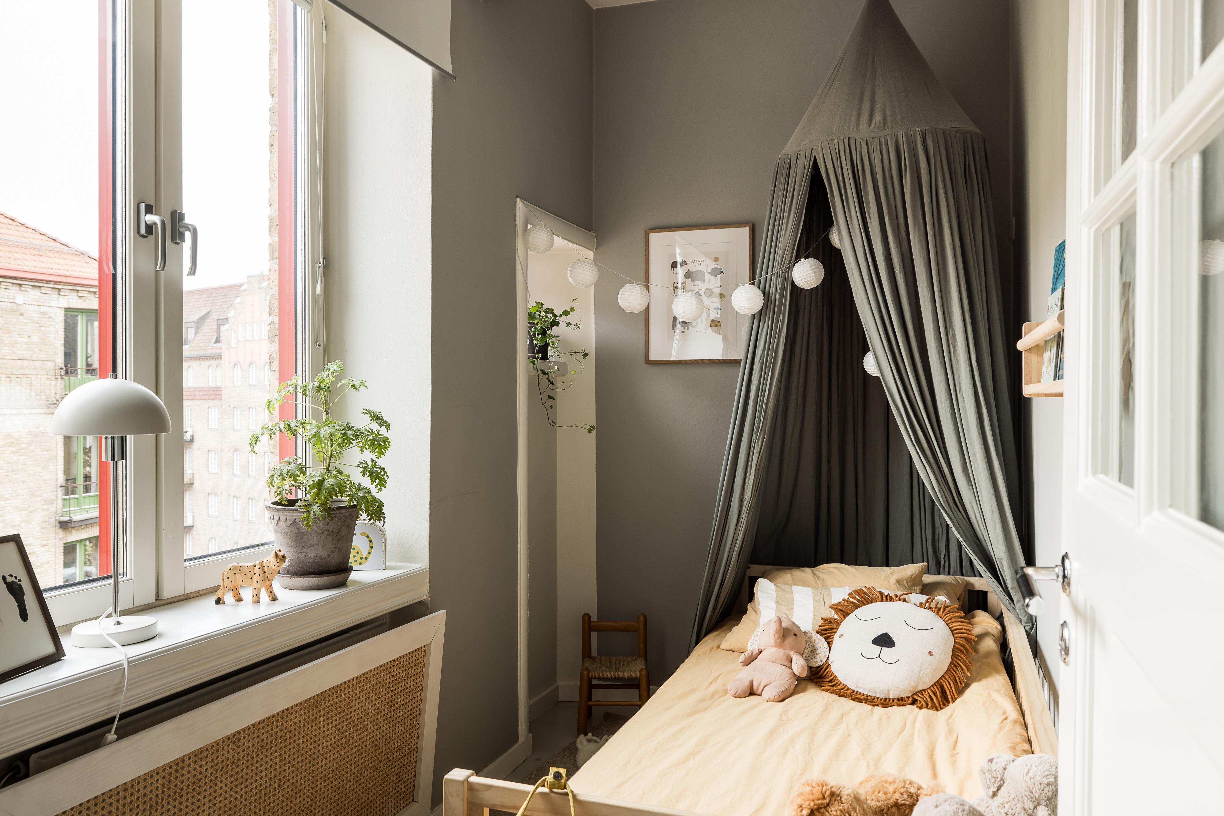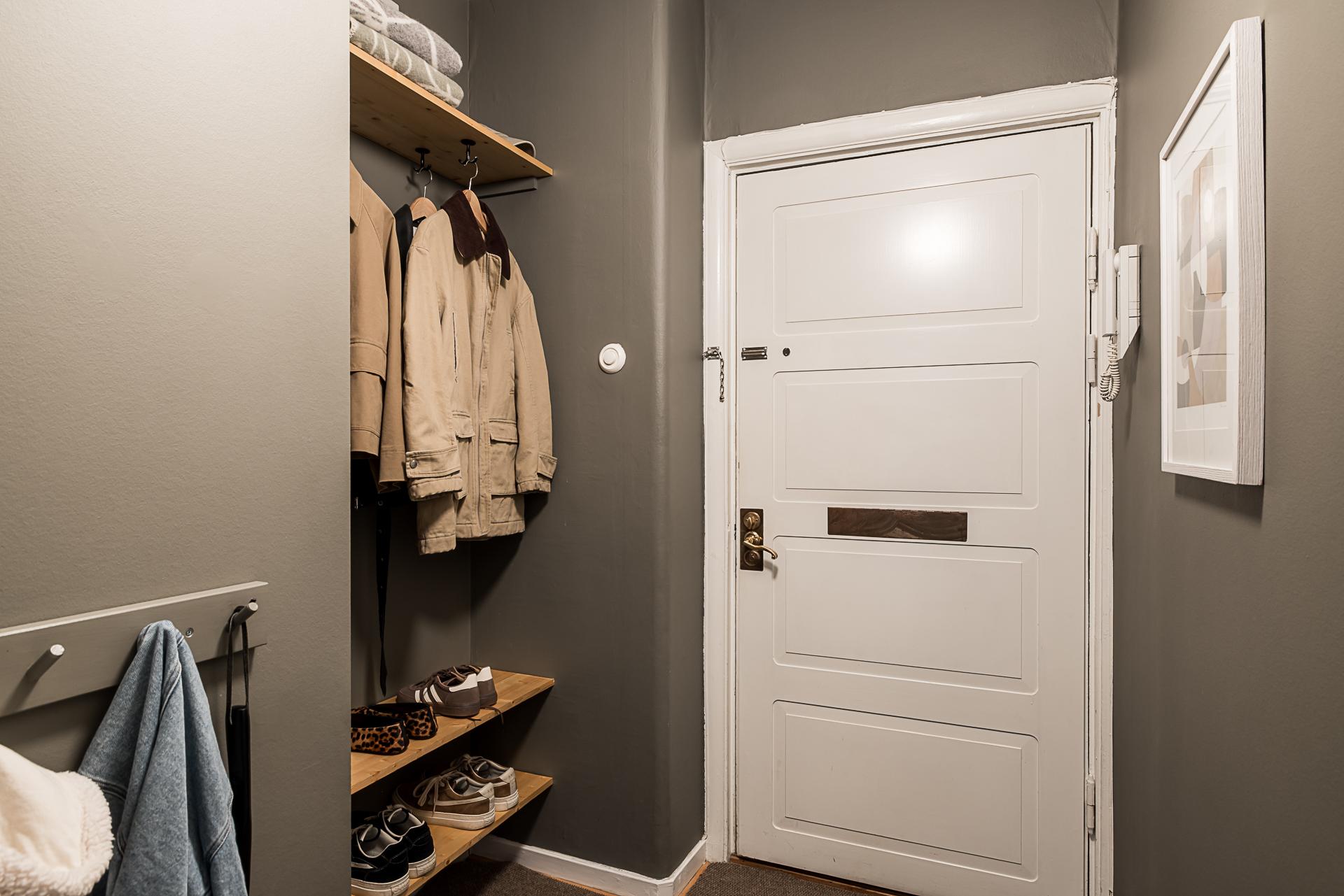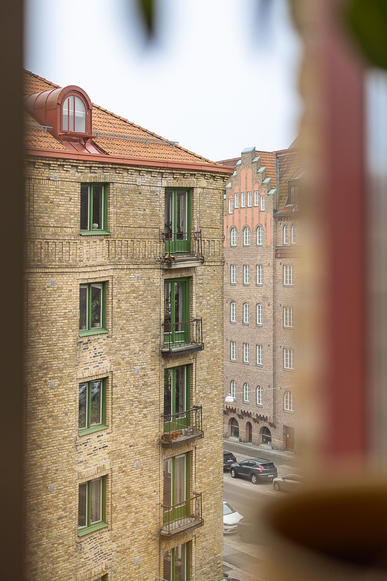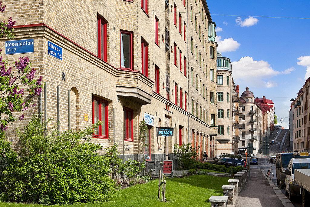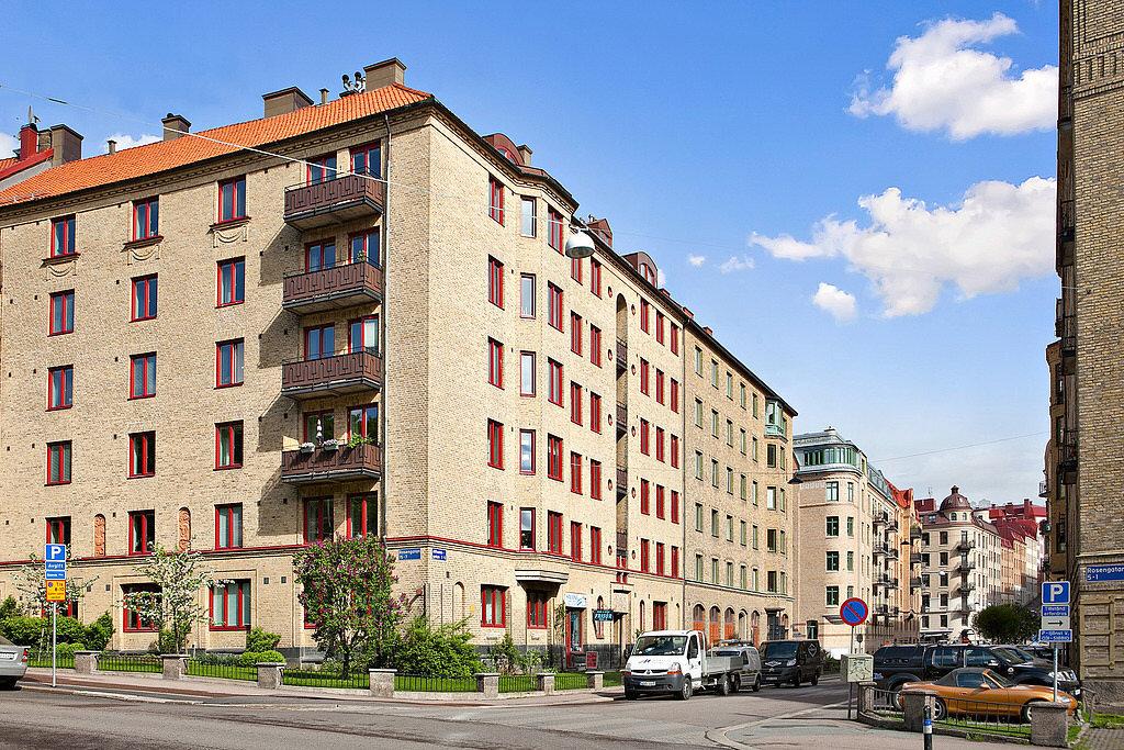 Högt upp i huset med ett attraktivt läge på Alfhemsgatan återfinns denna ovanligt fina 1920-talslägenhet. Många vackra och tidstypiska detaljer såsom högt i tak, takrosetter, djupa fönsternisch, listverk, ekparkett i fiskbensläggning, takmålning och fungerande öppen spis finns bevarat. Stora fönster och genomgående planlösning ger ett fint ljusinsläpp. Mycket välskött fastighet och bostadsrättsförening precis invid Slottsskogen.