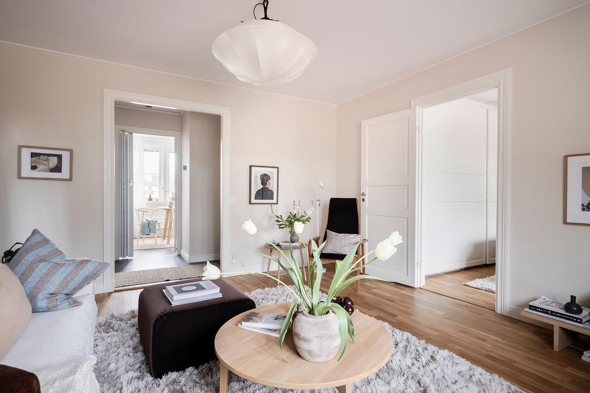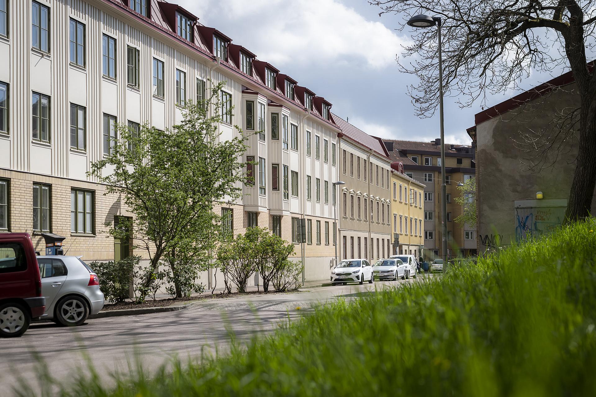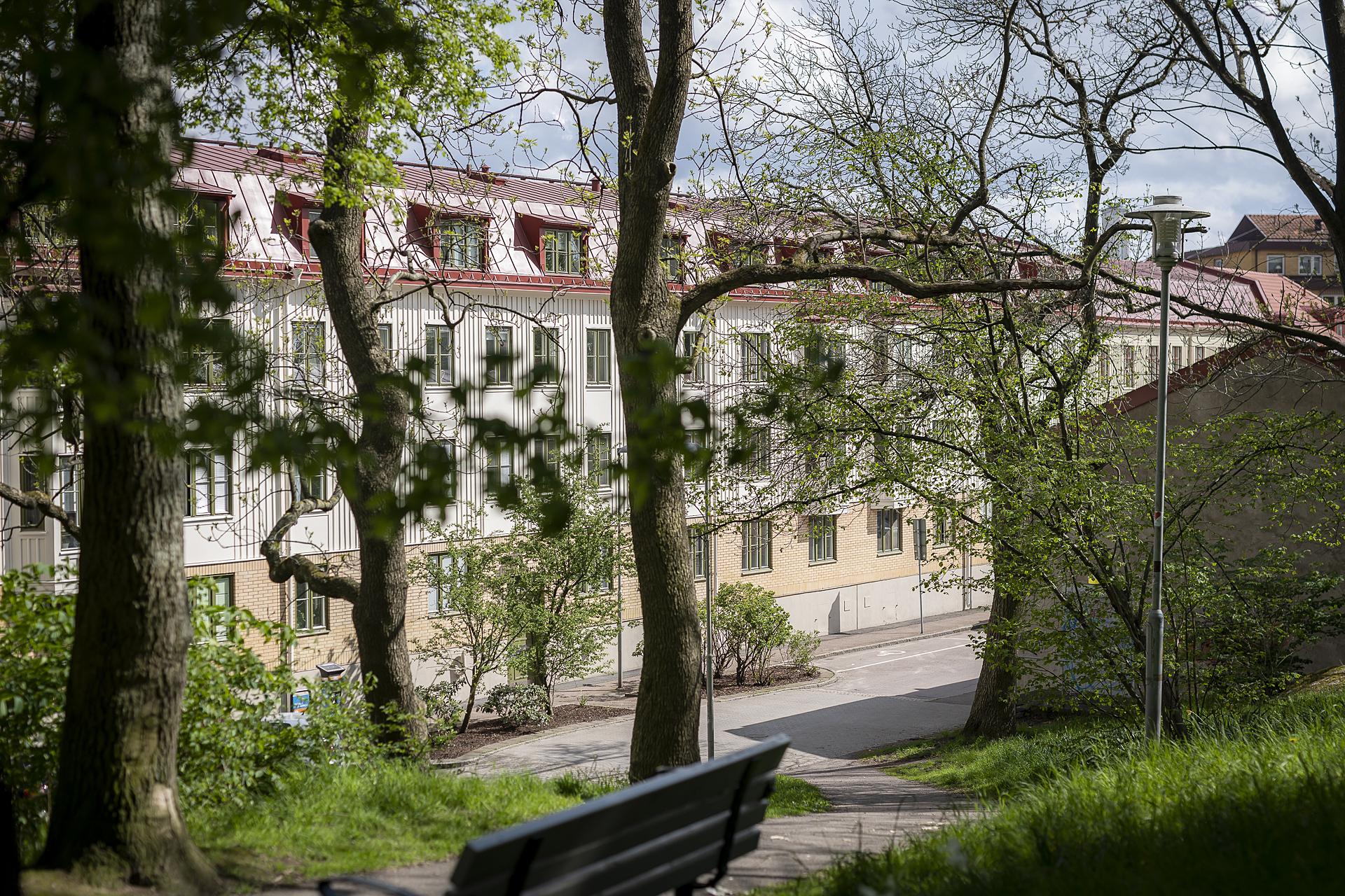 Den här välplanerade trean högst upp i ett fyravåningshus med hiss har en härlig Karlsson på taket-känsla, och från köket och det ena sovrummet blickar man ut över takåsar och himmel bort mot Östra kyrkogårdens trädtoppar. Utanför vardagsrummet och det andra sovrummet breder Redbergsparken ut sig. Det rofyllda läget mellan naturen och det vackra landshövdingehuskvarterets innergård gör lägenheten tyst och harmonisk trots att Redbergsplatsens puls och kommunikationer väntar direkt utanför porten. Dessutom är ljusinsläppet generöst, och solen orkar sig in även på vintern. Det är en stabil bostadsrättsförening med många lägenheter och goda hyresintäkter från flera kommersiella lokaler. Avgifterna har inte behövt höjas på flera år. Tillträde: fyra månader eller senare. Varmt välkommen hem!