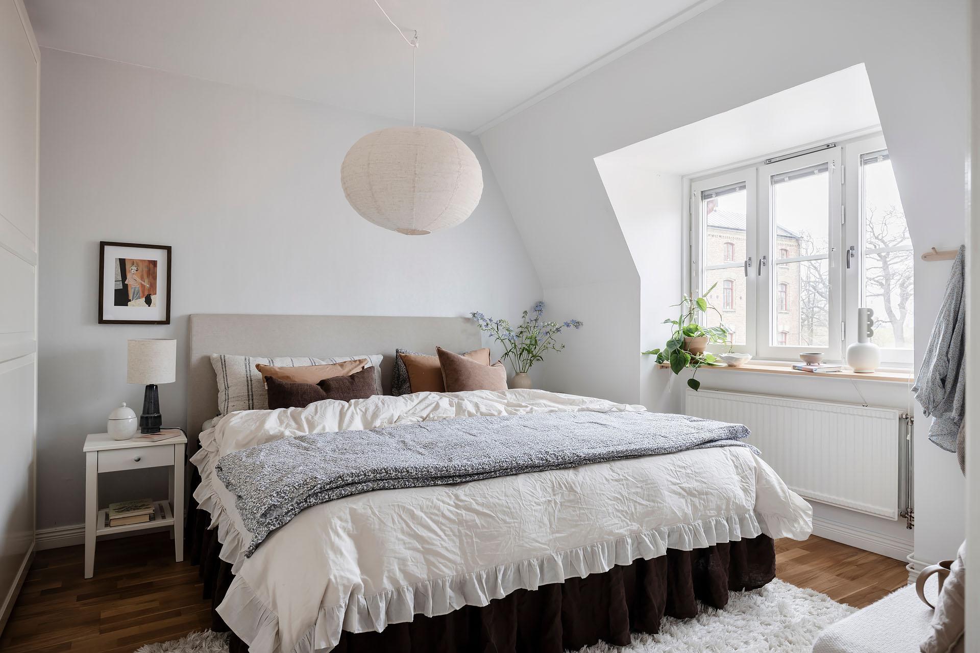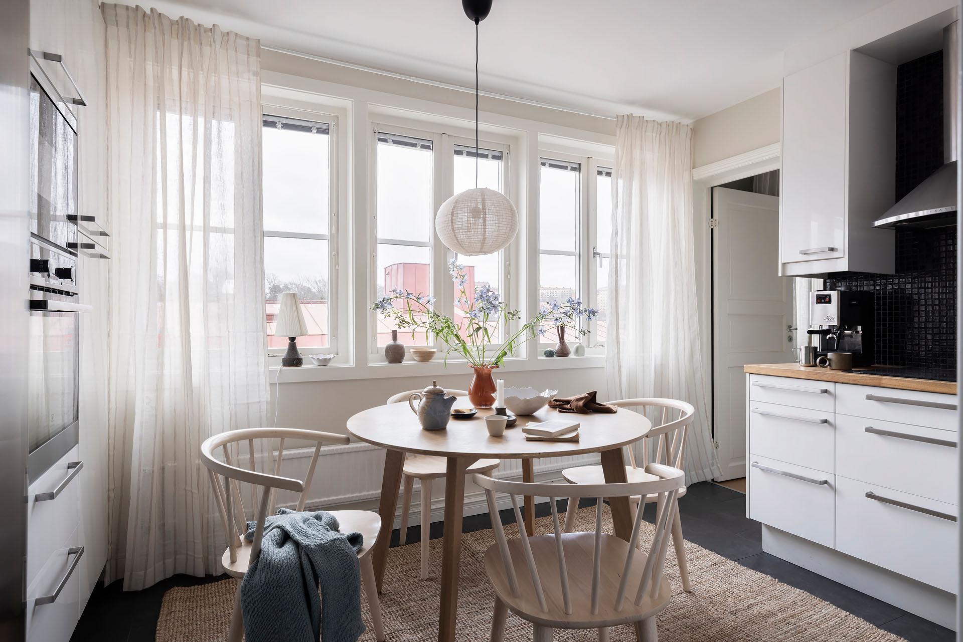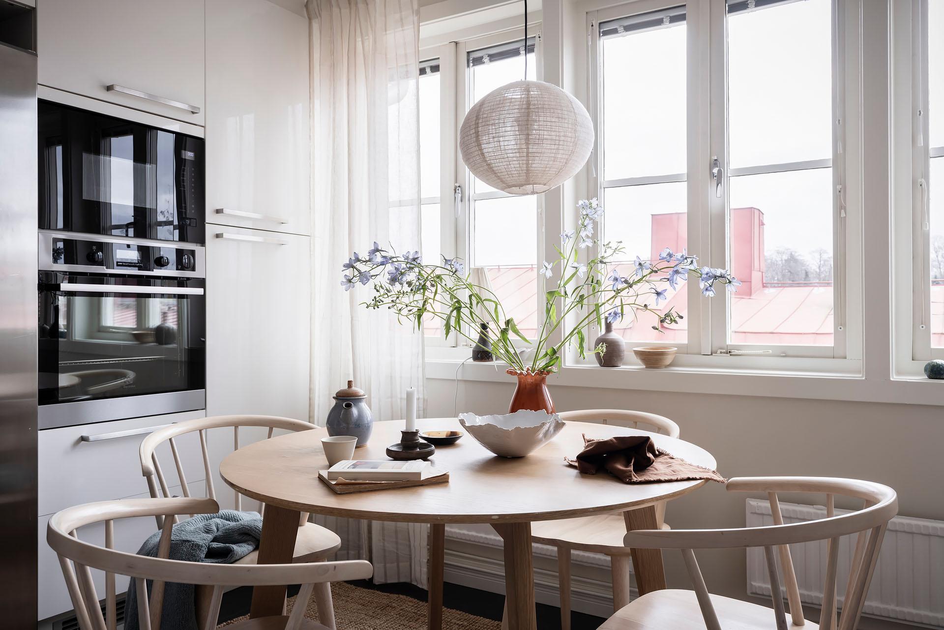 Den här välplanerade trean högst upp i ett fyravåningshus med hiss har en härlig Karlsson på taket-känsla, och från köket och det ena sovrummet blickar man ut över takåsar och himmel bort mot Östra kyrkogårdens trädtoppar. Utanför vardagsrummet och det andra sovrummet breder Redbergsparken ut sig. Det rofyllda läget mellan naturen och det vackra landshövdingehuskvarterets innergård gör lägenheten tyst och harmonisk trots att Redbergsplatsens puls och kommunikationer väntar direkt utanför porten. Dessutom är ljusinsläppet generöst, och solen orkar sig in även på vintern. Det är en stabil bostadsrättsförening med många lägenheter och goda hyresintäkter från flera kommersiella lokaler. Avgifterna har inte behövt höjas på flera år. Tillträde: fyra månader eller senare. Varmt välkommen hem!