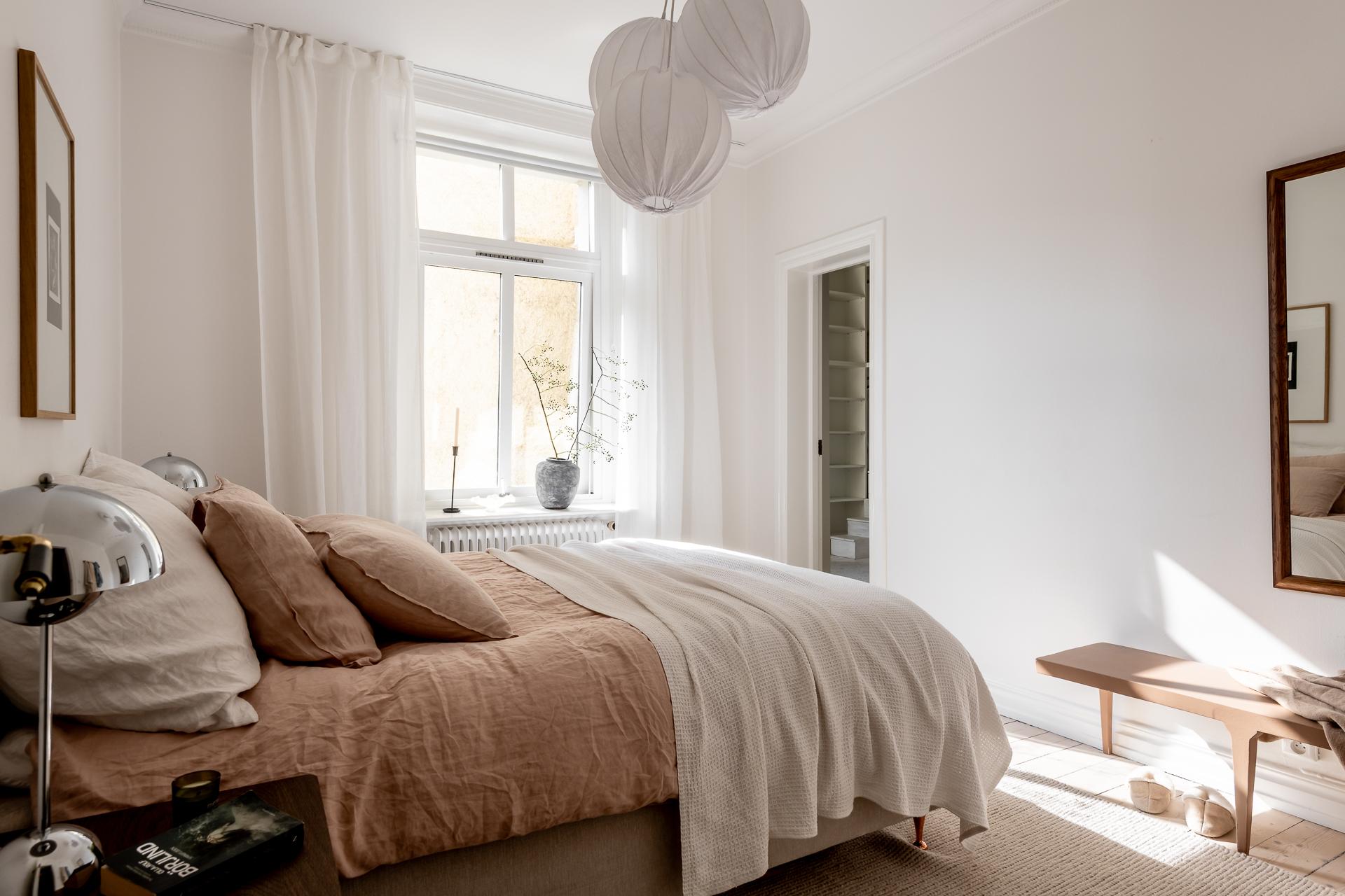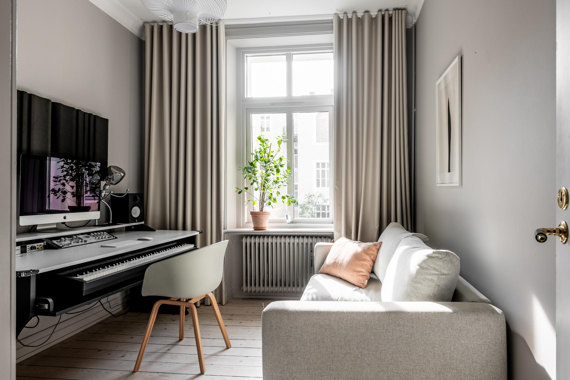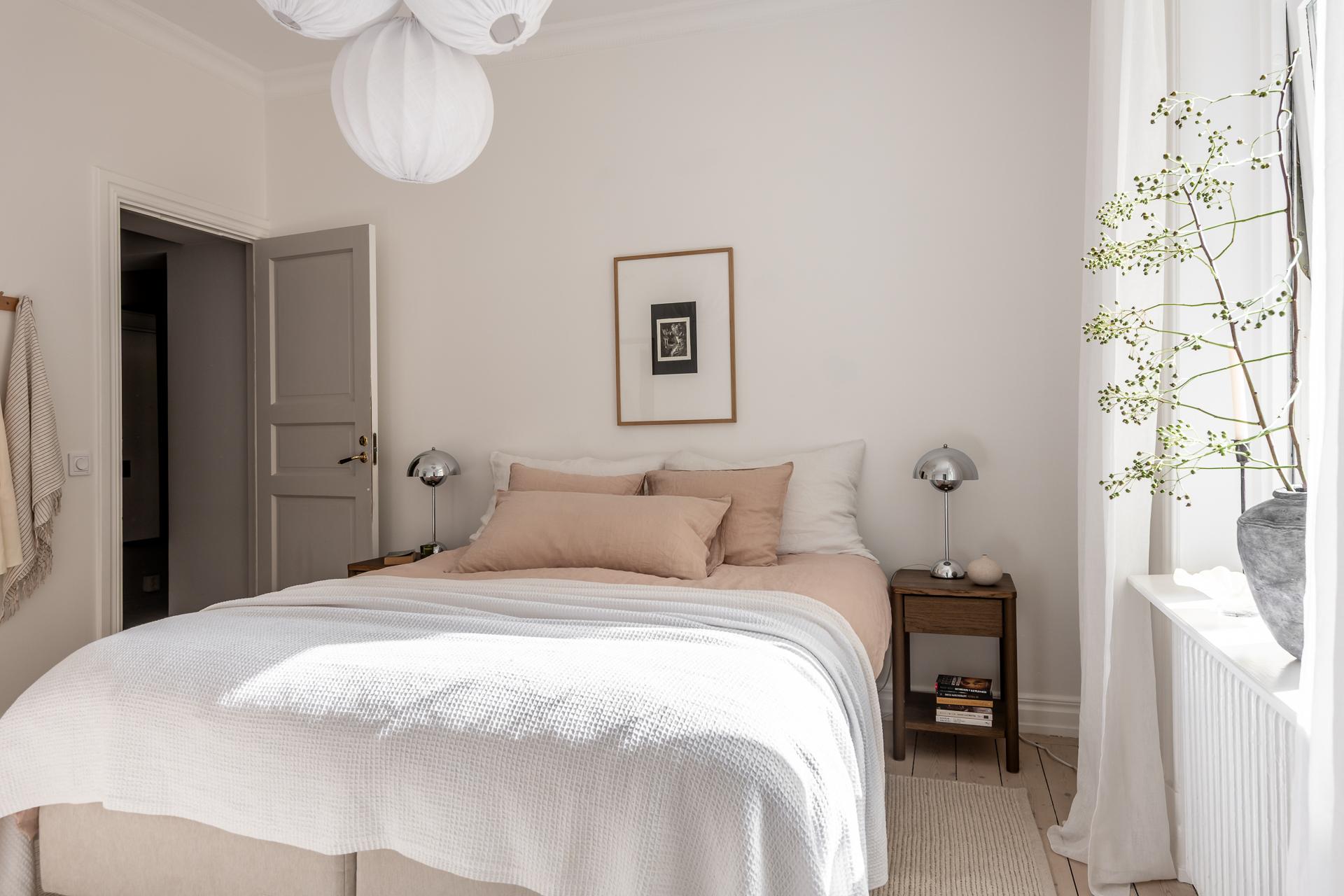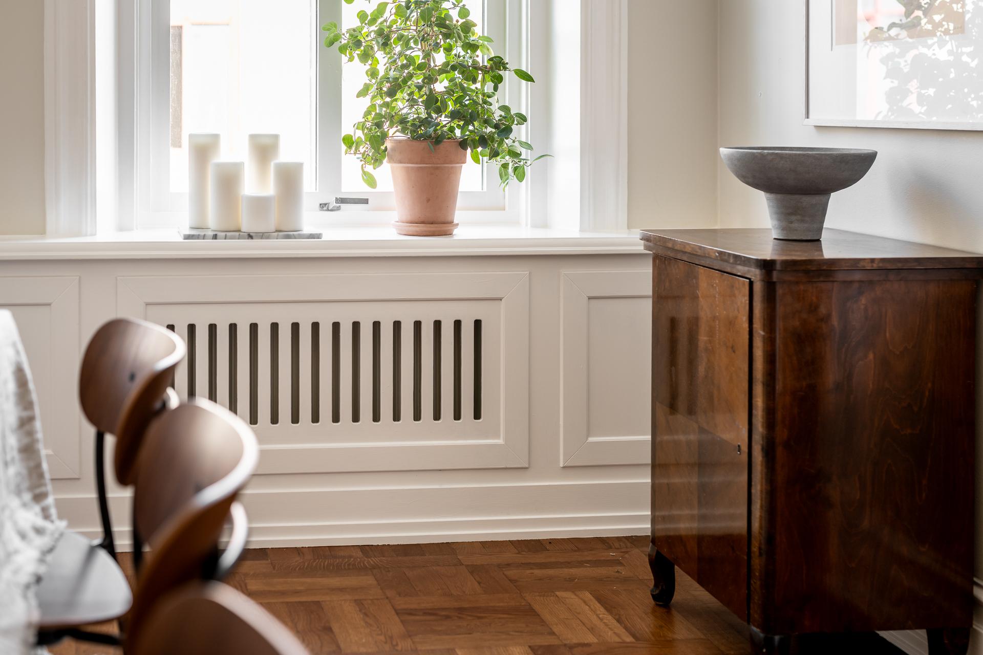 Vetter med sina fönster mot den tysta innergården. Så här har ni ett tyst och lugnt gårdsläge i hjärtat av myllrande Vasastaden. Här kan ni möblera med dubbelsängar med tillhörande nattduksbord. Det vackra brädgolvet är framtaget och vitbetsat och taket pryds av stuckatur. Flertalet garderober ger all önskvärd förvaring. För att inte nämna klädkammaren med platsbyggd inredning från golv till takt vilket ger utmärkt förvaring, möjligt arbetsrum och/eller en bra barnkammare.
