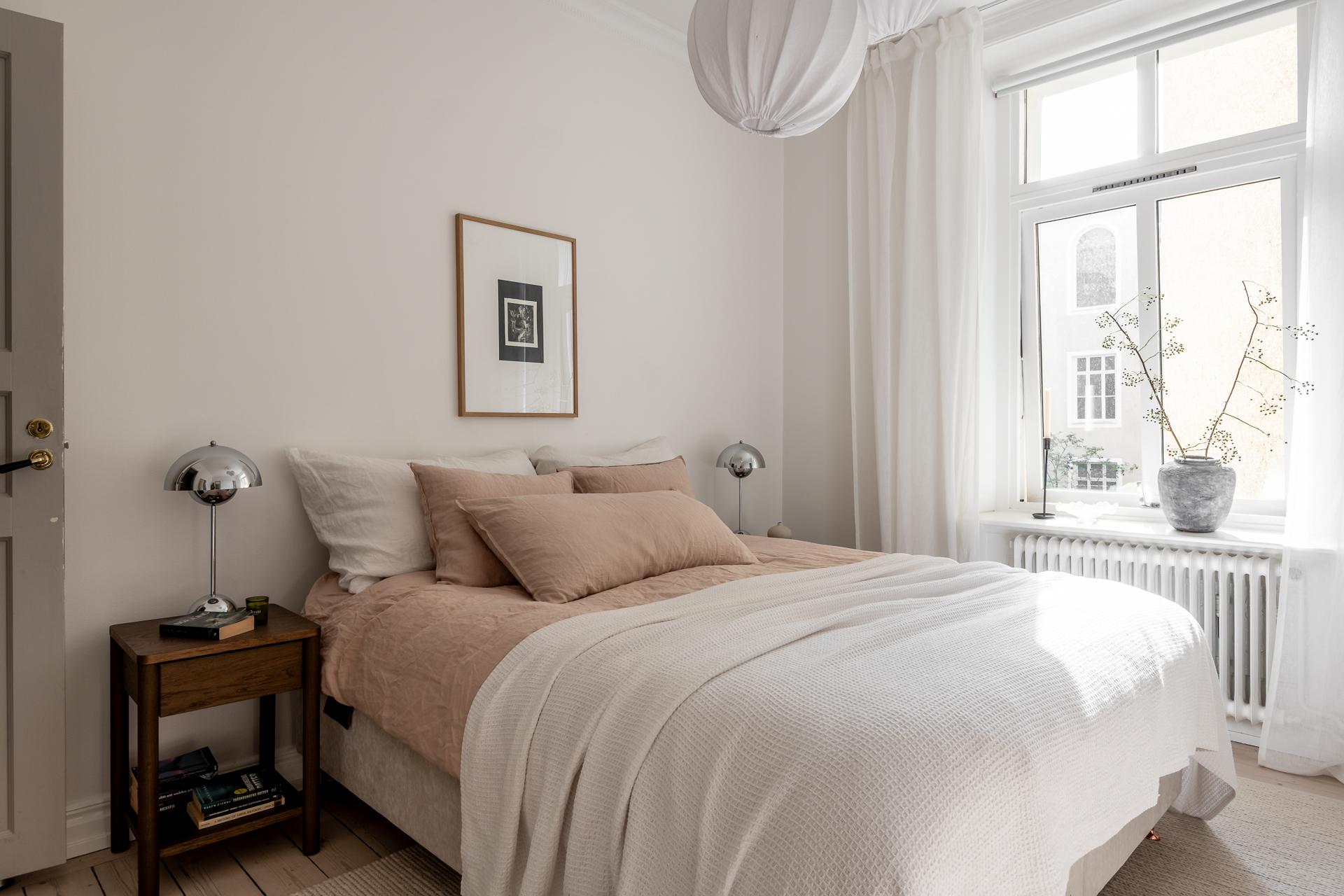 Även detta sovrum vetter mot den tysta innergården. Framtaget brädgolv och målade väggar. Bra storlek.