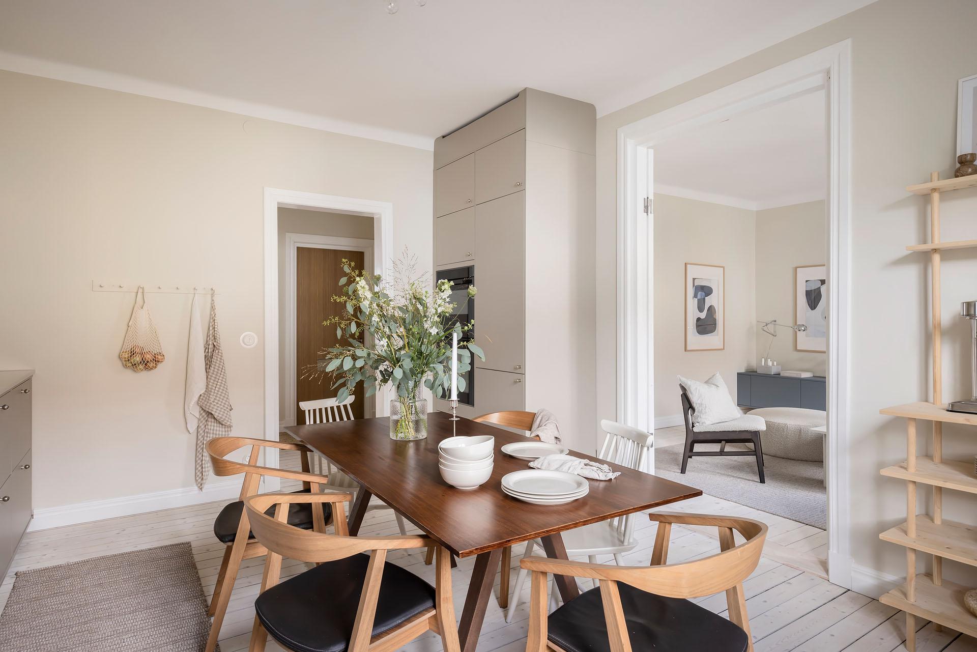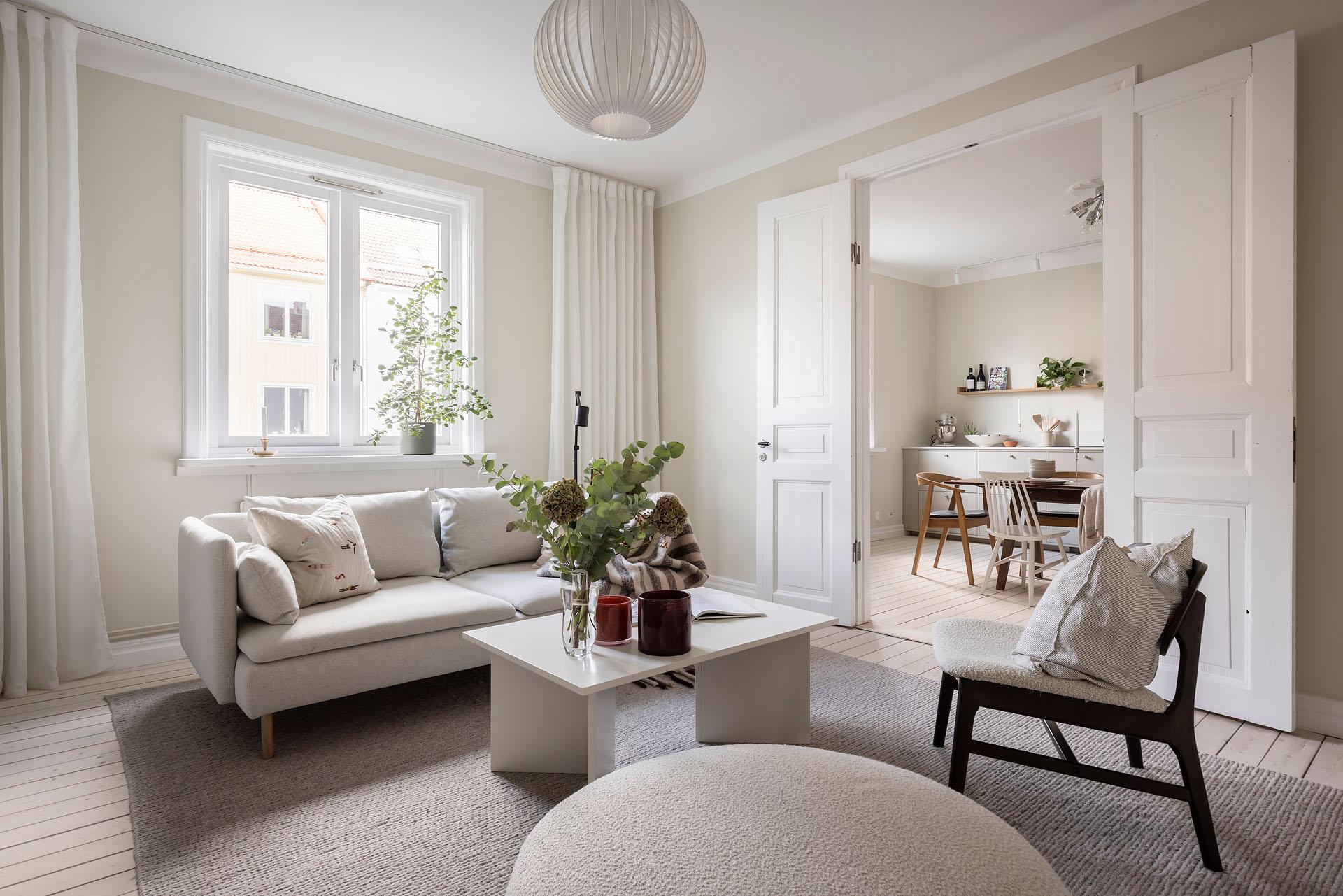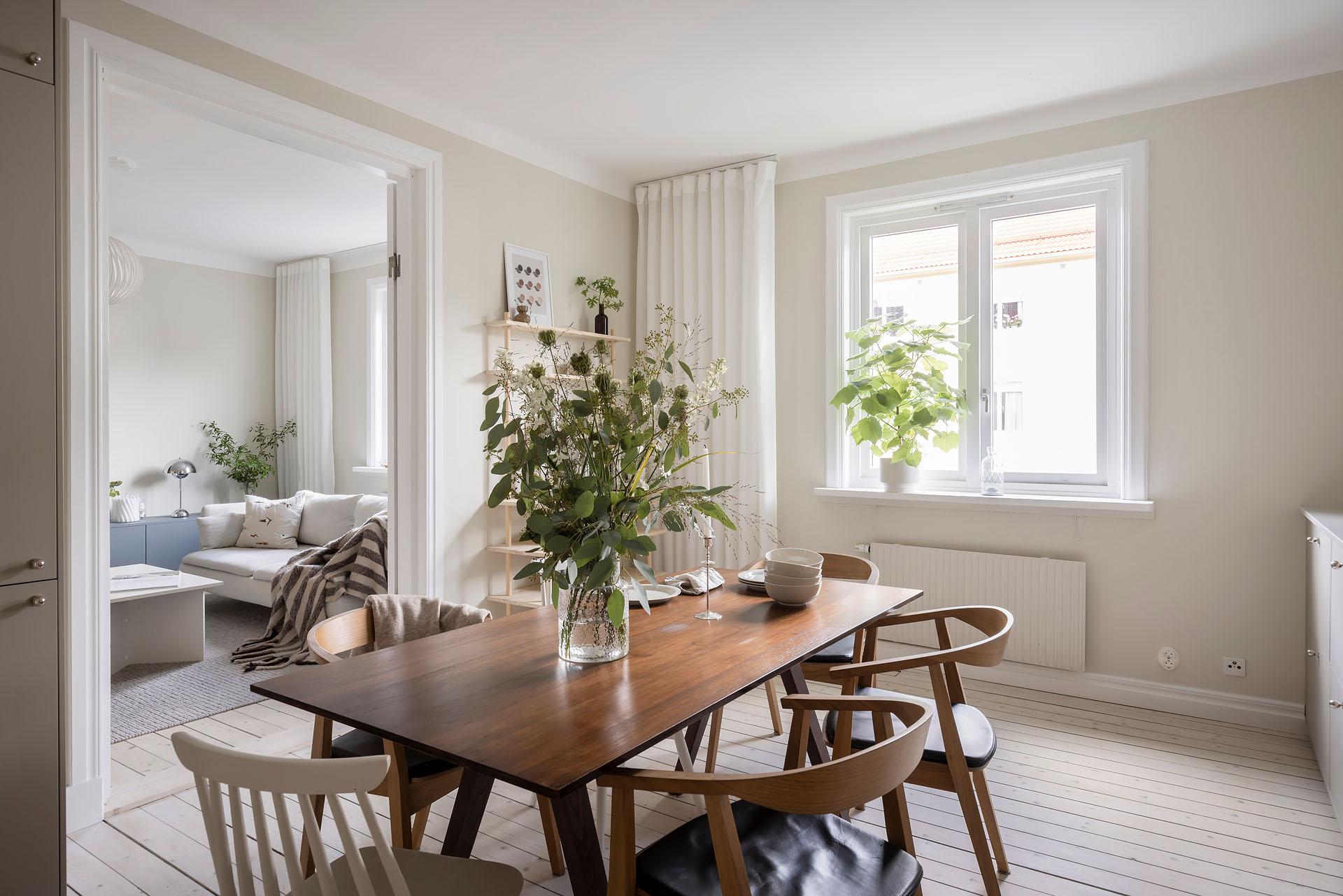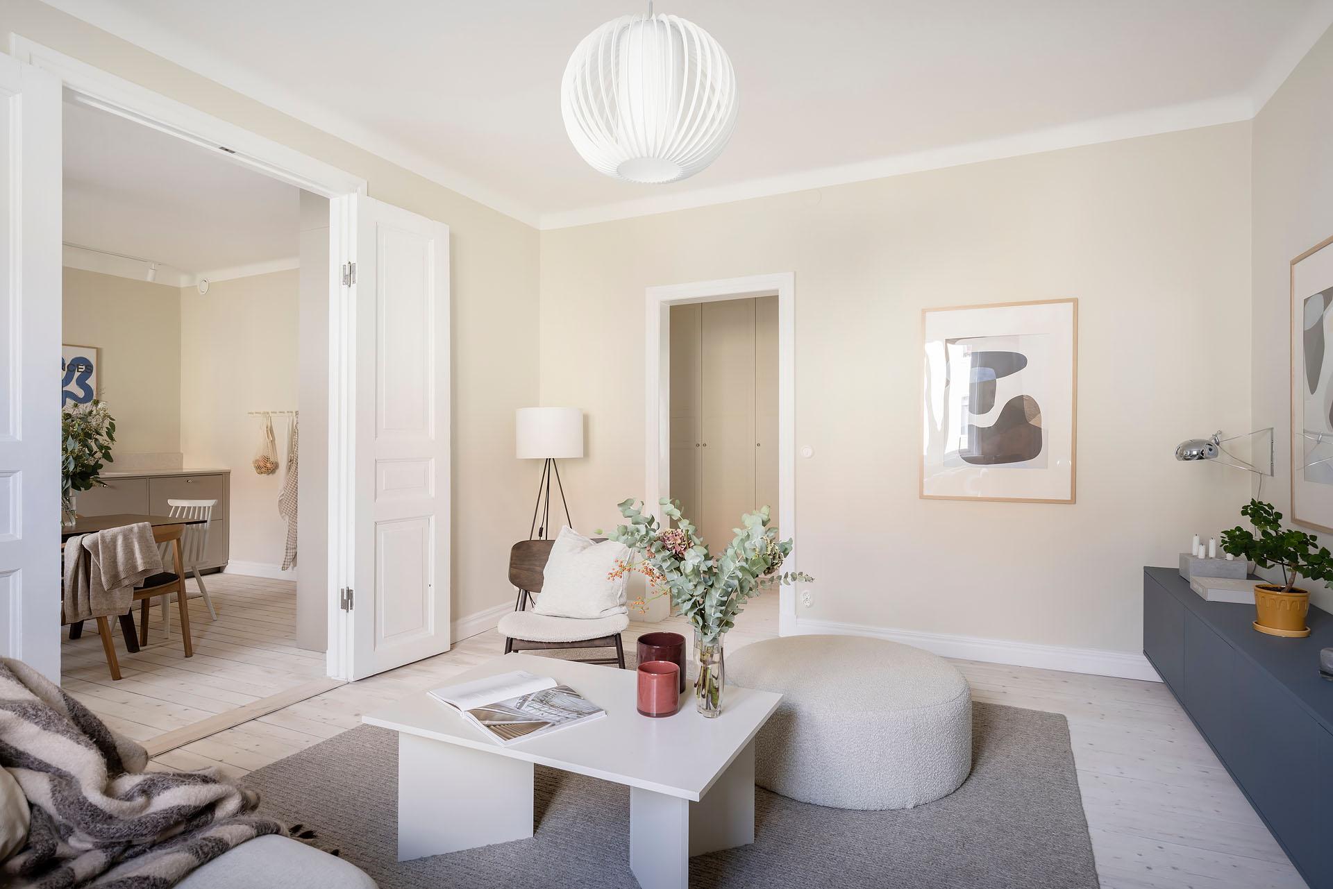 Vacker trea som totalrenoverades 2023. Planlösningen har optimerats genom att köket flyttats och placerats i ett sällskapsvänligt, halvöppet samband med vardagsrummet. Genomgående vitpigmenterade brädgolv och mjukt ljusa väggar ger en varm, välkomnande känsla och ljuset vandrar fritt genom fönster i två väderstreck. Båda sovrummen vetter mot den lugna innergården. Badrummet är totalrenoverat i samband med stambyte för två år sedan, och förberett för tvättmaskin. Här bor du på en stillsam adress med närhet till både stadspuls och grönska, i en välskött förening där det bara är att flytta in och trivas.