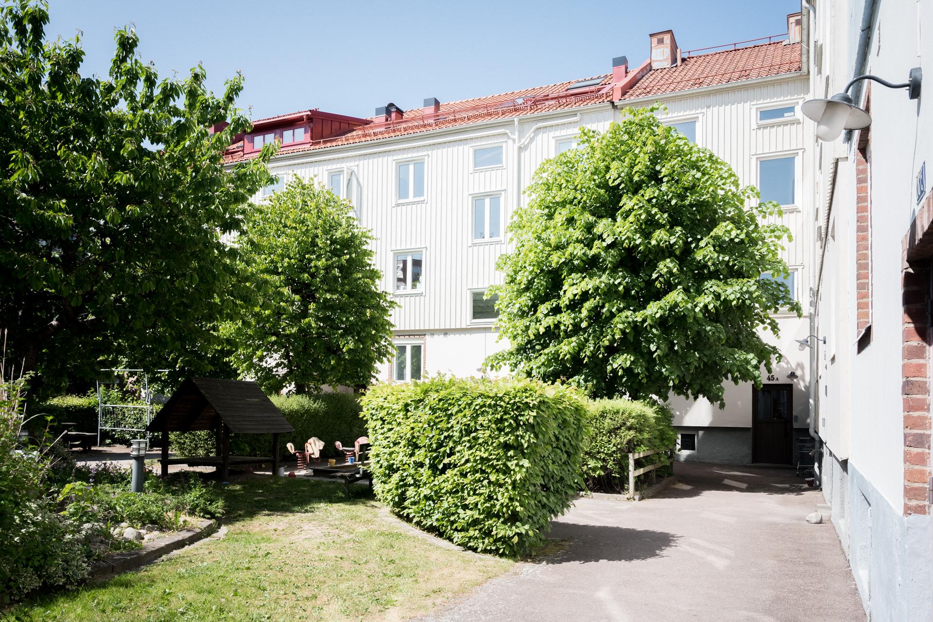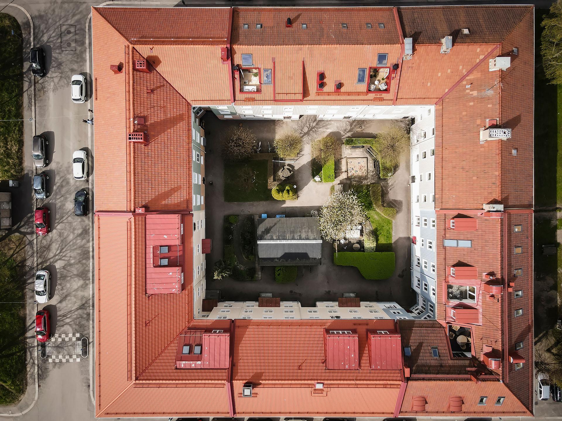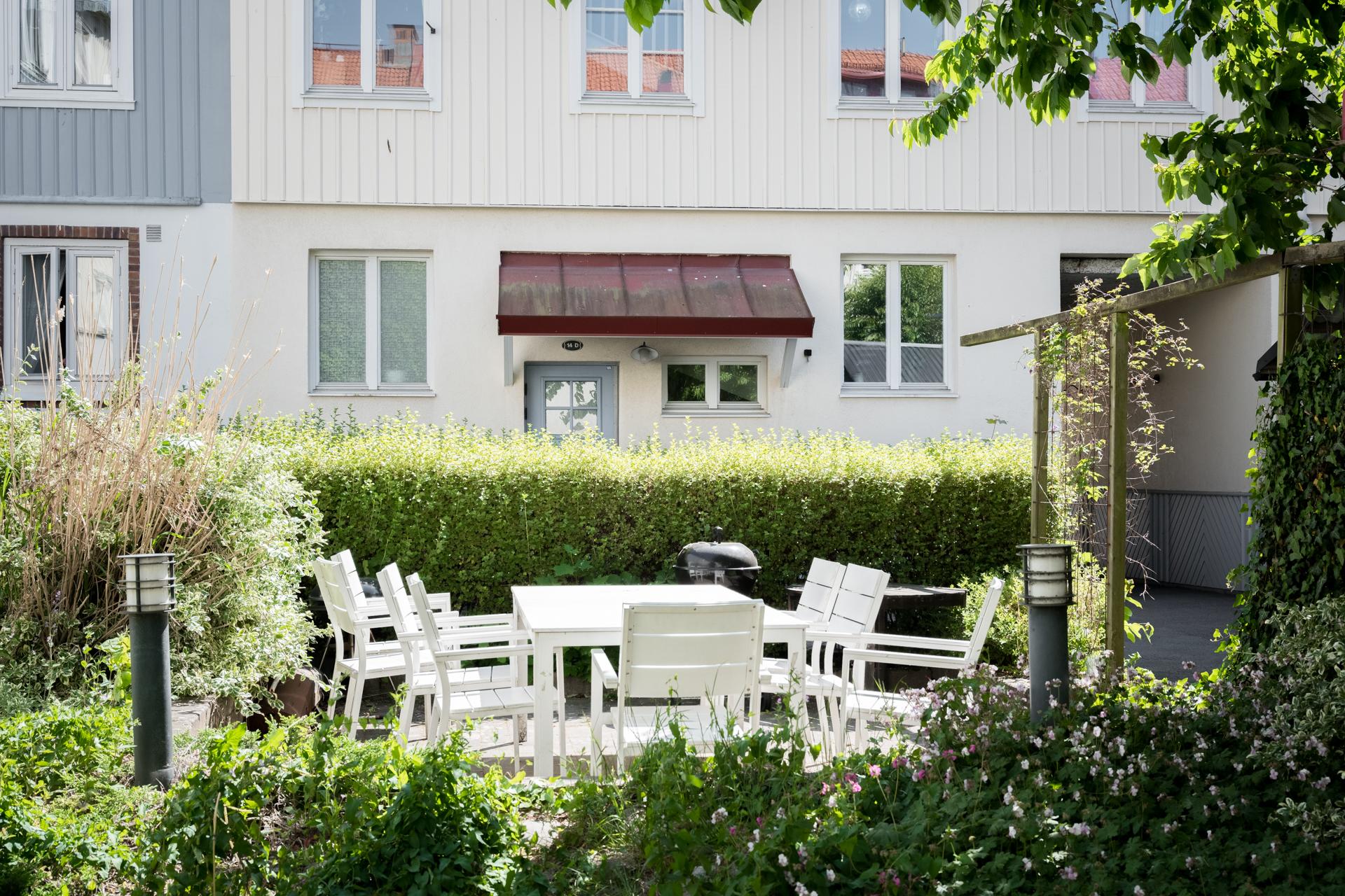 - Balkong/Uteplats: Nej. Gemensam innergård med sittplatser och lekplats.