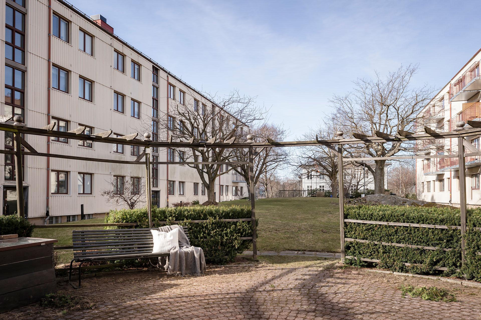 I Johanneberg råder en avslappnad och rogivande atmosfär med omgivningar som har allt du kan önska dig. Kvarterskrogar, trevliga kaféer, och mysiga butiker varvas med alla de härliga grönområden som kännetecknar stadsdelen. Här bor man väligt nära Chalmers och flera av universitetets institutioner, en kort promenad bort finns Carlanderska parken och grönskan uppe vid Humanisten och Näckrosdammen, Södra Vägen och Göteborgs paradgata Avenyn som rymmer allt från shopping till nöjes- och kulturliv, men också restauranger, hotell och salonger, evenemangstråket med Liseberg, Svenska mässan, Scandinavium, biografen Bergakungen och sist men absolut inte minst Ullevi. Korsvägen som är en stor knytpunkt för kollektivtrafiken där man med buss och spårvagn kan ta sig till Göteborgs alla hörn och kranskommuner nås efter en kort promenad. Här går dessutom flygbussen direkt till Landvetter flygplats för resor vidare ut i Sverige och världen. Tar du dig runt med bil når du leden både södergående och norrgående på bara ett par minuter. Precis runt husknuten trafikerar tre busslinjer 61’an till Järntorget, 60 mot Brunnsparken och 63 till Linné. Mossens elljusspår och ett brett utbud av träningsanläggningar finns i närområdet.