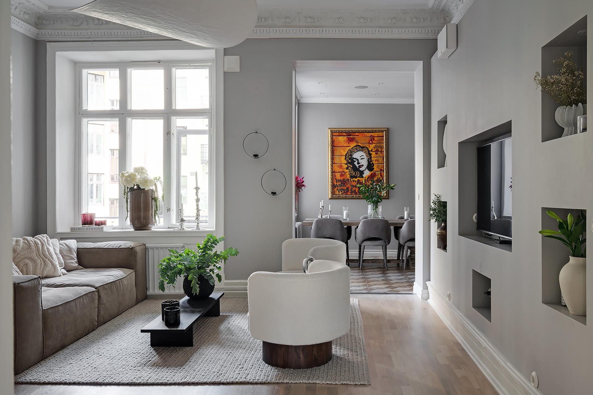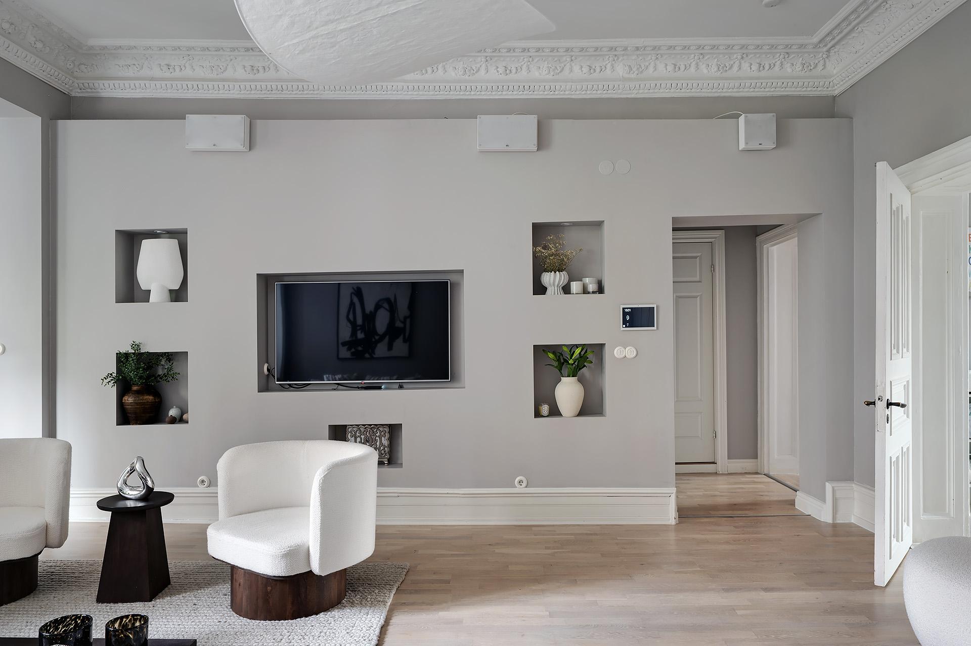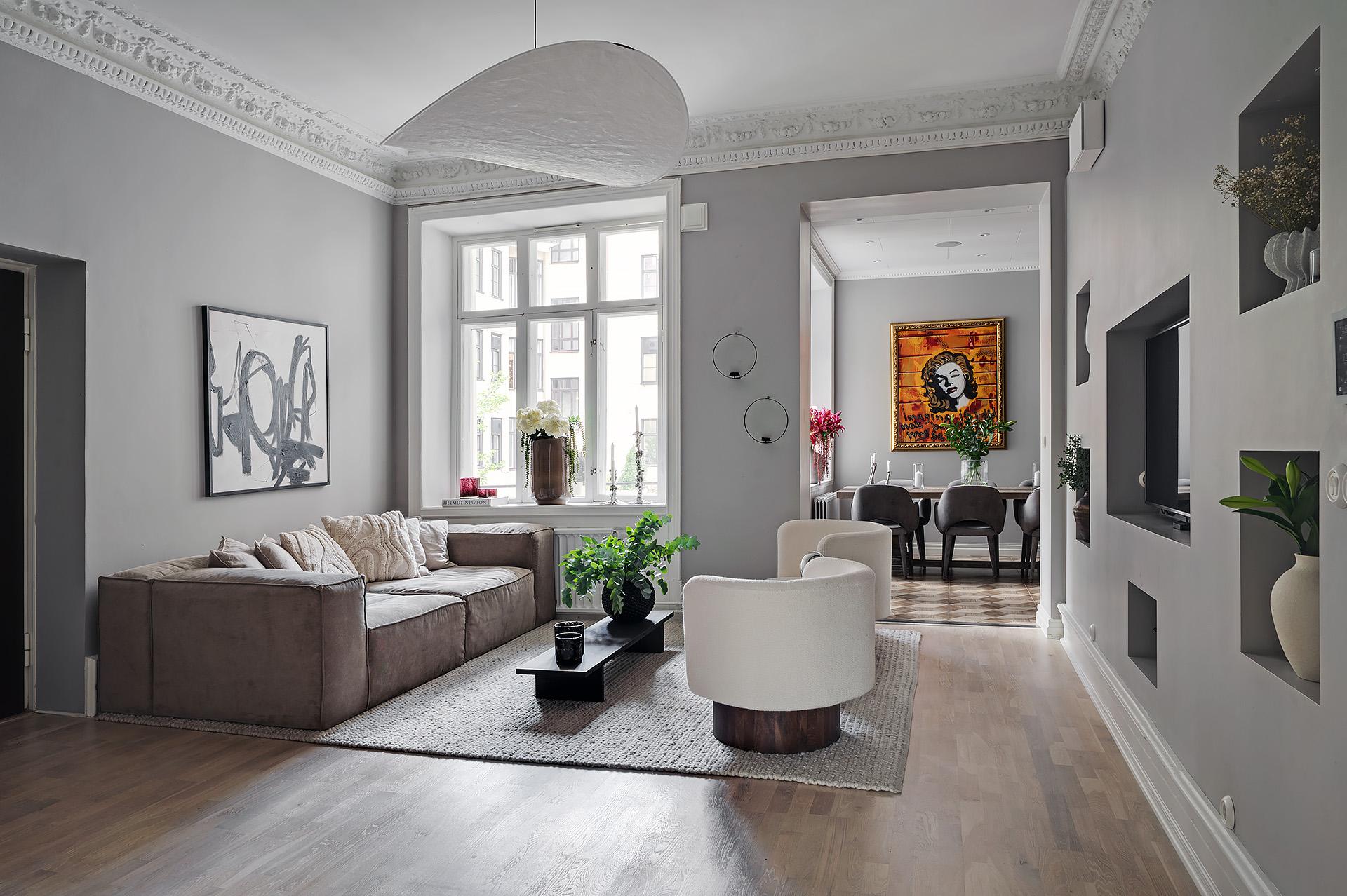 Likt en gräddbakelse på Erik Dahlbergsgatan ståtar Brf Palazzo di Dahlberg. Likt namnet kanske vittnar om är denna totalrenoverade förening nu av högsta klass genomgående. Köksinredning från Poliform, italienskt klinkergolv, mattlackade, nyslipade elegant ljusa ekgolv, vitvaror från Gaggenau, köksfläkt från Fjäråskupan, dubbla kylar och frysar och en slående takhöjd på på dryga 3,20 meter. Två bra sovrum. Vila ögonen på högresta fönster, takrosett och stuckaturer som få kan slå på fingrarna. Elegant badrum med hotellkänsla. Både med dusch badkar och separat tvättmaskin samt torktumlare. Balkong i mot gård och hiss utan trappsteg från gatan. Mitt i gräddan av Vasastaden. Välkommen till Erik Dahlbergsgatan 20A, välkommen hem.