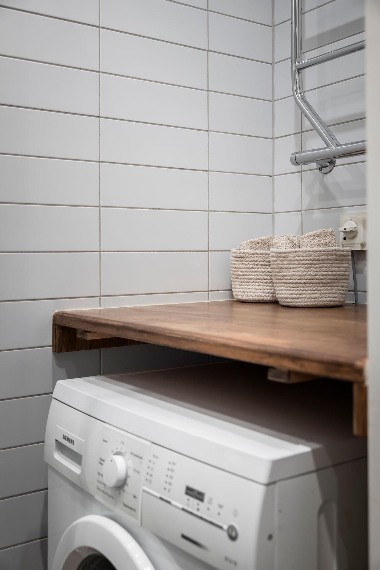 Tvättstuga: I varje hus finns en tvättstuga med två tvättmaskiner, en torktumlare och en centrifug. Det är lätt att få tid.