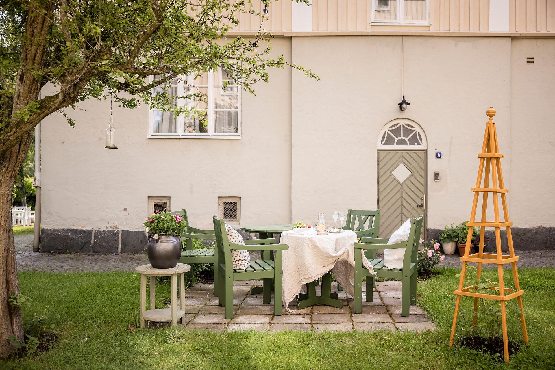 - Balkong/Uteplats: Nej. Gemensamutomhusmiljö med utemöbler, odlingslådor och grönska.