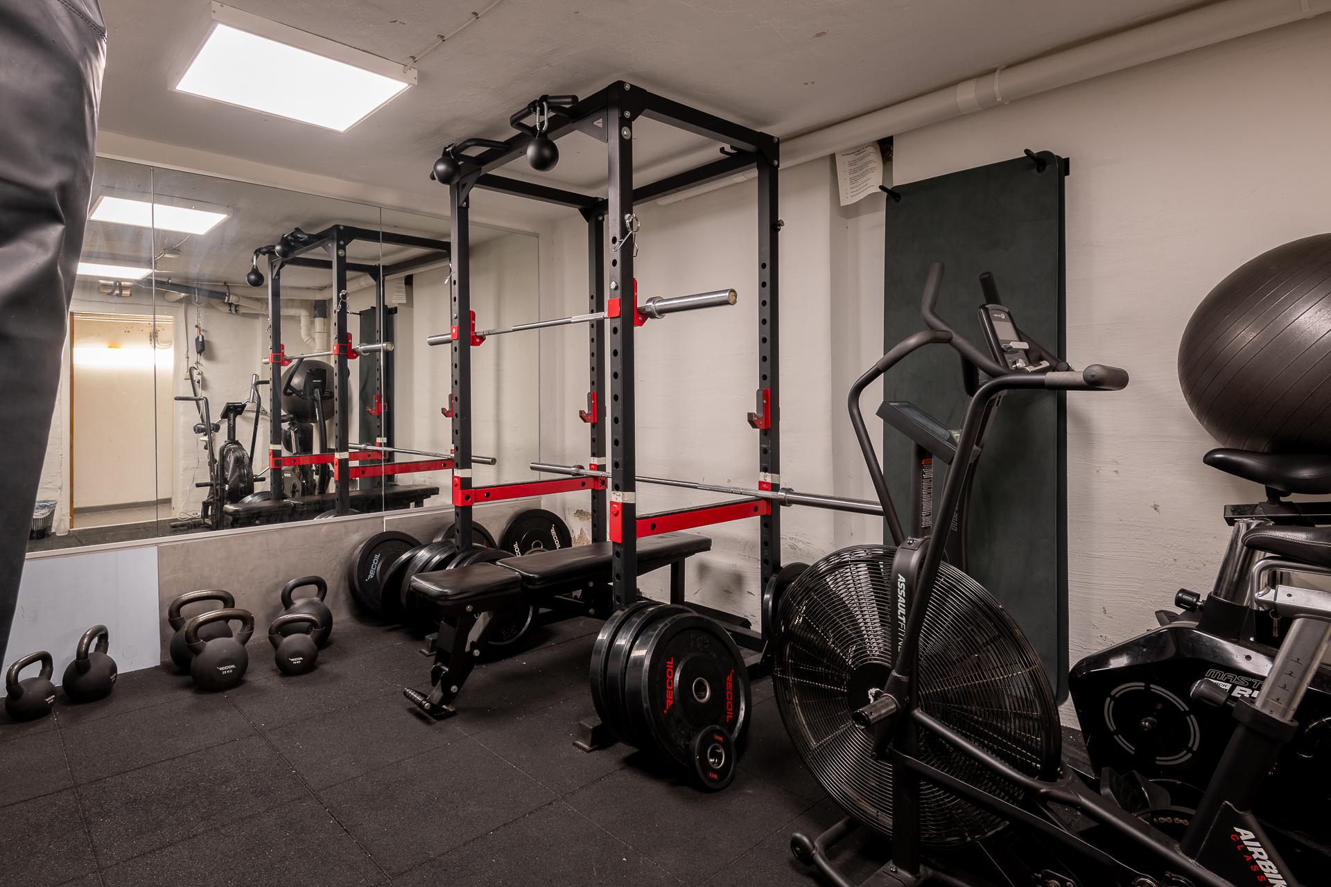 - Övriga utrymmen: Föreningen har ett fullt utrustat gym för sina medlemmar i källaren. Här finns även ett hobbyrum/snickeriverkstad, barnvagnsrum, cykelrum samt välutrustad tvättstuga.