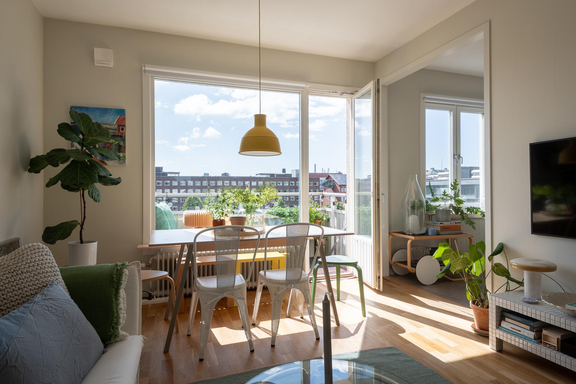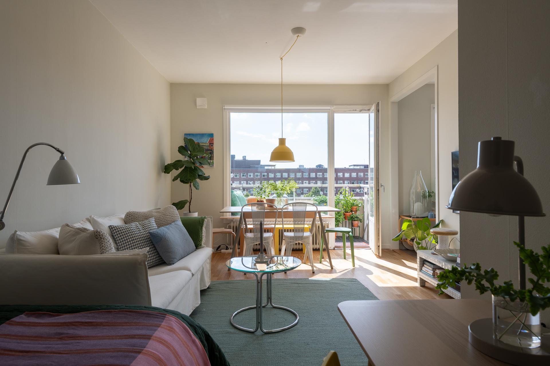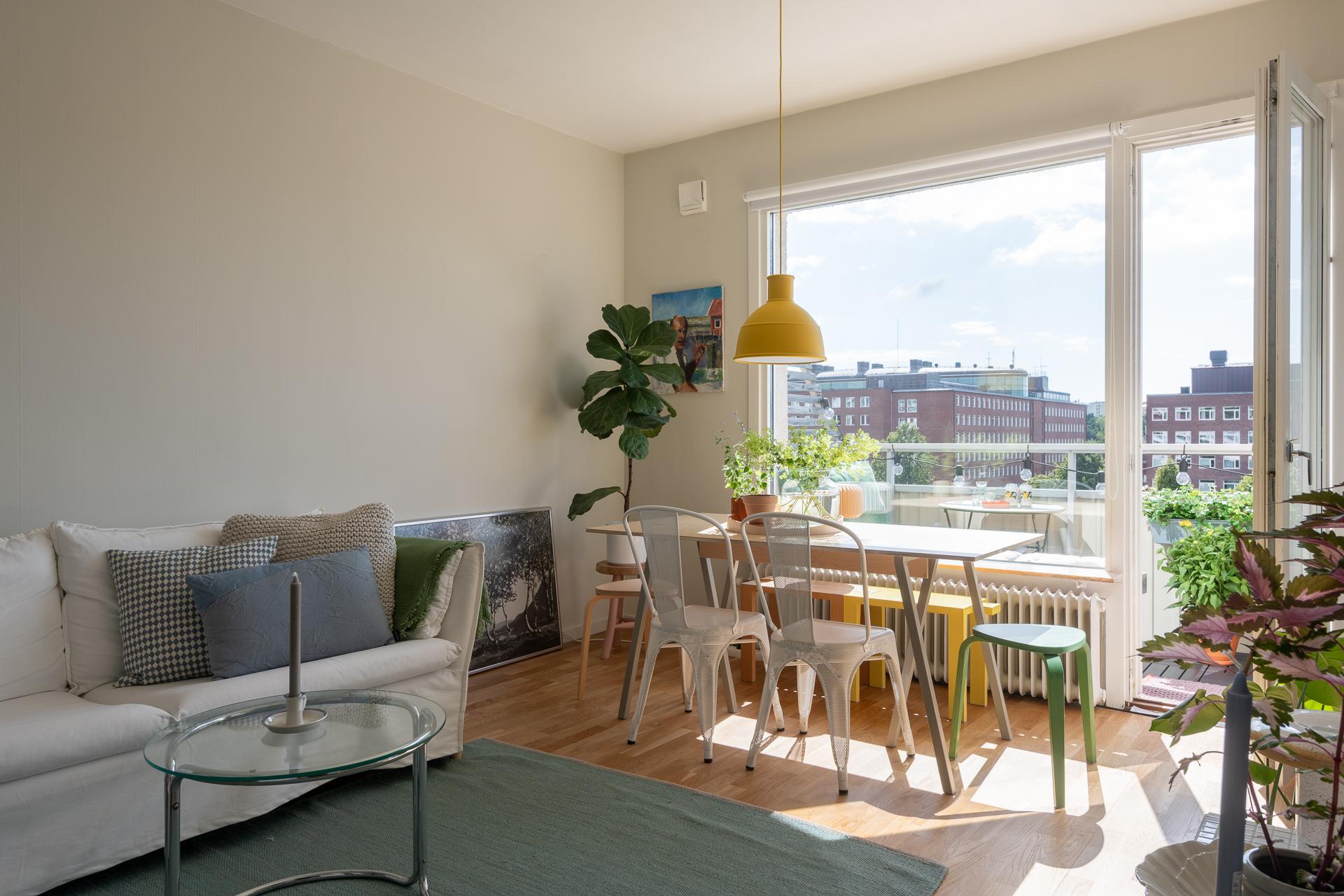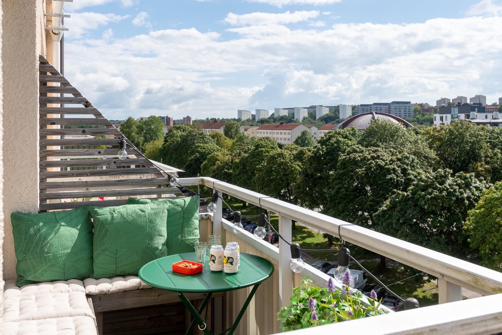 Tack vare stora fönster i sydväst badar den här mysiga 1,5:an i ljus, och sommartid har balkongen sol större delen av dagen och kvällen. Lägenheten ligger hög och fritt, och den milsvida utsikten över bebyggelse, grönska och himmel är hänförande. Planlösningen är optimal, och de 38 kvadratmeterna fördelas på ett inbjudande vardagsrum med plats för umgänge, en stor sovalkov med utrymme för en dubbelsäng, ett lika funktionellt som smakfullt kök, ett helkaklat badrum med kombimaskin och en välkomnande hall med utmärkta förvaringsmöjligheter. Läget är perfekt, och samtidigt som lugnet råder här i lummiga Övre Johanneberg har man Avenyns puls på kort promenadavstånd. På andra sidan gatan breder Chalmersområdet ut sig. Varmt välkomna på visning!
