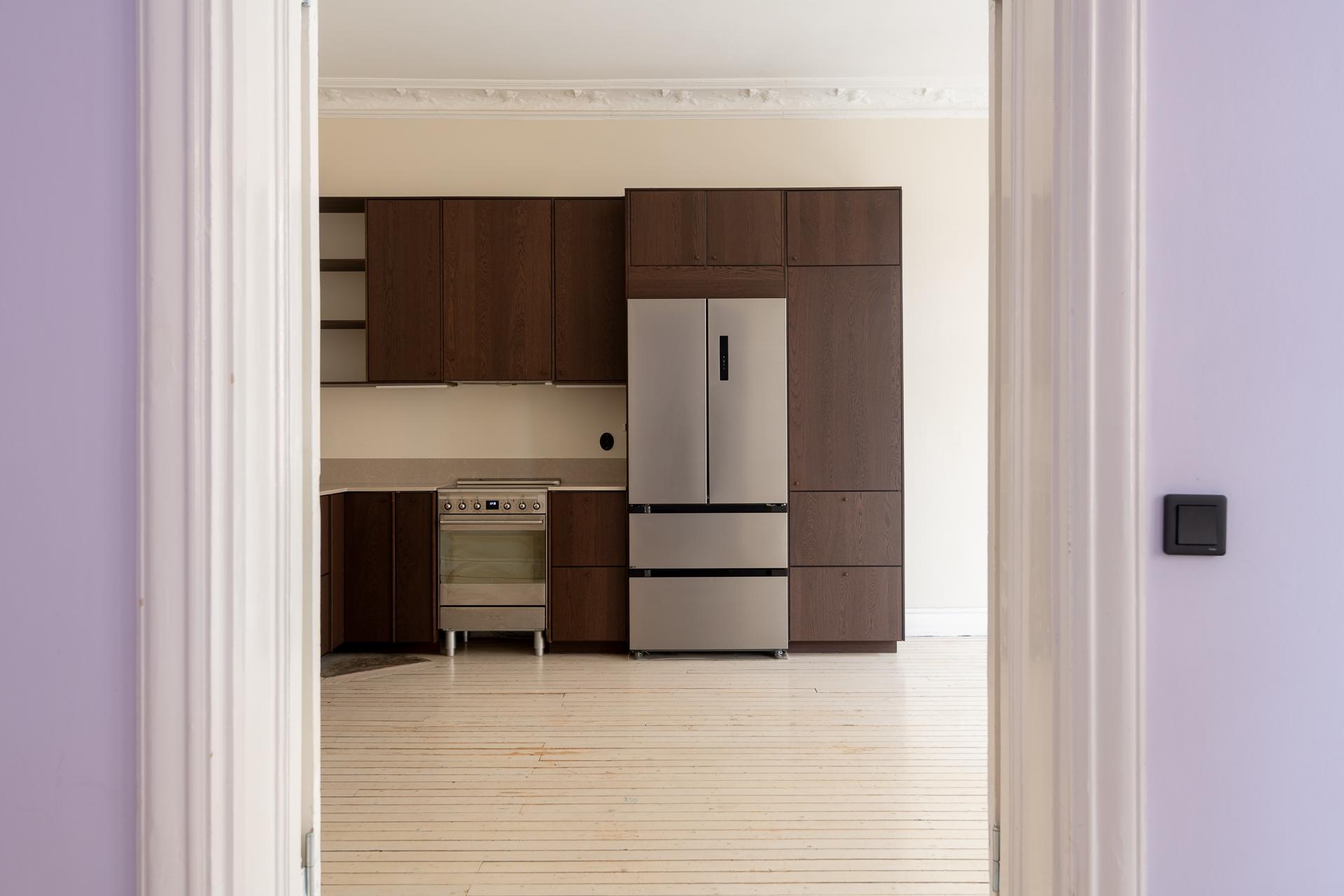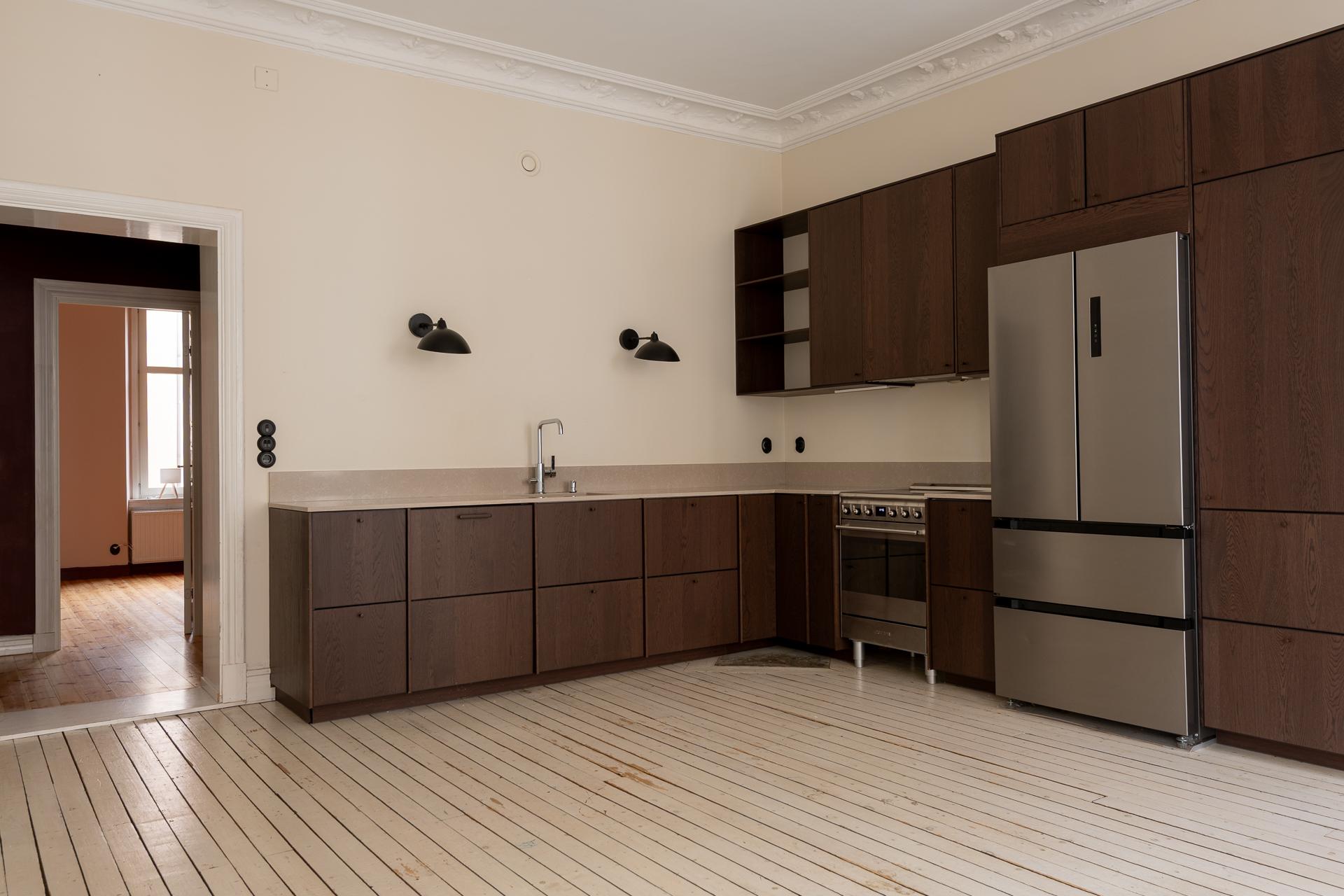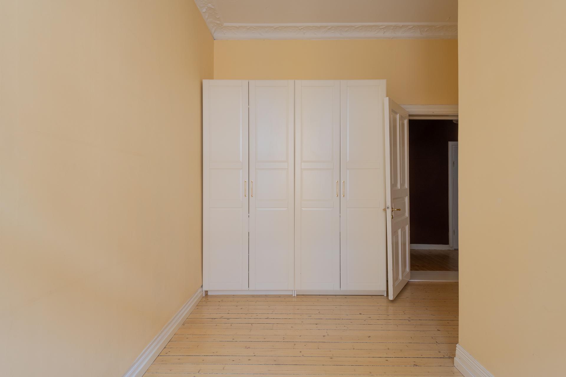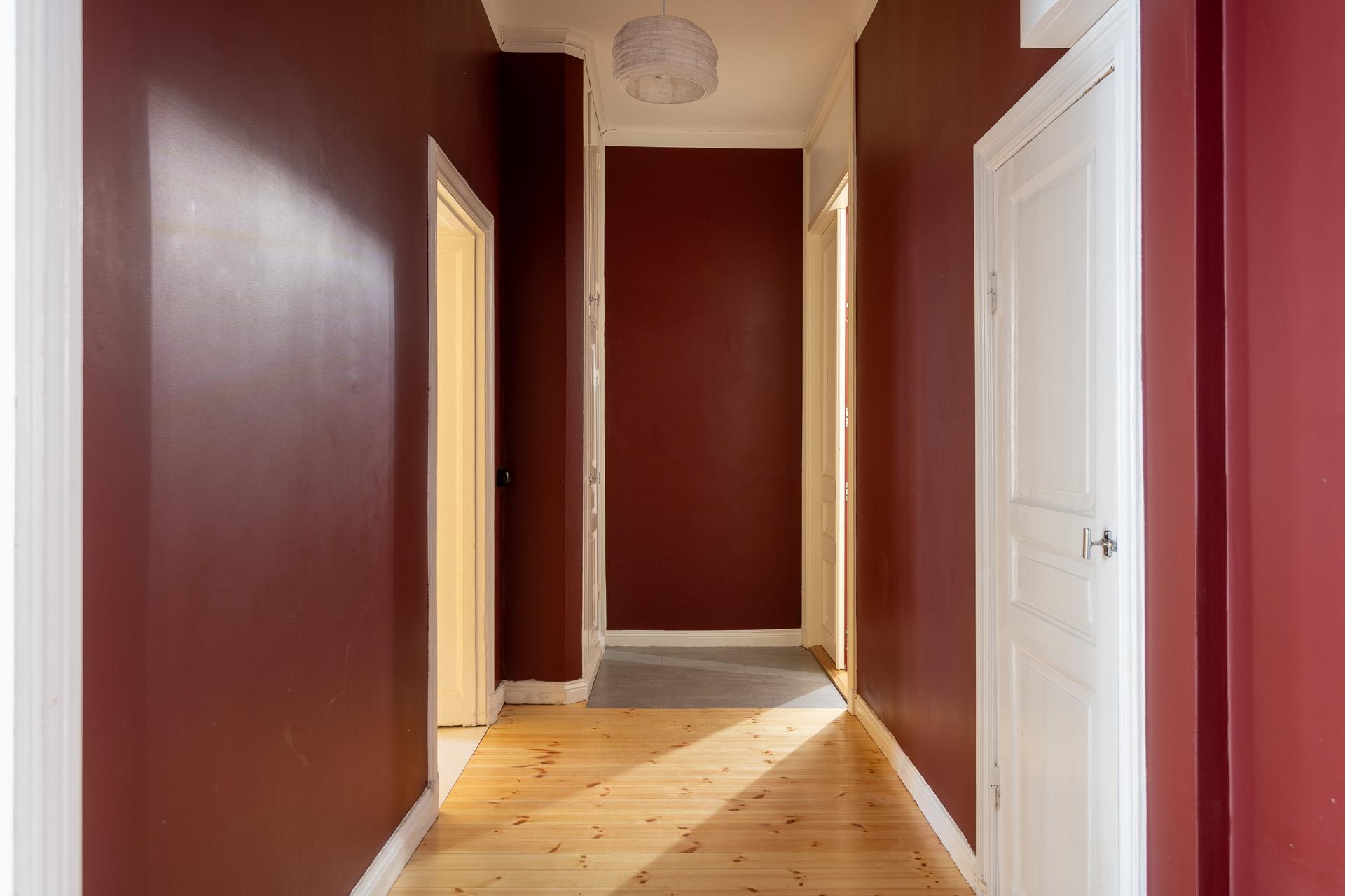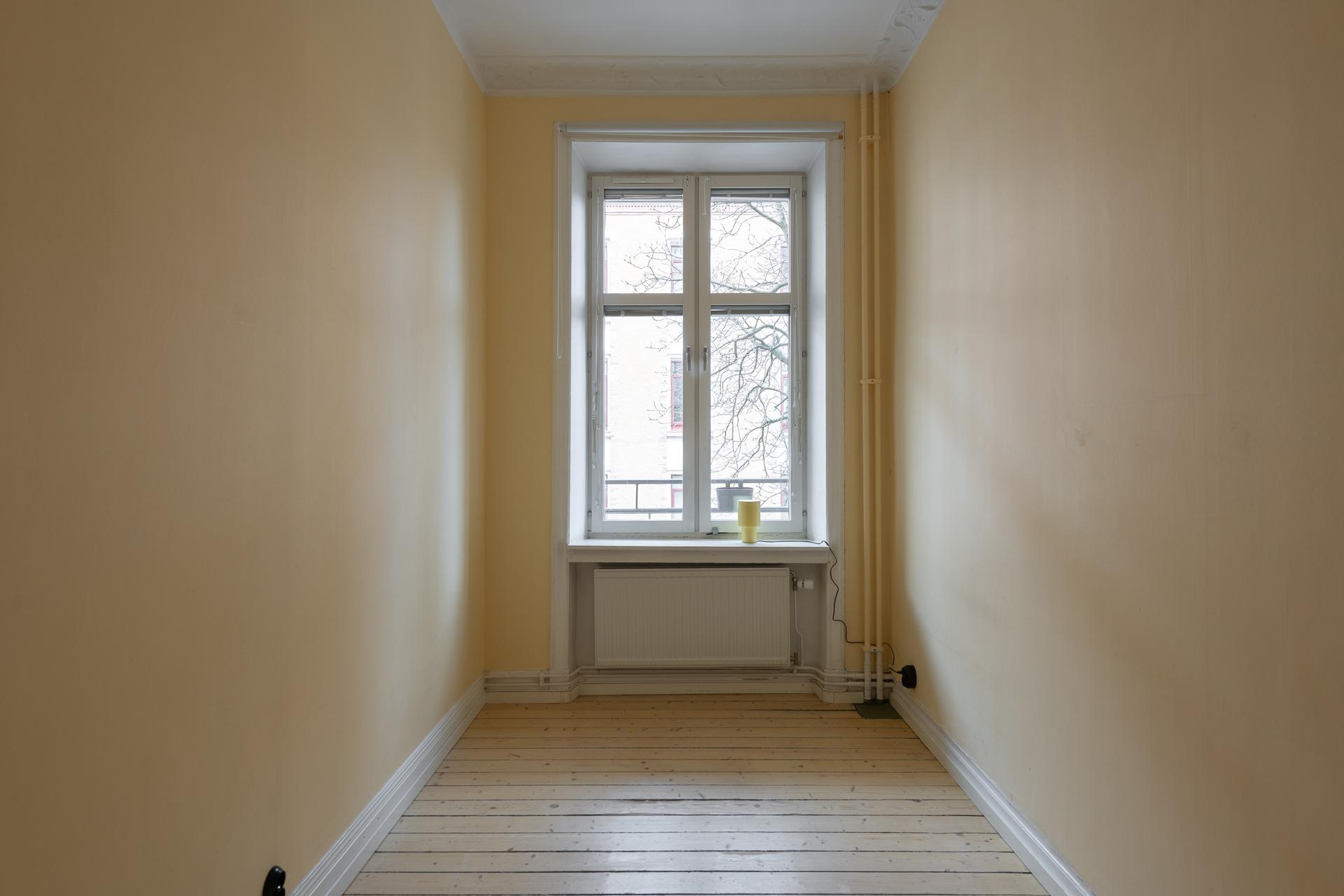 Fint renoverad fyrarummare med öppen planlösning mellan kök och vardagsrum. Stor balkong med utgång från vardagsrummet. Stolta 320 centimeter i takhöjd. Brädgolv, stuckaturer och snickerier vittnar om husets mångåriga historia. Lägenheten är registrerad som 2 rok i SBC;s papper men används som 4 rok.