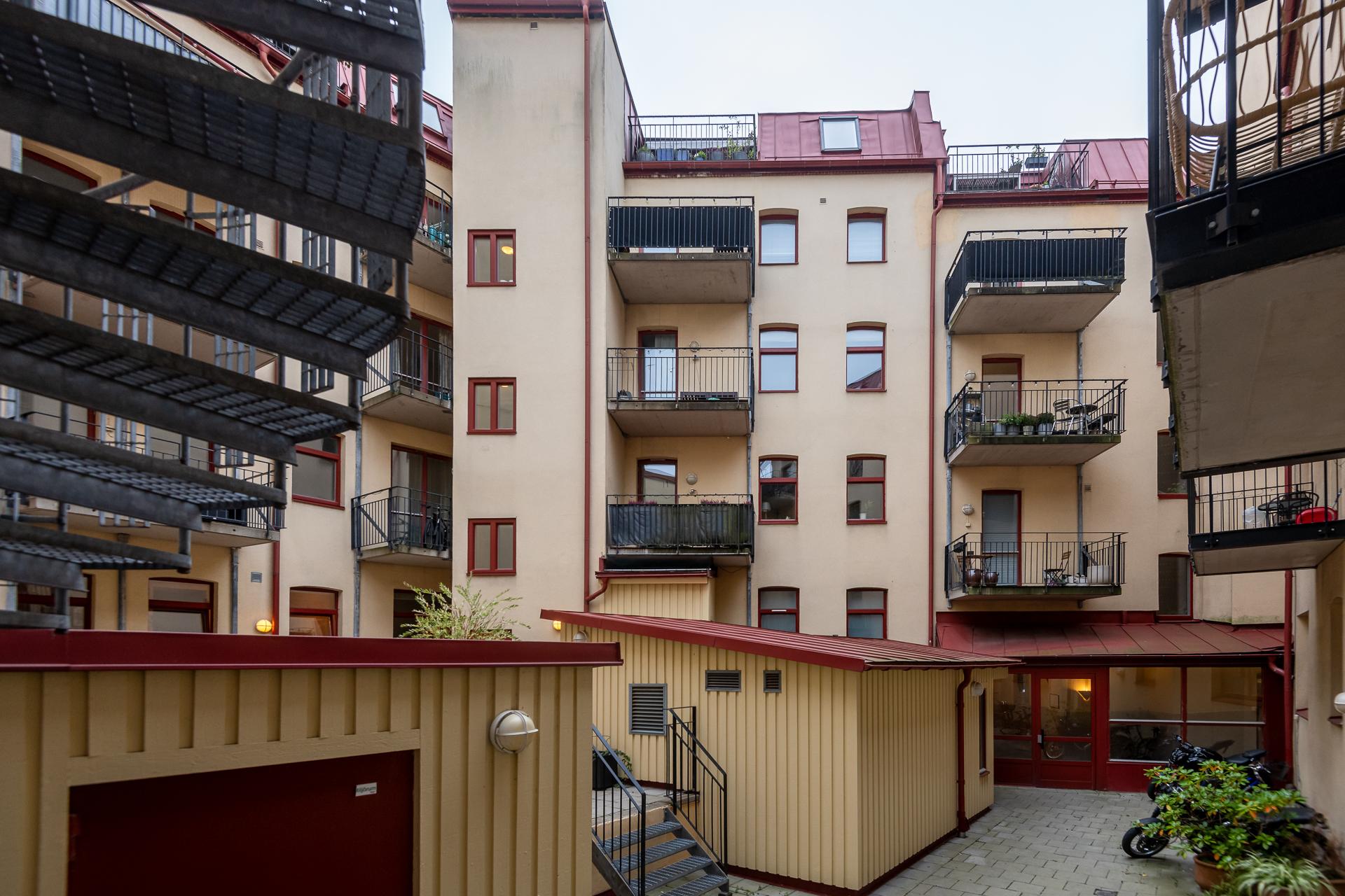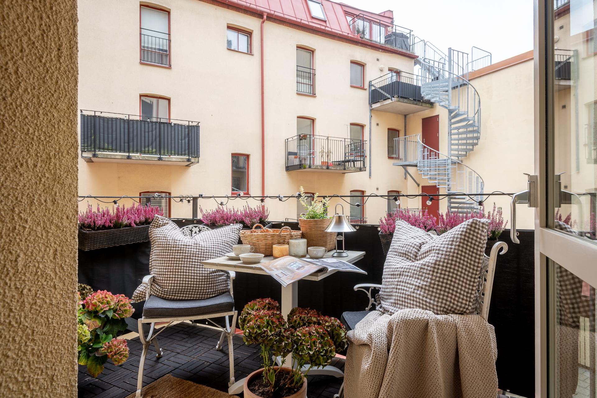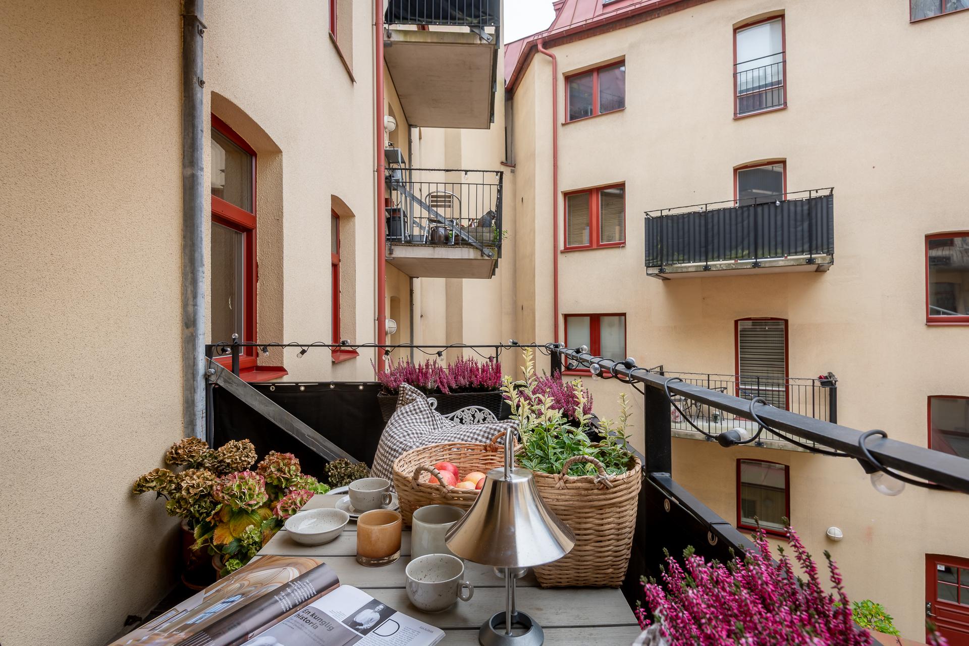 I härligt västerläge bjuds ni på gott om sol under stora delar av dagen. En bra plats att starta dagen med en frukost men lika gott är det att ta ett glas vin i kvällssolen en bra sommardag. Här får ni plats med både bord, stolar och kökets odling gällande kryddor och örter. Oavsett vad blir det en lugn oas- det är svårt att föreställa sig att man befinner sig bara några meter ifrån Kungsgatan och centralaste delarna av Göteborg.