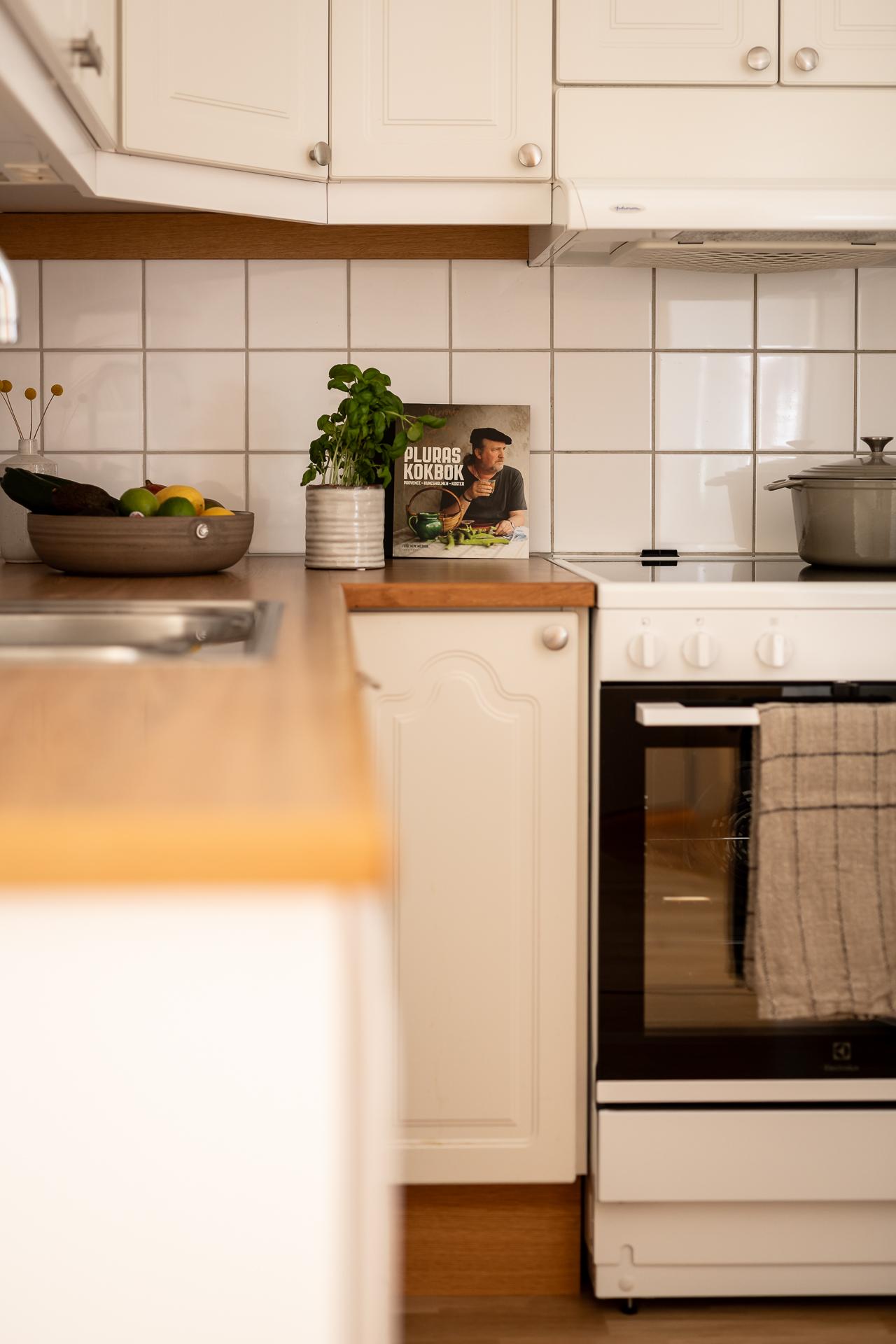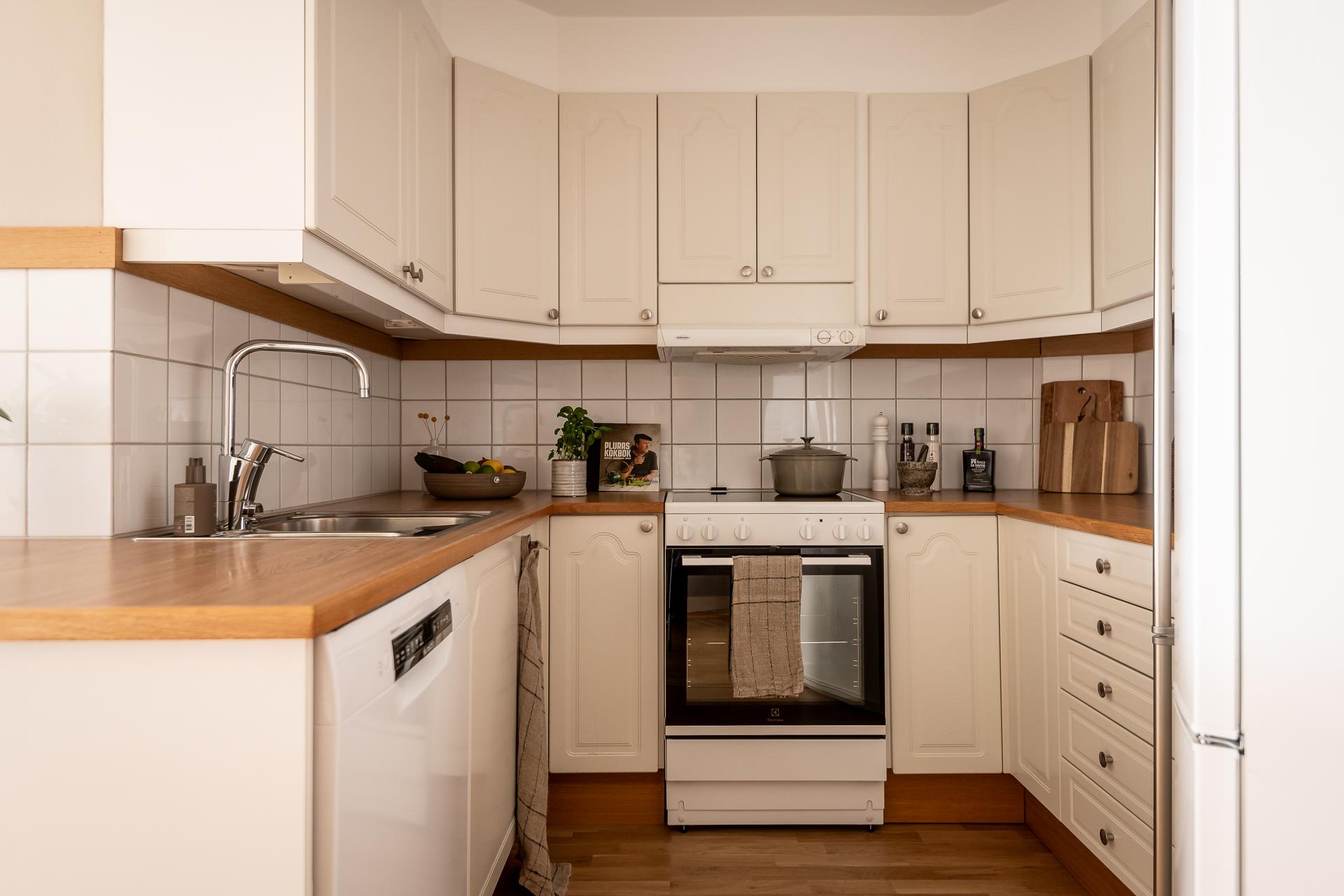 Smart U-format kök som tack vare generösa arbetsytor och gott om överskåp ger all funktion och finess man vill ha för det goa livet. Tack vare den delvis öppna planlösningen mot vardagsrummet känns det väldigt inbjudande och socialt och ni kan från köket enkelt ha kontakt med era gäster i vardagsrummet. Diskmaskinen är ett stort plus när det kommer till vardagsbestyren.