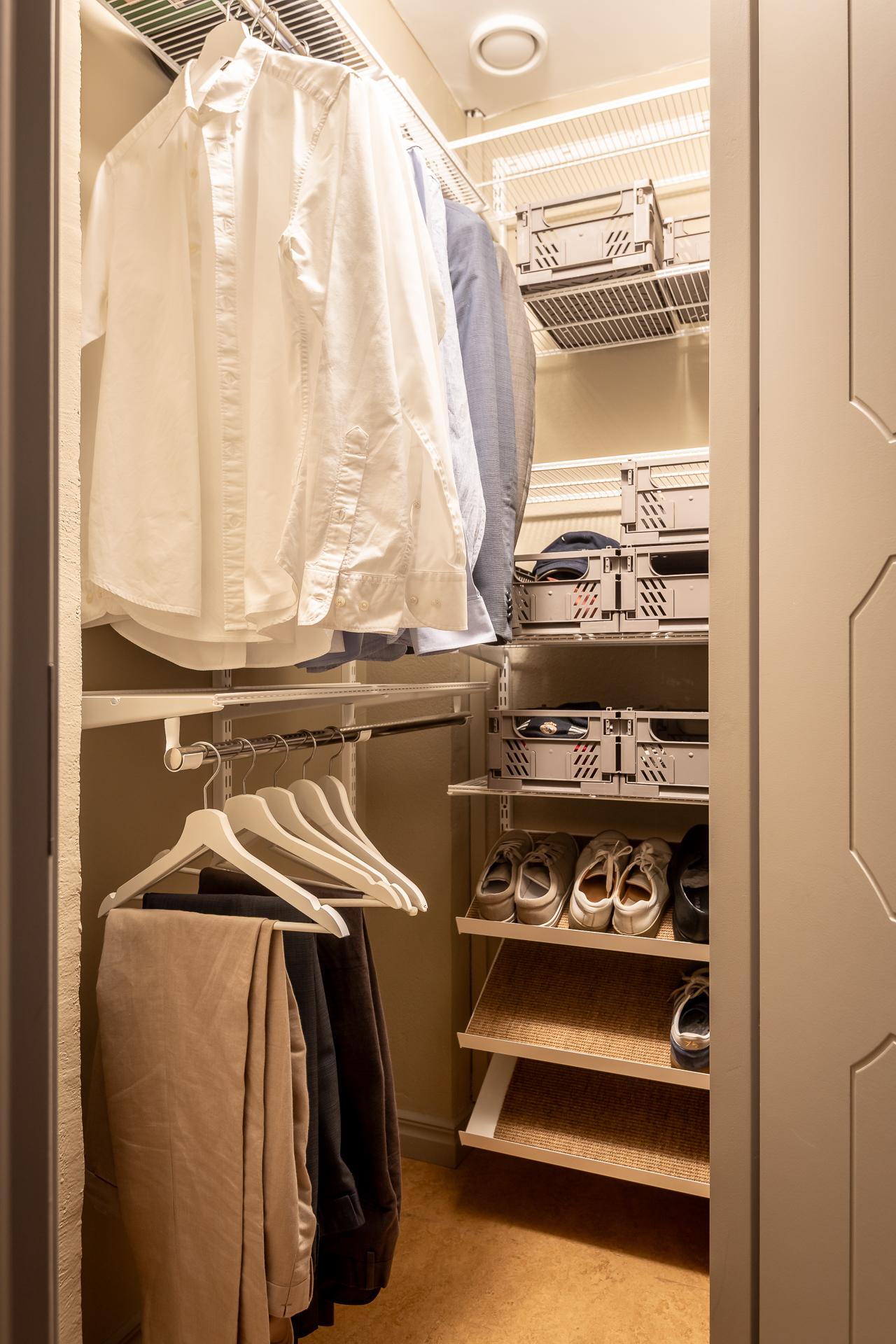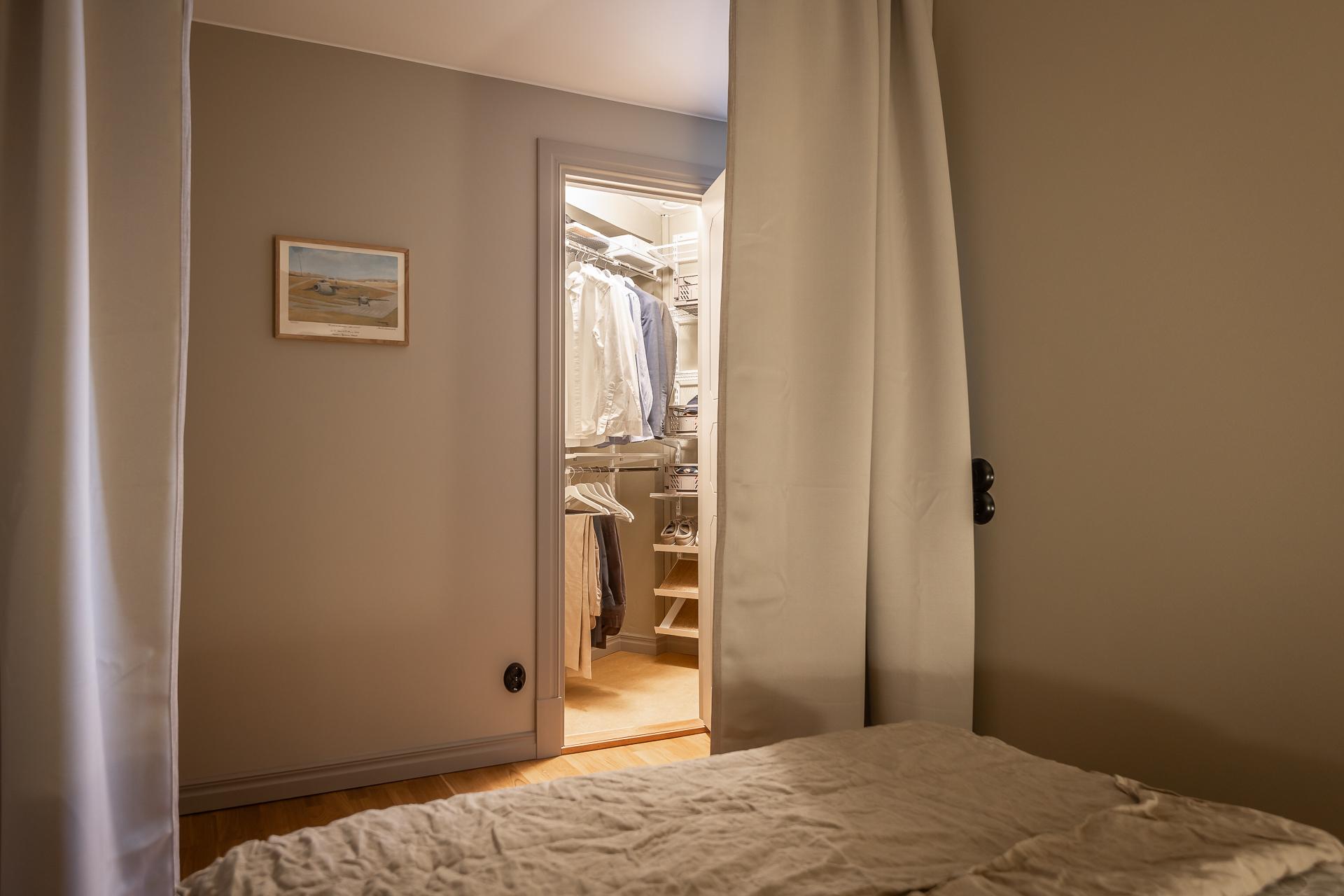 Intill sovalkoven finns en tacksam och rymlig klädkammare som ger plats åt kläder för två.