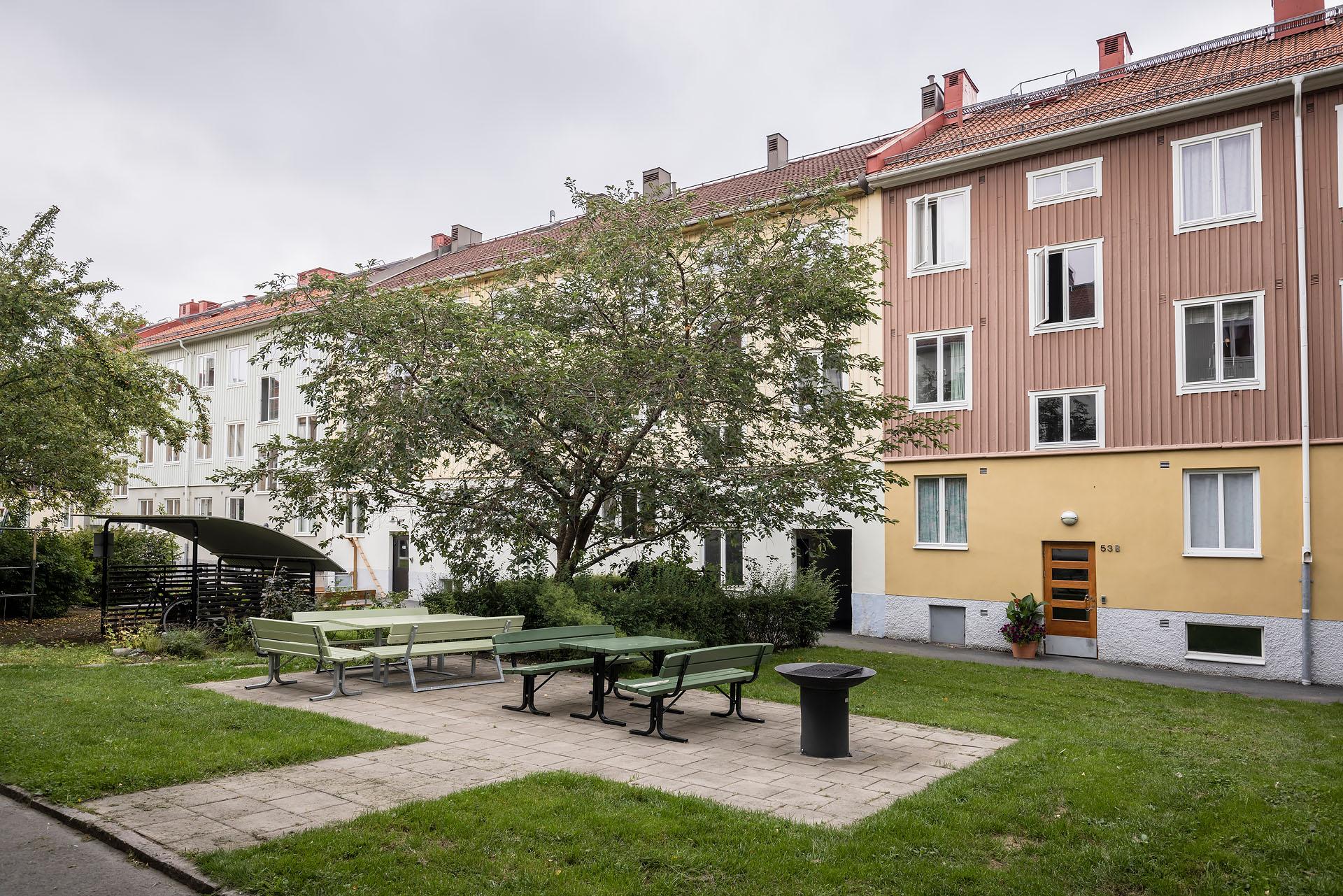 - Balkong/Uteplats: Ja. Gemensam trädgård med sittplats och grönytor.