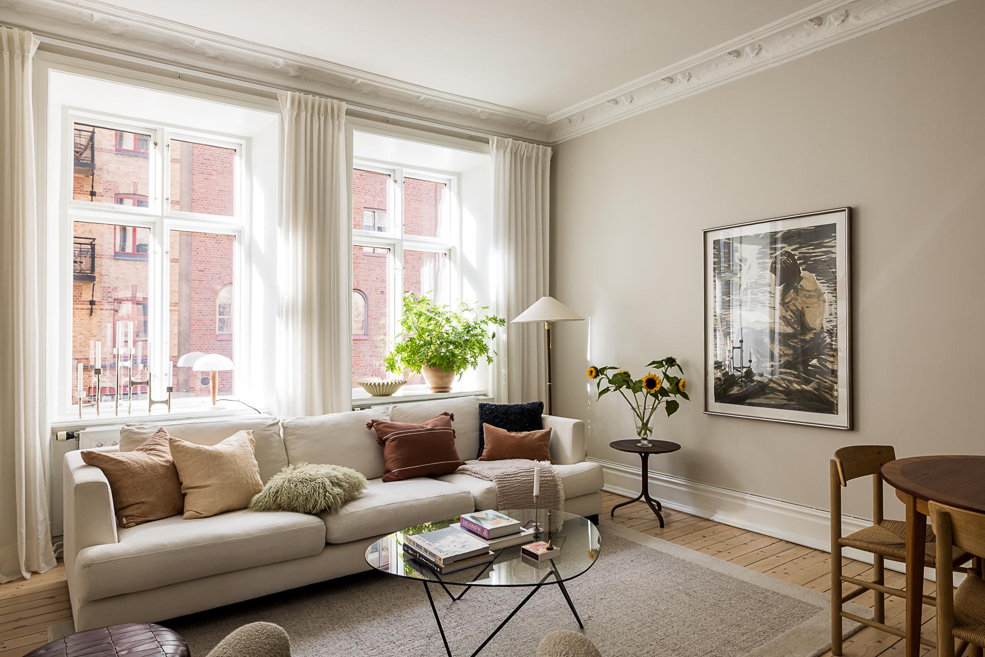 Totalrenoverad och oerhört smakfull sekelskiftestvåa om hela 72 kvm med balkong och hiss. Vackra brädgolv, pardörrar, stuckaturer och takrosetter. Höga fönster åt både öster och väster för generöst ljusinsläpp. Platsbyggda garderober och nytt kök med rejäl matplats. Hela lägenheten renoverades så sent som 2024. Mycket välskött förening där bredband ingår i avgiften.