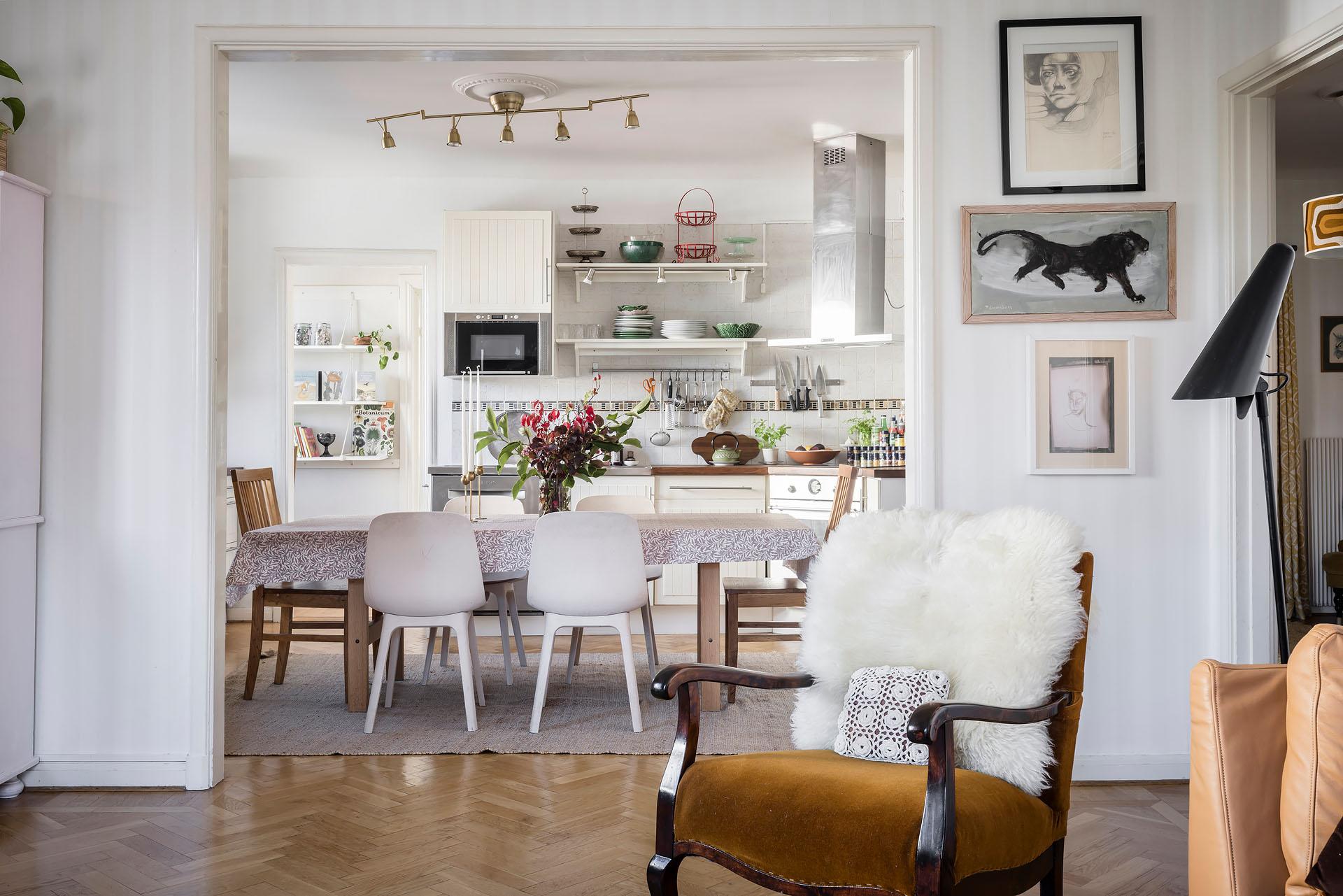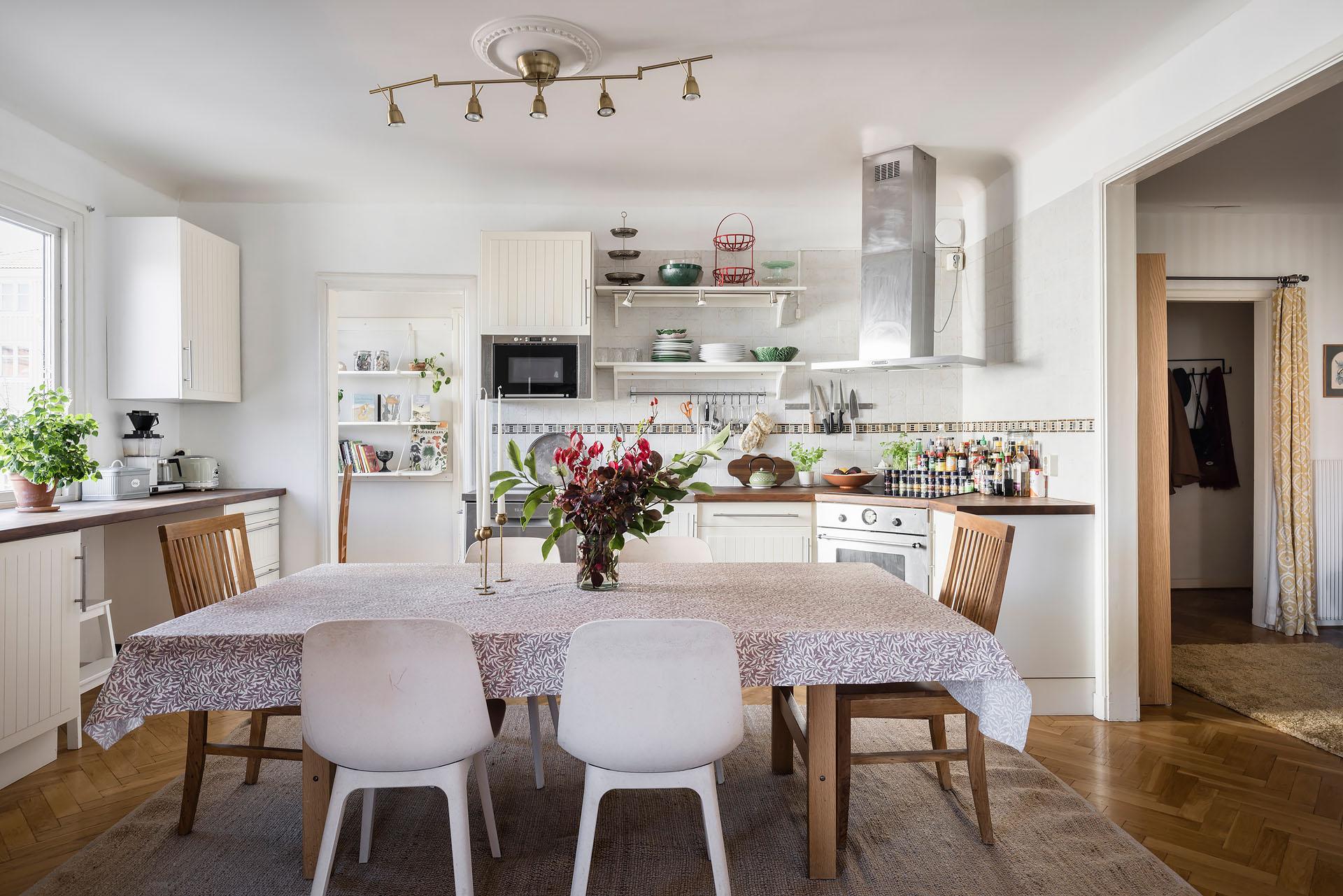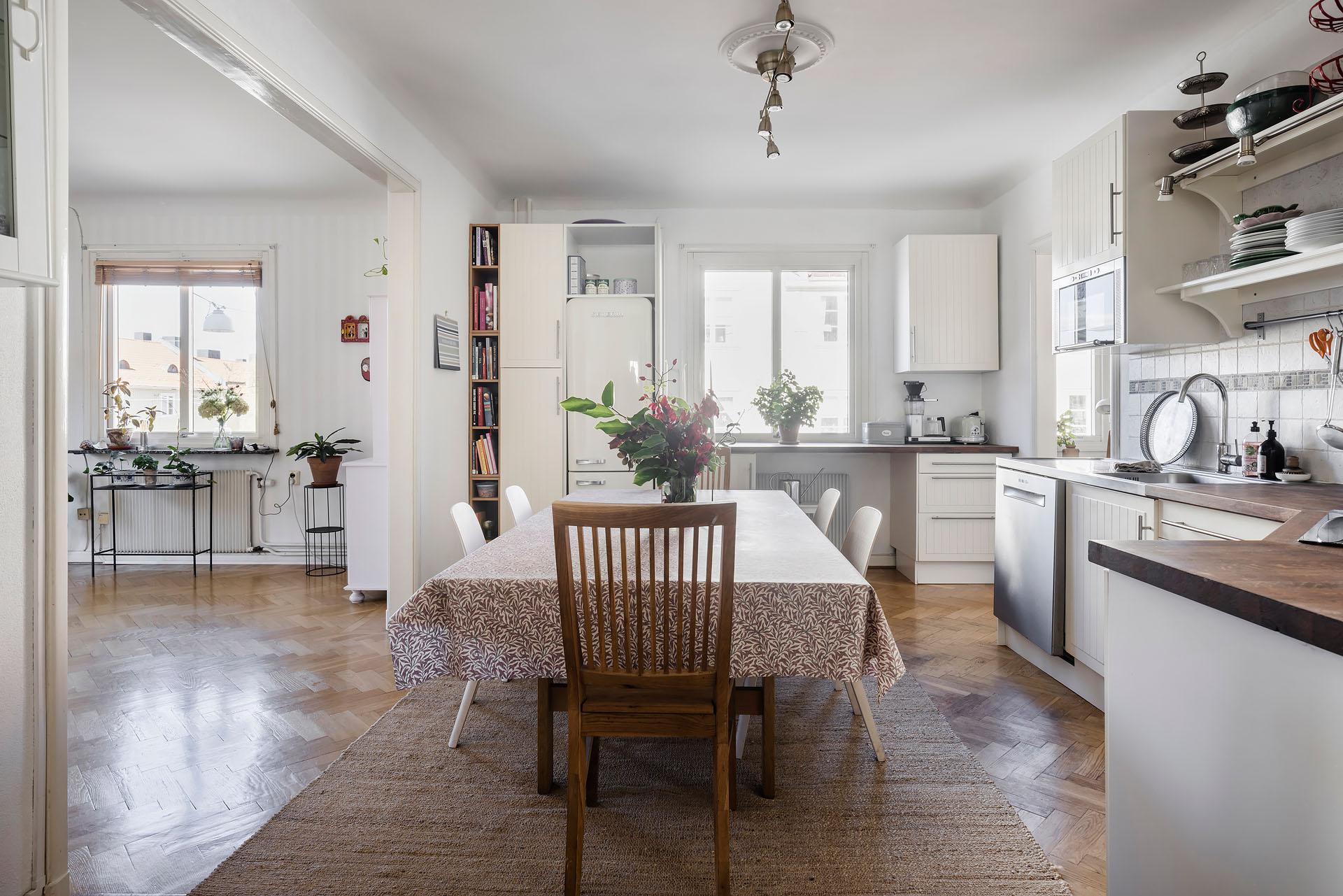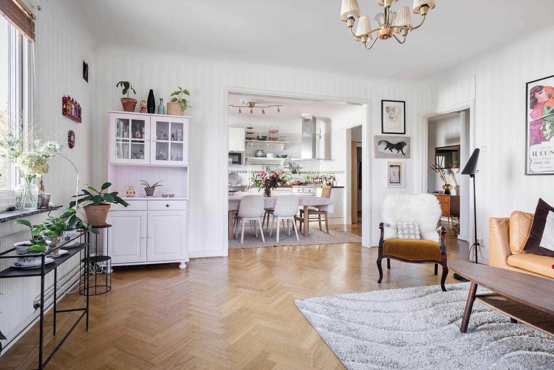 Det här är ett hem där livet verkligen får ta plats såväl till vardags som till fest. Kombinationen av öppen planlösning och flera rum är oslagbar. Köket, med bra svängrum för hemmakockarna, har plats för middagar med många gäster och i vardagsrummet, ett underbart hörnrum med fönster i två väderstreck, finns det utrymme för en stor soffgrupp. Lägenheten har ett härligt ljusinsläpp, och efter att mörkret väl lagt sig utanför de många fönstren är det mysigt att elda i den inre hallens öppna spis som även är väl synlig från den öppna matplatsen. Känslan från 1920-talet finns kvar, och de bevarade originalsnickerierna som kompletterats med nya i gammaldags stil ger en vacker inramning. Vacker originalparkett öper tröskelfritt mellan flera av rummen. Föreningen är välskött, och den goda ekonomin återseglas inte minst i den låga månadsavgiften. Varmt välkomna på visning.