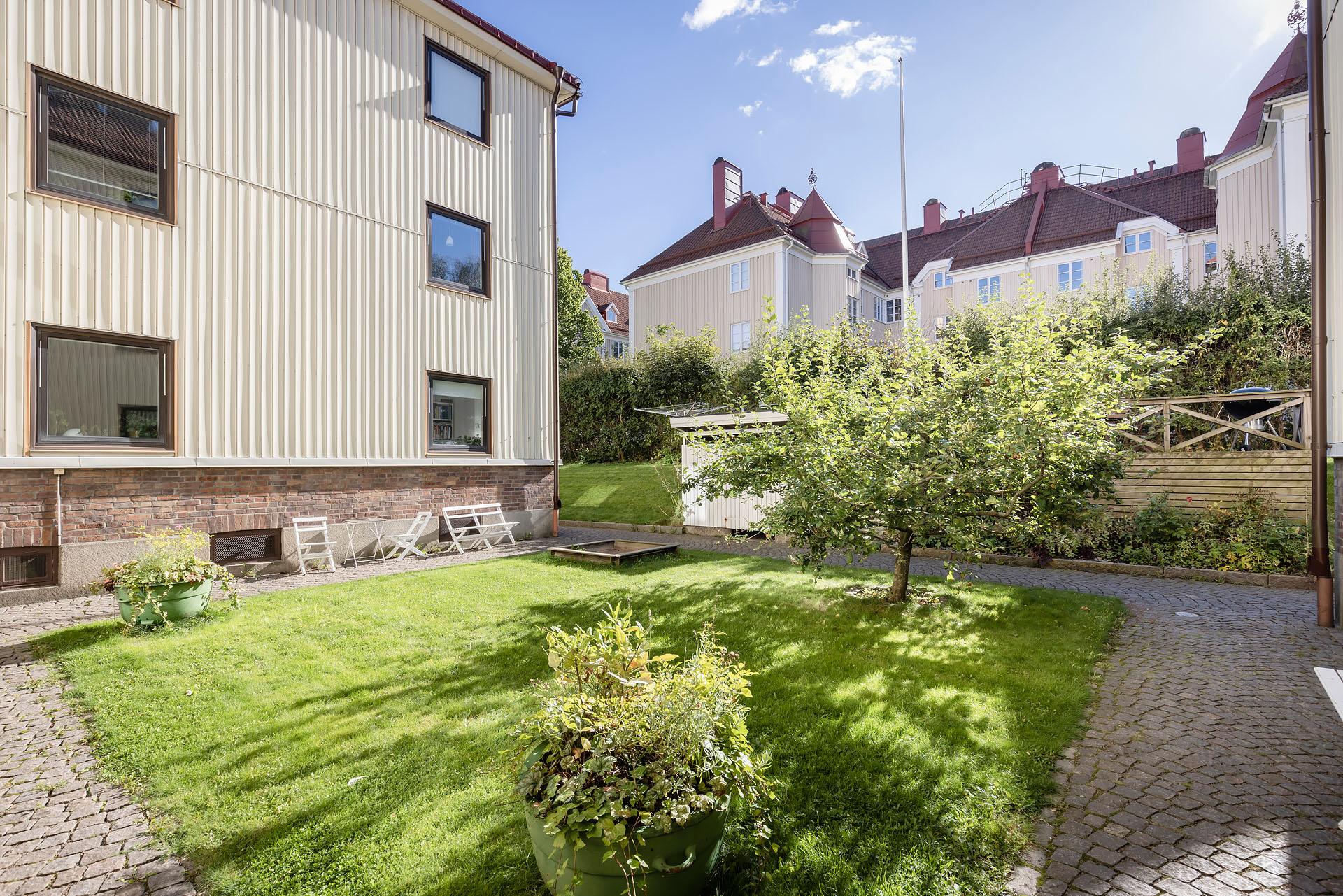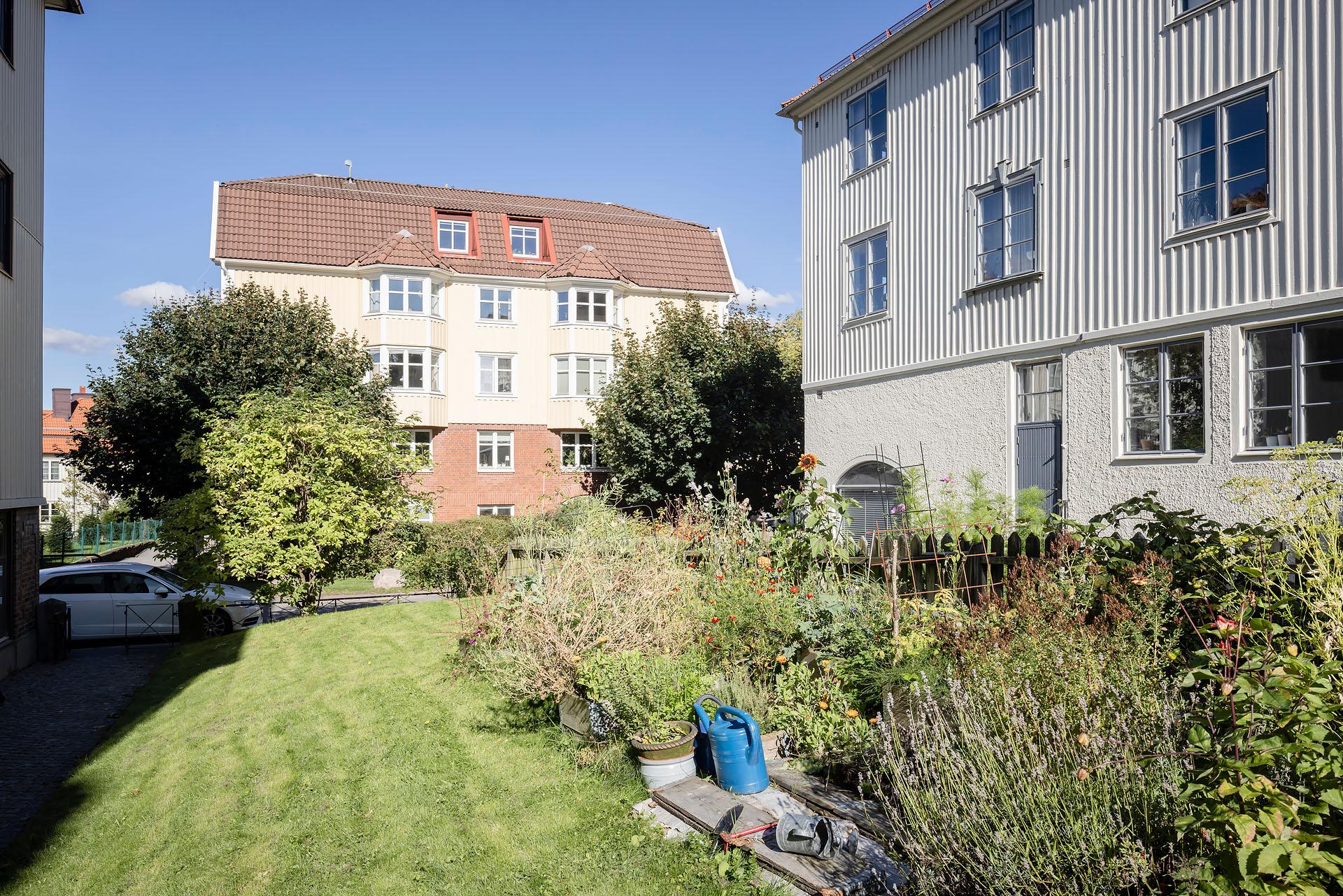 Ett mycket trivsamt boende erbjuds och terrassen ute på den mysiga innergården bjuder in till middagar eller ett glas vin i kvällssolens sken. Intill växer ett äppelträd som tas kärleksfullt om hand, och den med gröna fingrar har möjlighet att skaffa sig en egen odlingslott i föreningens gemensamma trädgårdsland. Det är som nämnts en välskött och ekonomiskt välmående förening, och familjär stämning råder grannar emellan.