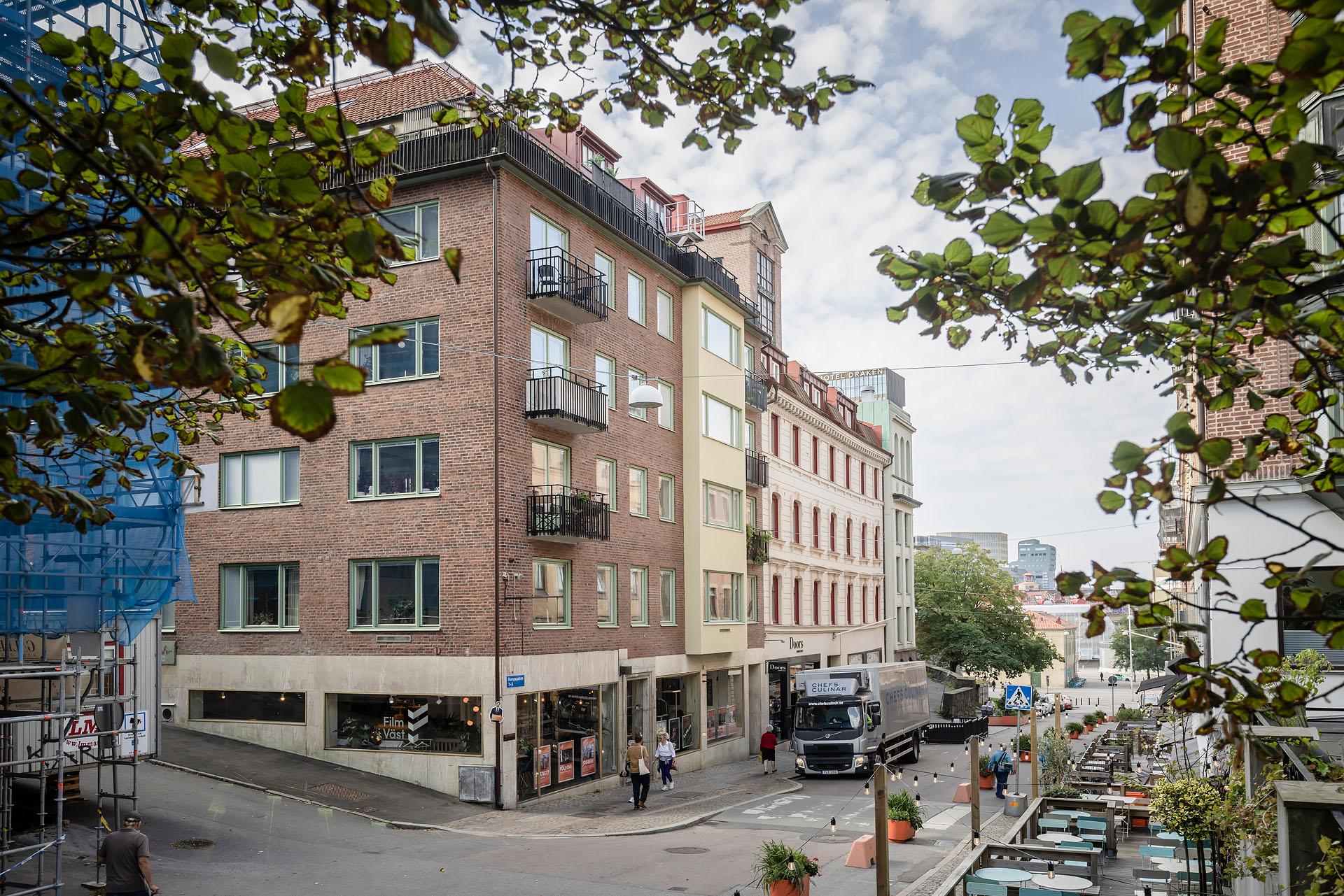 På flotta adressen Kungsgatan 7B står ett hus från året då funkisarkitekturen stod i zenit. Det är något speciellt med atmosfären kring denna delen av Kungsgatan. Ett vibrerande kvarter där mixen av restauranger, kaffebarer, boule och folkmyller ger en kontinental känsla. Den internationella prägeln är tydlig med Språkcaféet som en samlingsplats och Esperantoplatsen är ett kreativt nav som verkligen har ett eget liv och här dyker ständigt nya restauranger och caféer upp. Som boende på Kungsgatan 7B har ni extremt kort gångavstånd till allt ni behöver i livet och även det som bara sätter lite guldkant på tillvaron. Eller vad sägs om tvåhundra meter till soldränkta Zamenhof eller Barabicu vägg i vägg, två personliga favoriter där både mat och dryck lovar många fina kvällar. Åt andra hållet ligger Da Matteo som levererar stans bästa kaffe och på trendiga Magasinsgatan hittar ni bland annat omskrivna och fantastiska Tavolo som intagit de gamla Artilleristallarna. Här finns också två riktigt bra mataffärer, gym, en skybar och icke att förglömma livet vid kajen. Det är här vid hamnen som Södra Älvstranden växer fram och längs med Rosenlundskanalen trängs alla soldyrkare på restaurangernas uteserveringar för en bit mat kombinerat med sol. Som ni hör finns här något för alla och för er som skall vidare kommer ni till Linné på tre minuter och Haga och Vasa finns på endast några minuters promenadavstånd. Kollektivtrafiken är lysande med flertalet knutpunkter bara minuter bort. Båten nere vid Stenpiren tar er både ut till skärgården för en dopp en varm sommardag men också på några få minuter ut till Lindholmen. Till Centralstationen är det bara 15 minuters promenad.