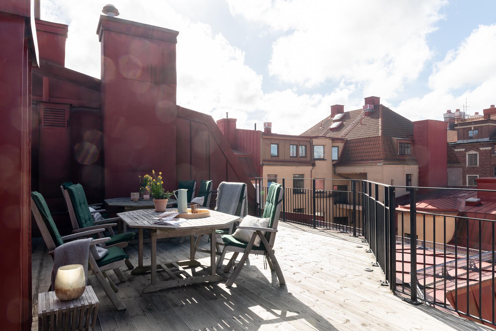 - Balkong/Uteplats: Ja. Utöver balkong också gemensam takterrass