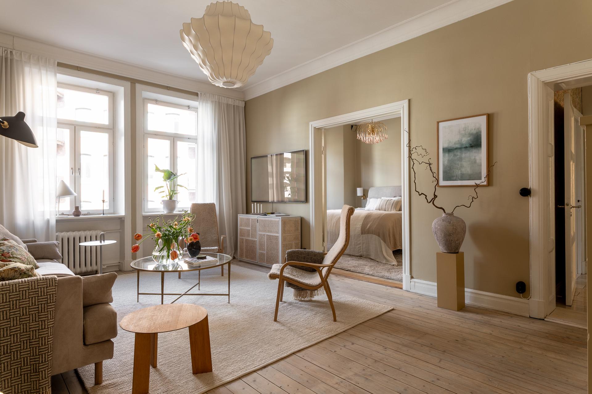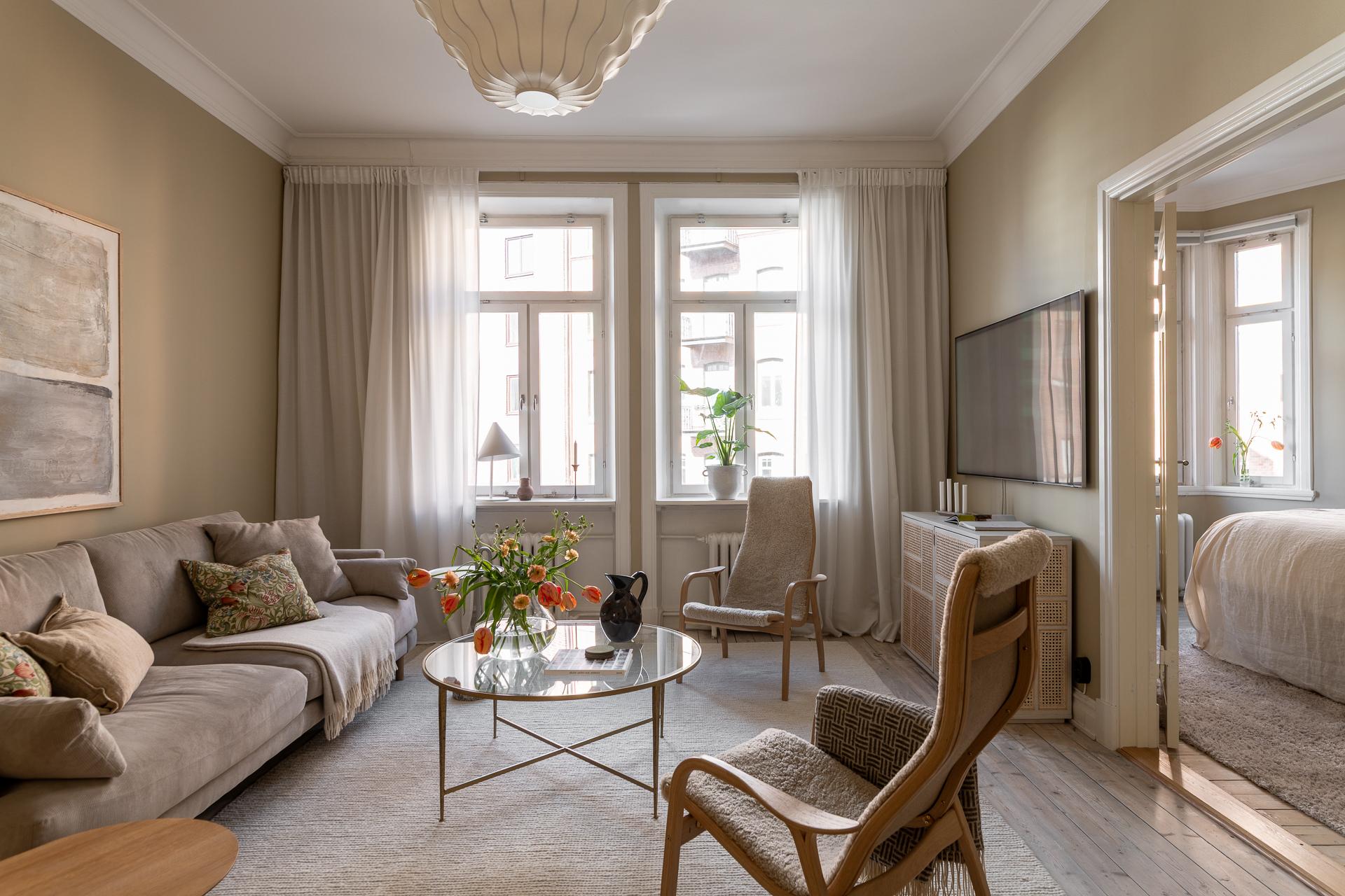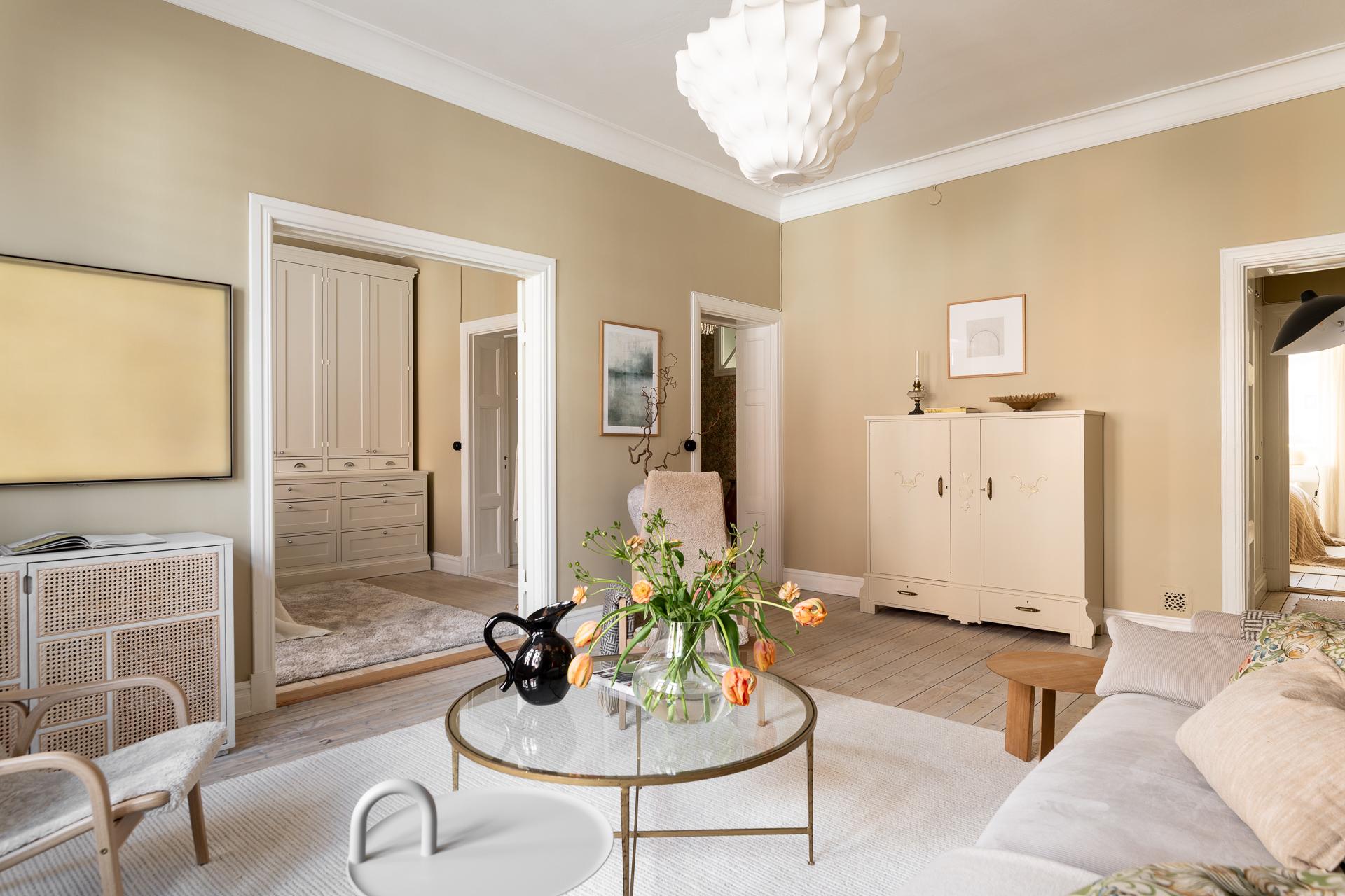 I vacker tegelbyggnad anno 1909 finner ni denna drömlika trerummare på bästa adress. Nationalromantiken är ständigt närvarande med bevarade originaldetaljer såsom stuckaturer, takrosetter, gjutjärnsradiatorer, spegeldörrar och fina listverk samt en imponerande takhöjd om 315 centimeter. Perfekt planlösning med stora rum i fil och ett burspråk mot Kungsgatan. Skicket är oantastligt med det platsbyggda köket som kronan på verket. Balkong i soligt söderläge + gemensam takterrass med slående utsikt. Här bor ni i en av Kungshöjds bästa föreningar med en blygsam avgift om endast 3529 kr. Kan livet i stan bli bättre än såhär? Förmodligen inte - välkomna att känna efter själva på visning!
