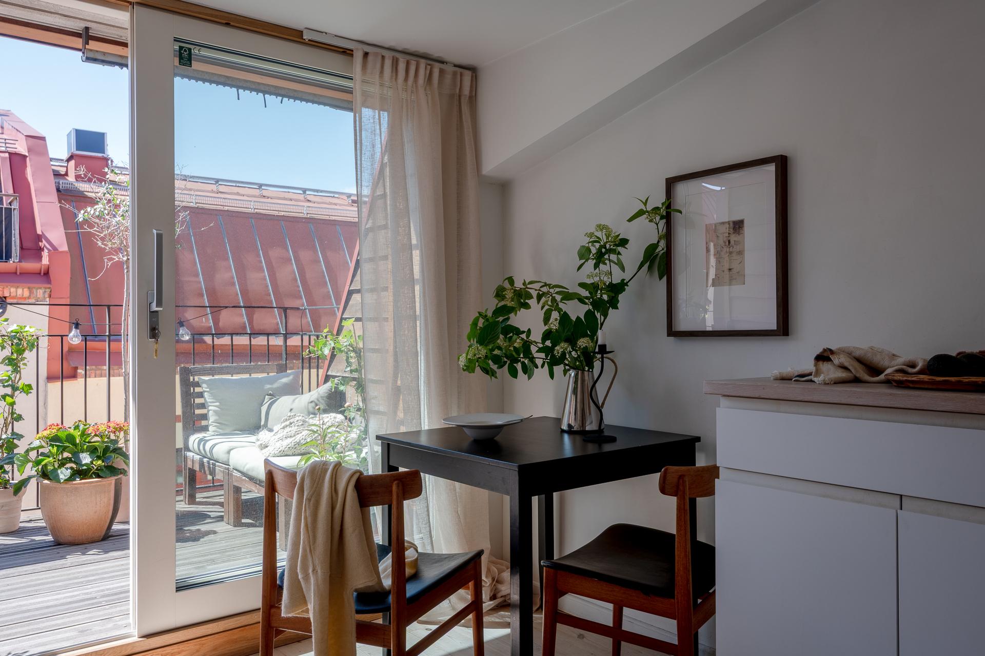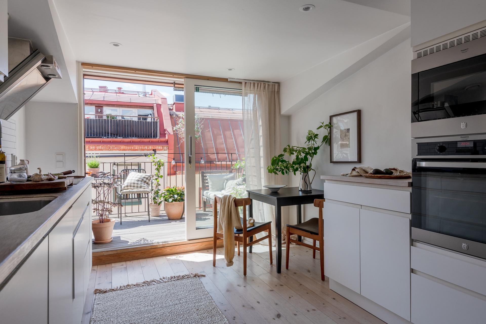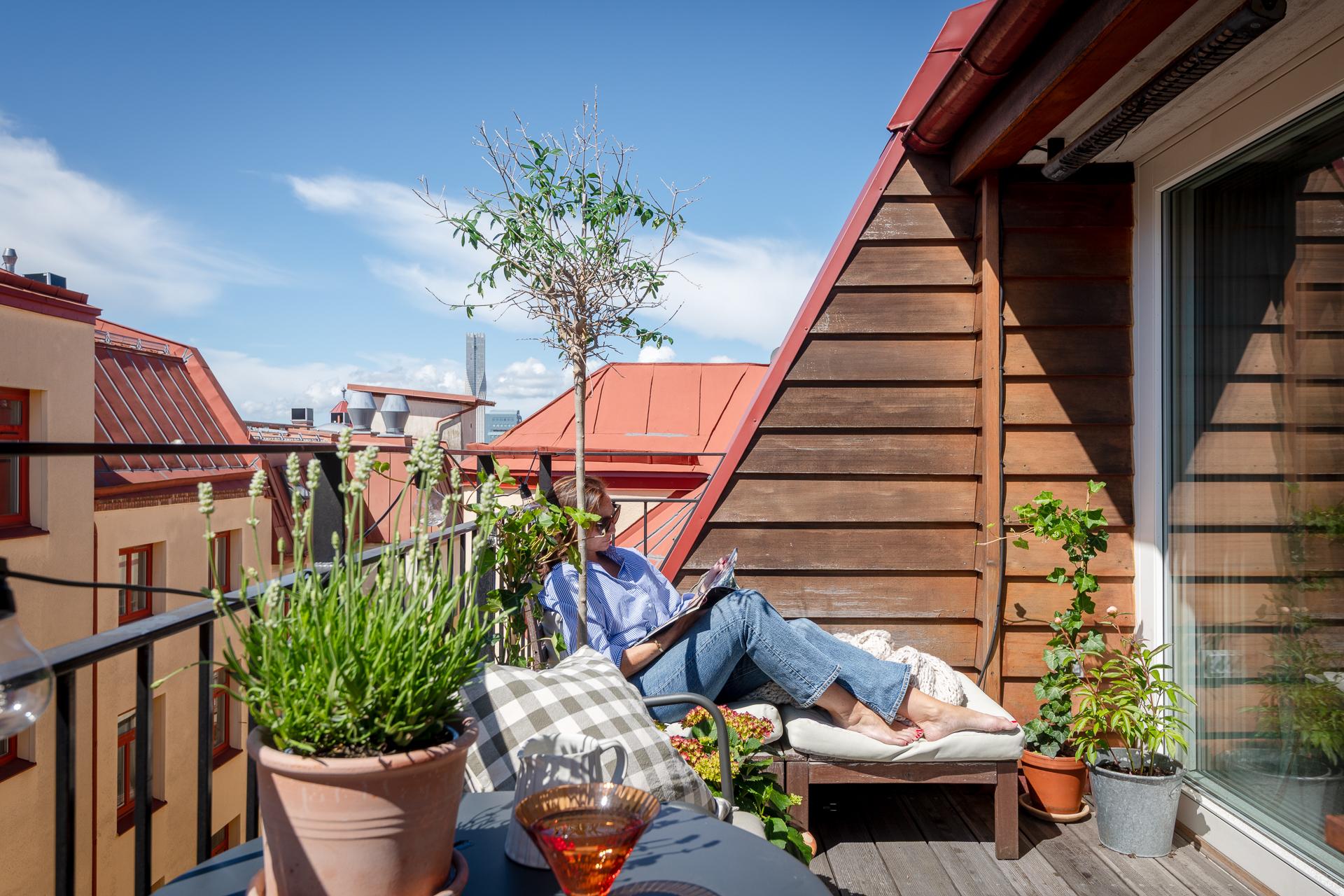 På eftertraktad adress erbjuds denna unika vindsvåning med alla rätt. Låt dig hänföras av slående takhöjd, effektfulla kontraster, klassiska vindsattribut, underbar utsikt, en fungerande kamin, takfönster och en rymlig terrass i rakt västerläge. Oerhört stabil förening och välskött fastighet med bästa läge på Linnégatan. Bredband inkluderat i den låga avgiften. Rymlig hiss som går hela vägen upp till bostadsplanet.
