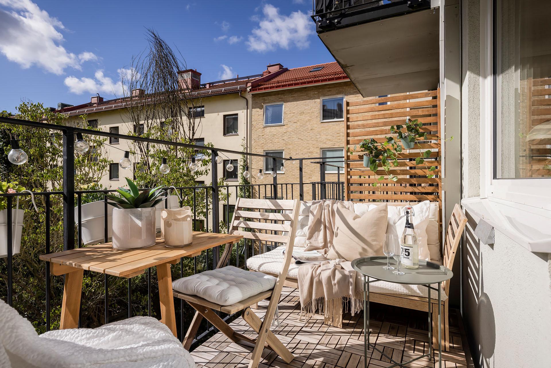 - Balkong/Uteplats: Ja. Gemensam uteplats med utemmöbler och grill på gården.