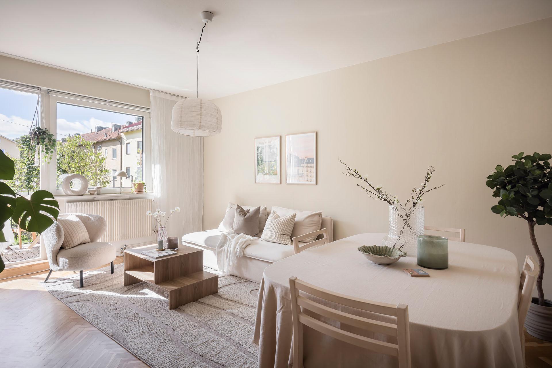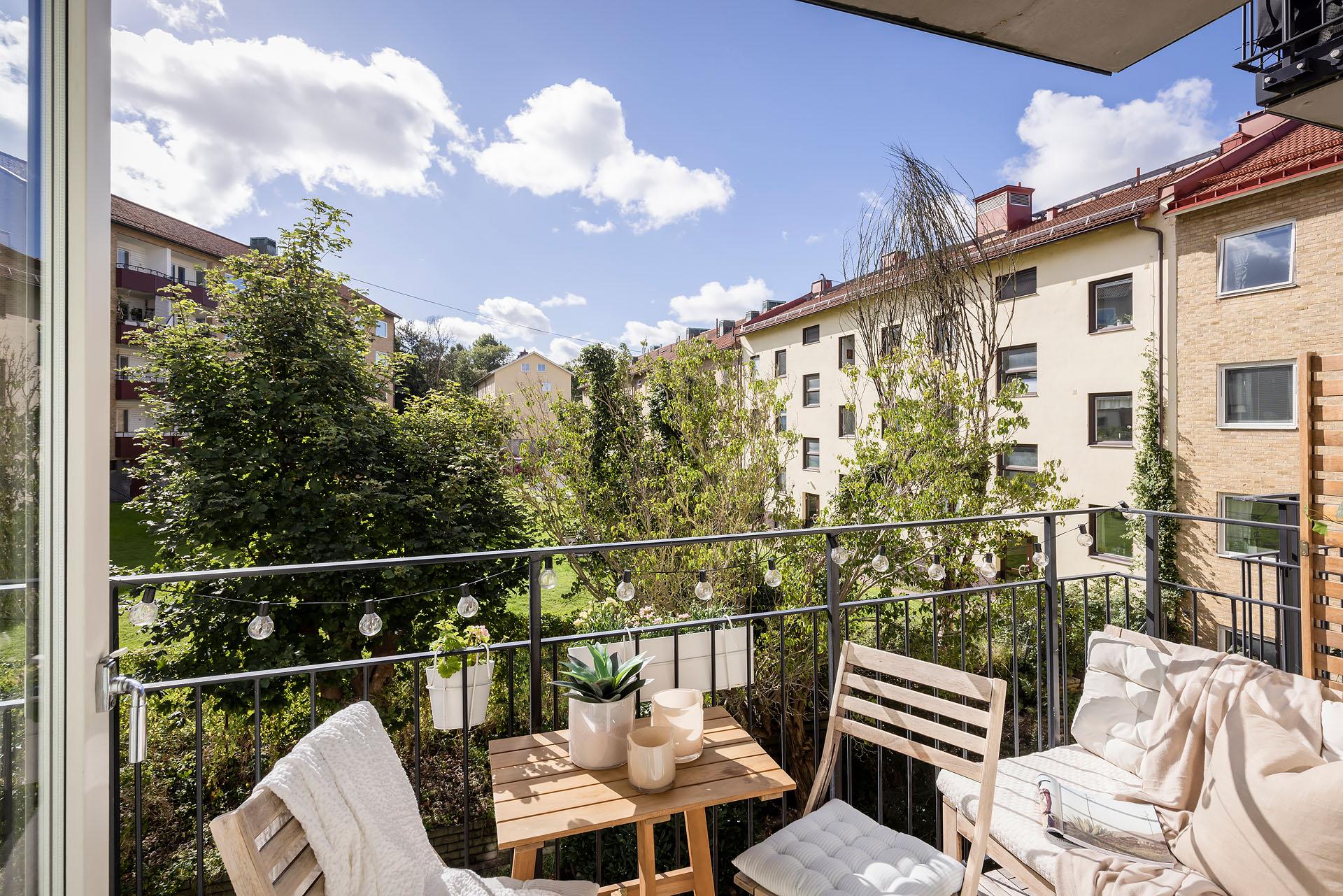 Välkommen till en ljus och välplanerad tvåa med stor balkong i soldränkt söderläge – en perfekt plats för odling, avkoppling och sommarens middagar. Lägenheten bjuder på ett charmigt kök med målade luckor och moderna vitvaror, ett rymligt vardagsrum med vacker fiskbensparkett och ett lugnt sovrum med gott om förvaring. Badrummet är stilrent renoverat med golvvärme, tvättpelare och smakfulla detaljer. Här bor du i en trivsam förening med gemensam uteplats, cykelrum, tvättstuga och två förråd.