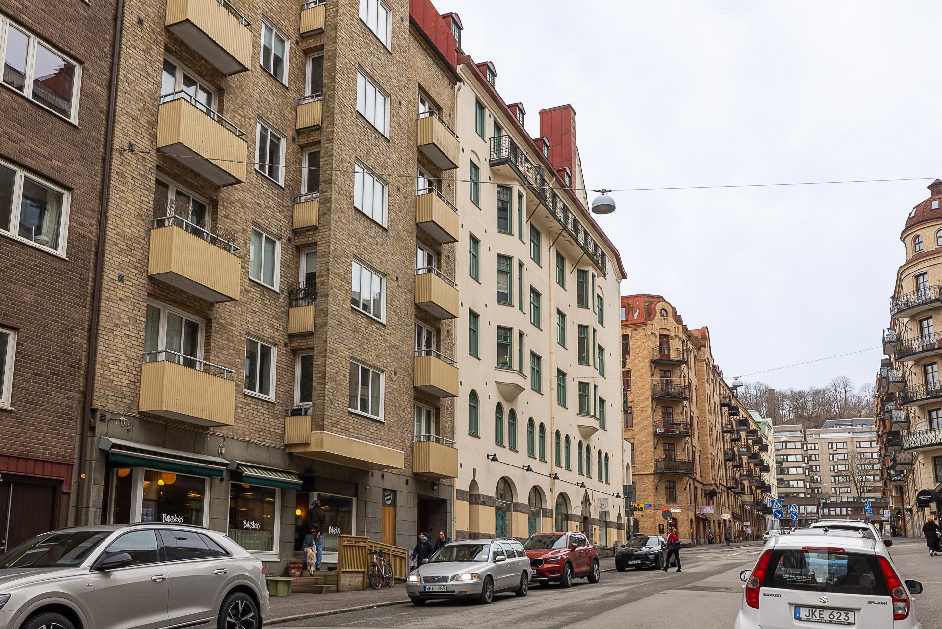 Högt upp med två balkonger i det stilfulla funkishuset med ett attraktivt läge mitt på Nordenskiöldsgatan återfinns denna fantastiska 2,5:a. Många vackra och tidstypiska detaljer såsom högt i tak, djupa fönsternischer, släta listverk, nyslipad ekparkett och fungerande öppen spis finns bevarat. Renoverat kök och badrum. Stora fönster och genomgående planlösning ger ett fint ljusinsläpp. En balkong i rakt söderläge och sol hela dagen mot gården och en balkong mot gatan där du får den tidiga morgonsolen och den sista kvällssolen. Mycket välskött fastighet med hiss och engagerad bostadsrättsförening, alldeles intill Slottsskogen. All annan service du kan tänka dig inom en kort promenad.