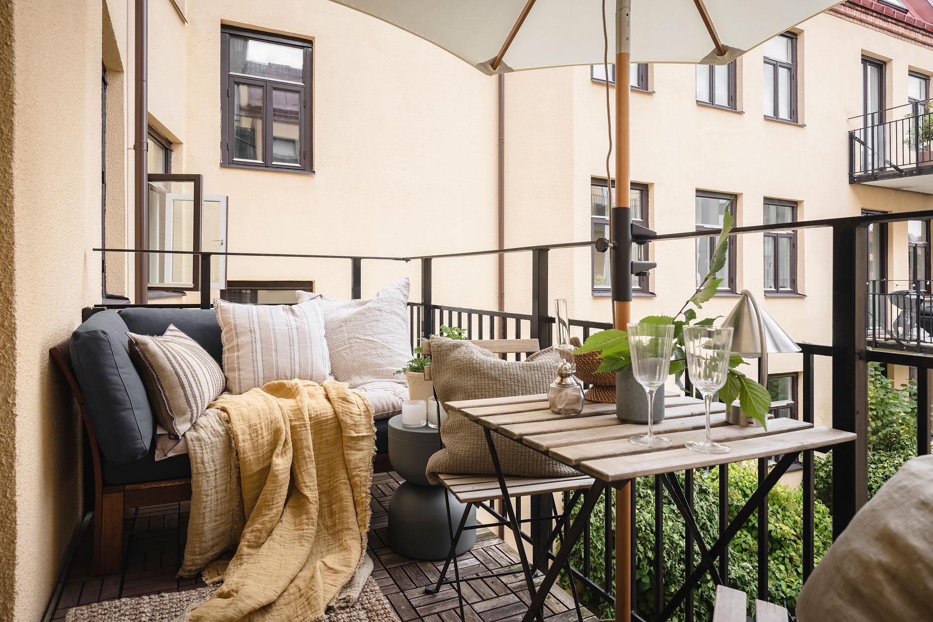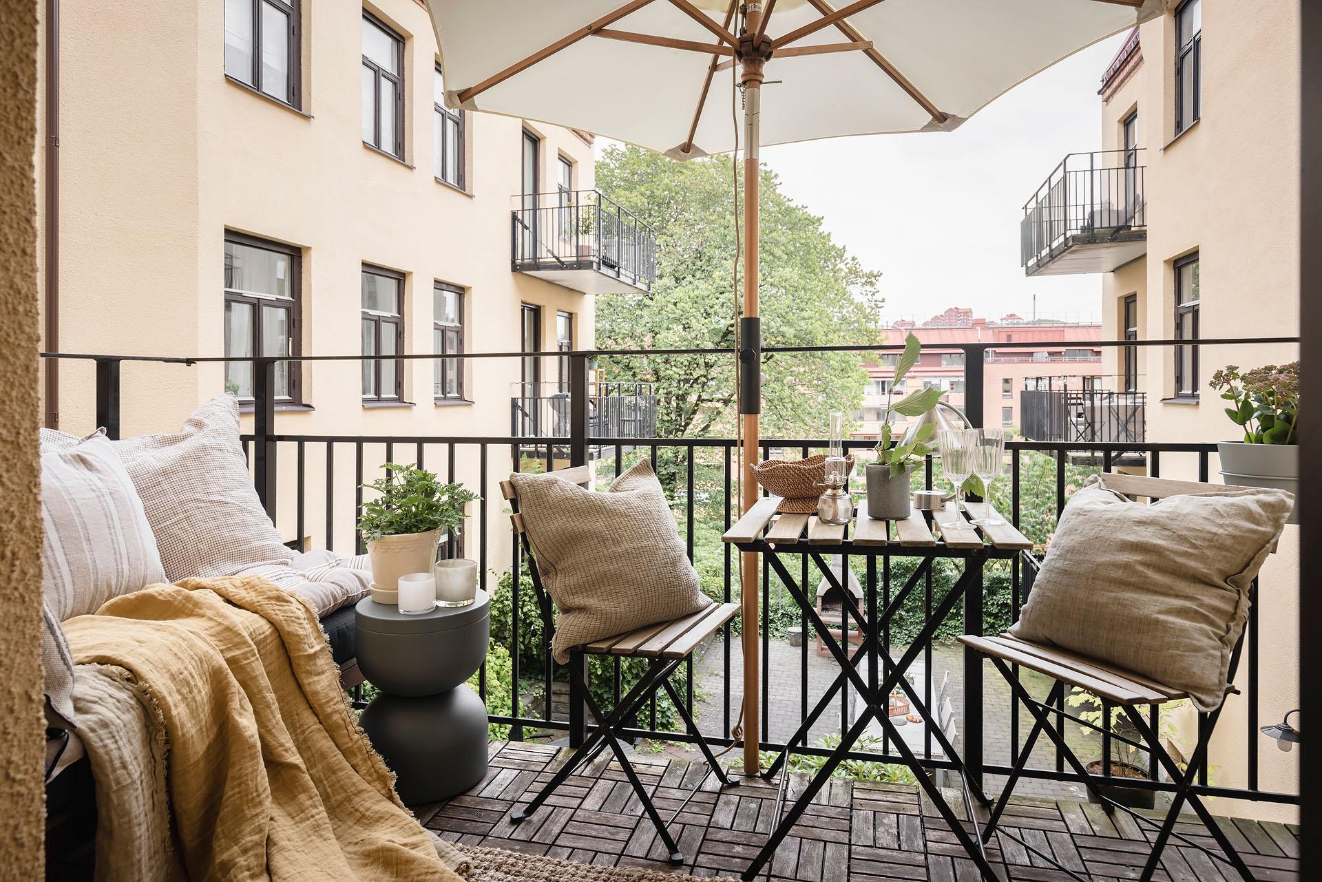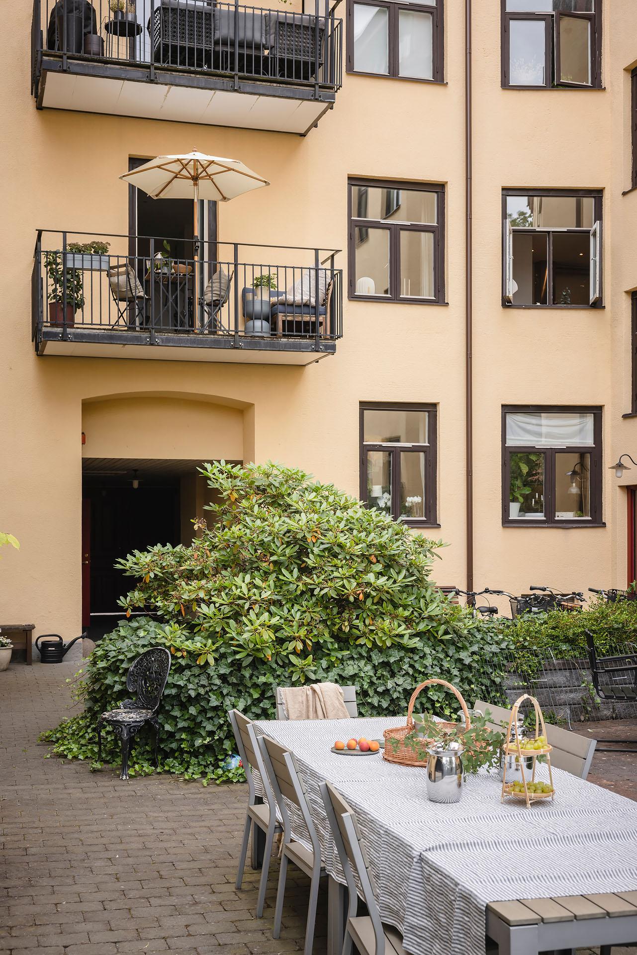 - Balkong/Uteplats: Ja. Stor balkong mot innergården