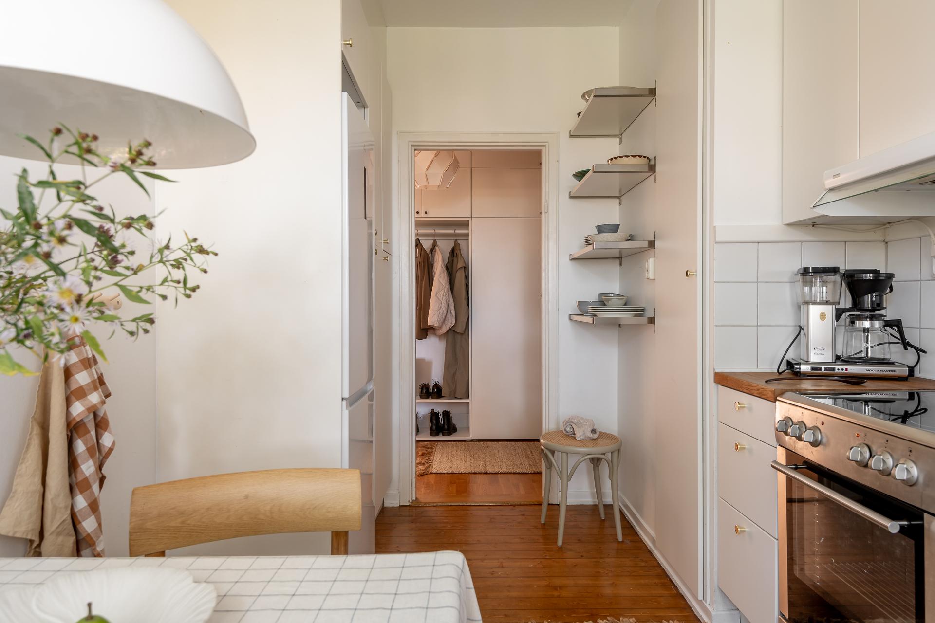 På en tyst återvändsgata intill Näckrosdammens natur finner vi denna trivsamma funkistvåa. Här råder verkligen lugnet trots det centrala läget en kort promenad från Avenyn och centrum. Den genomgående planlösningen låter dagsljuset flöda, och utanför fönstren och balkongen med härlig kvällssol är det rogivande grönska. Det är ingen insyn från något håll, och från sovrummet och köket har man fantastisk utsikt över stan. Planlösningen är lika inbjudande som kvadratsmart, och i vardagsrummet kan man samla kompisgänget för trevliga middagar. Stor stabil förening med låg belåningsgrad i välskött fastighet. Hiss finns. Varmt välkomna på visning!
