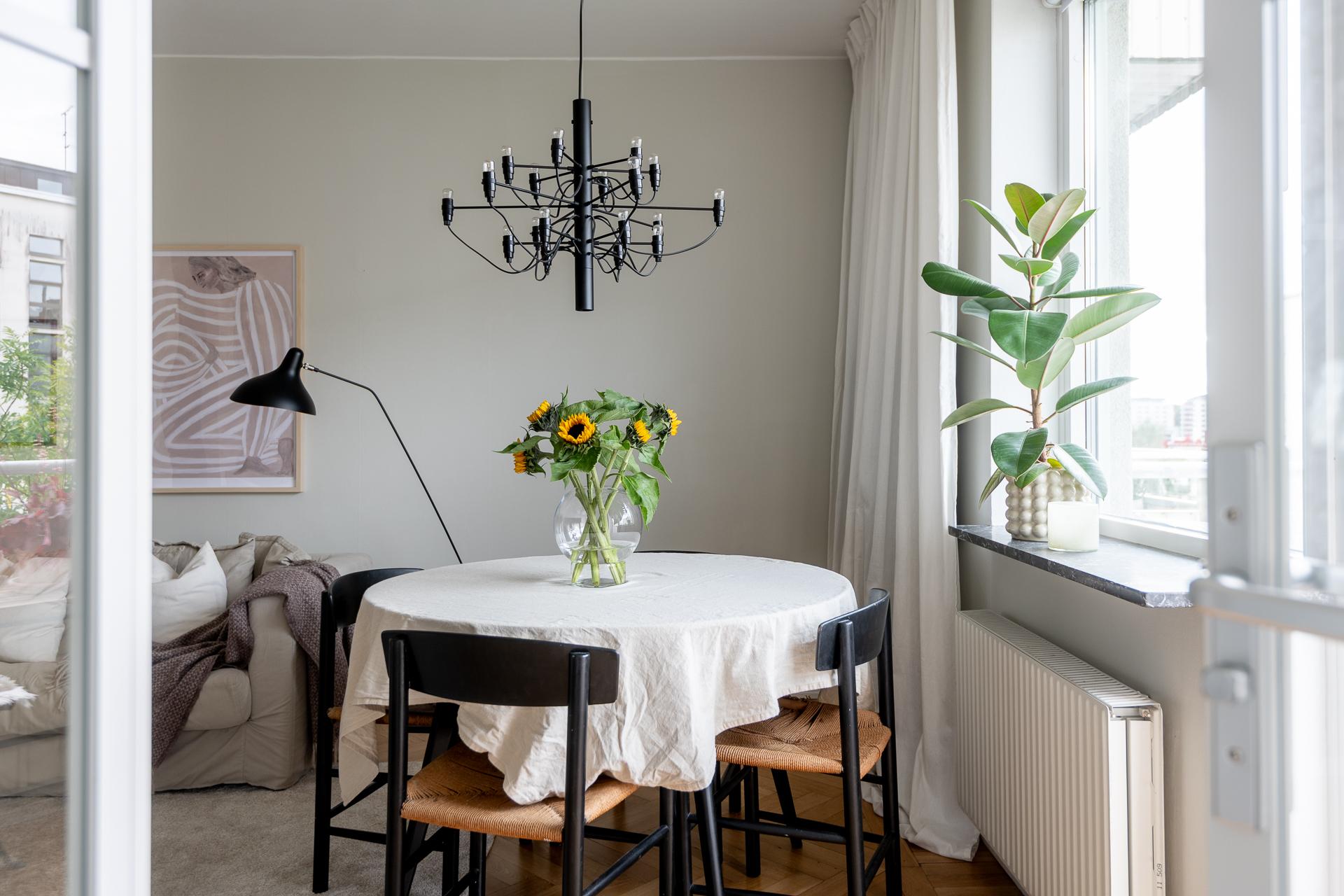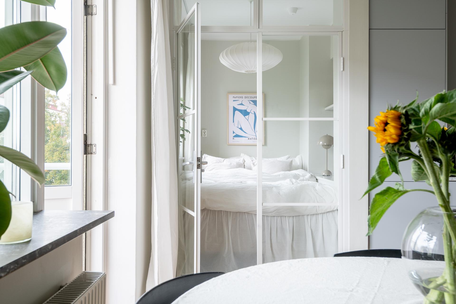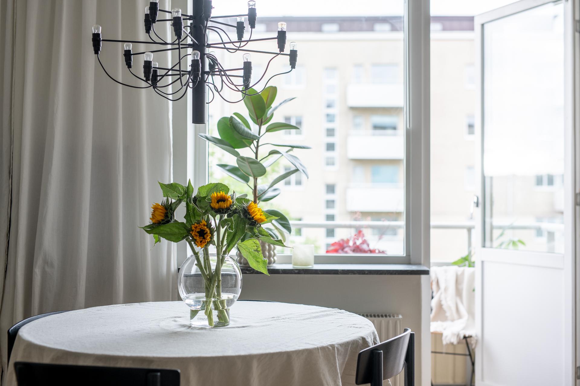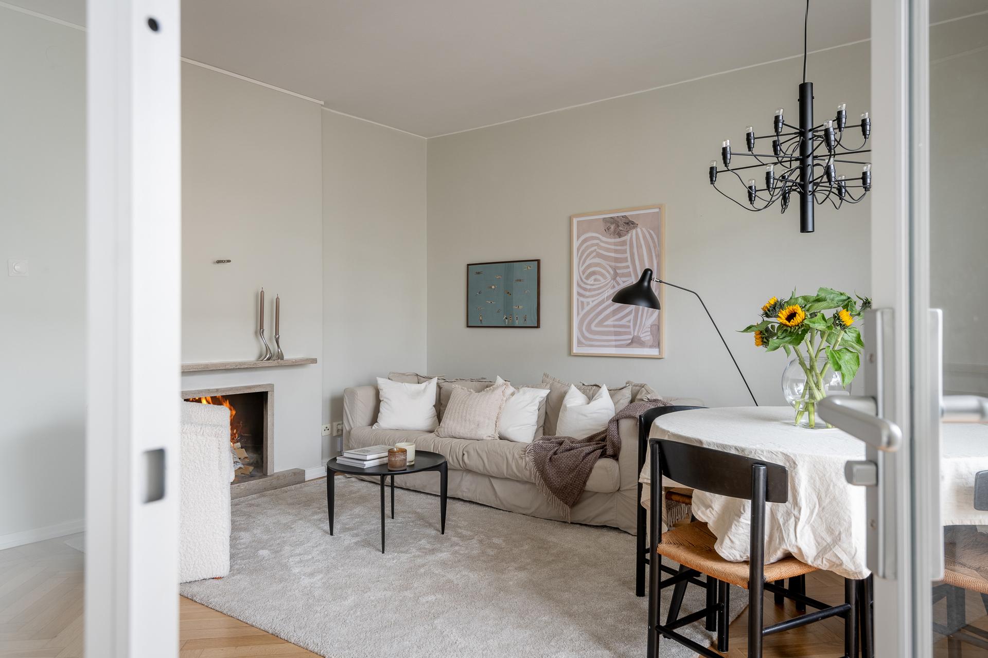 Tack vare sin generösa takhöjd och smarta planlösning känns denna smakfullt renoverade funkispärla betydligt större än vad antalet kvadratmeter anger. Vardagsrummet och köket förenas i en öppen sällskapsyta som växer när dörren ut till balkongen står öppen. Balkongen badar i sol, och utsikten över den parklika grönytan bakom huset ända bort mot Guldhedens höjder är intagande. Ljuset strömmar in, och efter att kvällsmörkret väl lagt sig är det mysigt att elda i den vackra öppna spisen. Lägenheten passar bra för såväl en singel som ett par, och en snygg industrivägg i glas och vitt smide skiljer av en mysig sovalkov med plats för en 140-säng. Alkoven har eget fönster och känns som ett riktigt sovrum. Läget är perfekt, och här bor man i rofyllda funkiskvarter med Chalmers campus inom ett stenkast och Avenyns puls på kort promenadavstånd. Dessutom är det en välskött förening med goda hyresintäkter från lokaler och hyresrätter.