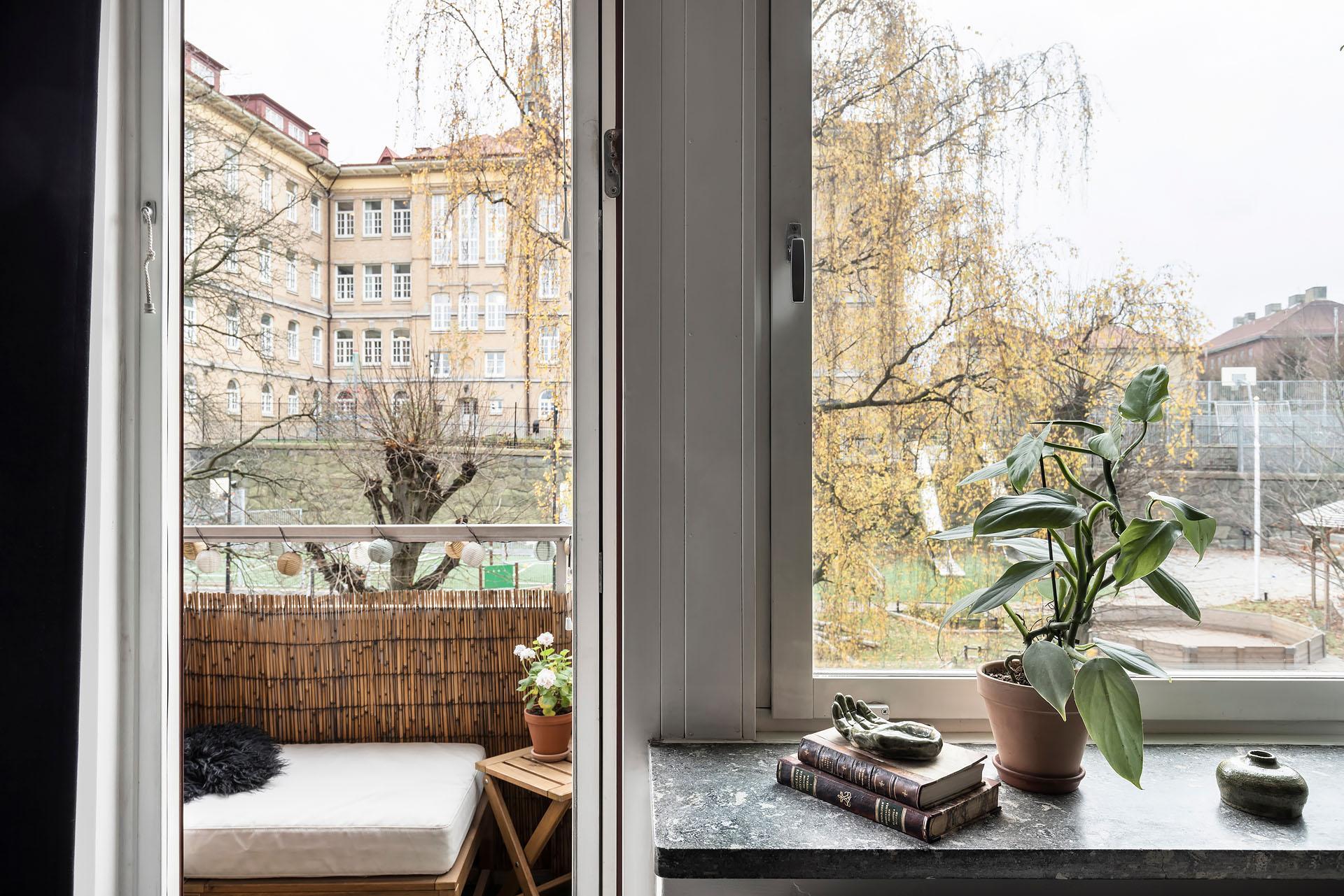 Två trappor upp i ett välbyggt tegelhus med hiss finner vi denna smakfullt renoverade tvåa. Takhöjden är generös och den genomgående planlösningen, med fönster i motsatta väderstreck, låter dagsljuset flöda. Sommartid har den södervända balkongen, med vacker utsikt mot ståtliga Ånässkolan, sol från lunch till kväll. Sovrummet och köket ligger fritt, och härifrån sträcker sig utsikten ända bort mot de skogsklädda höjderna utanför staden. Det är högt i tak, och fönstren sitter i djupa nischer med stiliga bänkar i natursten. Planlösningen är inbjudande och i vardagsrummet, med charmig frilagd tegelvägg, finns det plats för både soffa och matgrupp. Köket, som renoverades 2015, har bra svängrum för hemmakockarna och i badrummet från 2014 finns bekväm vardagslyx i form av en kombimaskin. Lägenheten är genomgående i gott skick, och i skrivande stund avslutas en relining av fastighetens stammar. Fiber och TV tillkommer för endast 85 kr/mån. Tillträde: januari. Varmt välkommen hem!
