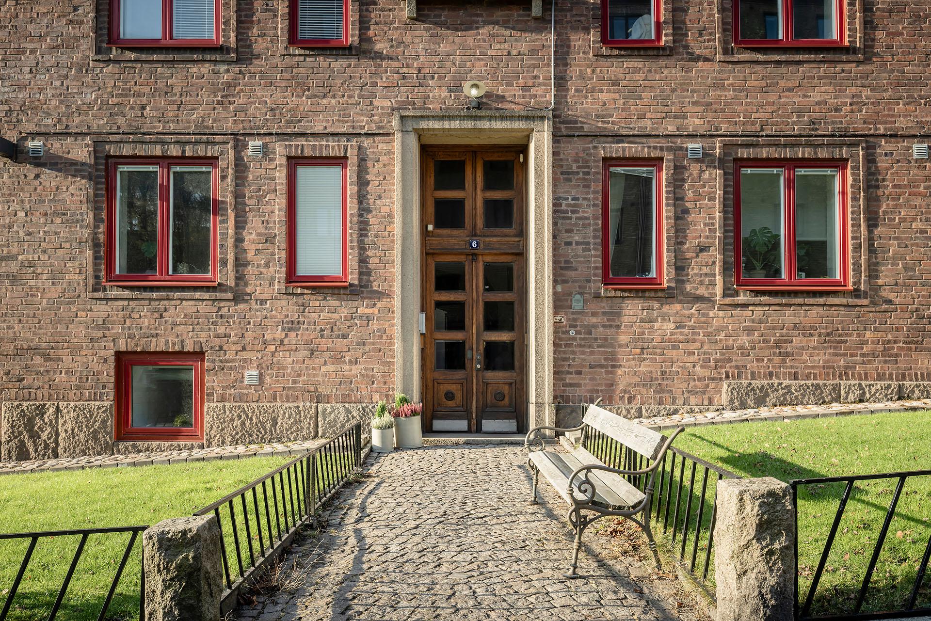 Huset med adress Övre Olskroksgatan 6 är ett riktigt praktexempel på övergången från 1920-talets klassicism till 1930-talets funkis. Bakom ritningarna står den omtalade arkitekten Karl Severin Hansson. Innanför den pampiga entréporten väntar ett stilfullt trapphus med gemensamma vädringsbalkonger och en vacker gammal hiss som likt ett smycke rör sig mellan våningsplanen. En robust ytterdörr leder in till lägenheten som med sin generösa takhöjd och sina fina originaldetaljer verkligen andas tidigt 1930-tal. Skicket är gott, och varsamma renoveringar har genomförts under senare år. Köket renoverades som nämnts 2023, och i år har badrummet fräschats upp med nya duschväggar, ny toalett och ny tvättkommod. Stavparketten och brädgolven slipades i våras.