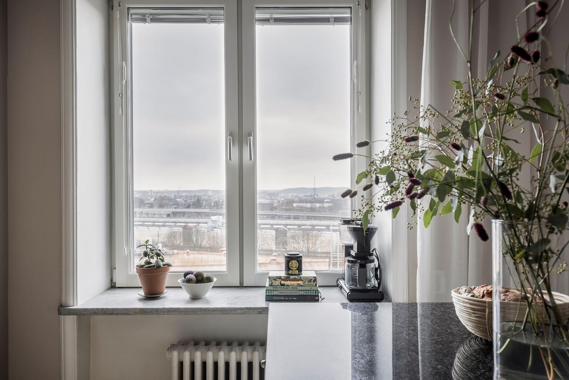 Ljuset har ett otroligt spelrum i denna ljuvliga tvåa, och den generösa takhöjden ger en härlig känsla av rymd. När eftermiddags- och kvällssolen lyser in blir stämningen magisk, och solnedgångarna målar den öppna himlen utanför de stora fönstren i fantastiska färger. Det är helt fritt från insyn, och den milsvida utsikten ända bort mot höjderna som omger staden sätter sinnena i rörelse. Lägenheten ligger på våning fyra i ett graciöst tegelhus från 1931, och bevarade originaldetaljer såsom stavparkett, lister, spegeldörrar, takrosetter, golvstående gjutjärnsradiatorer och naturstensbänkar i djupa fönsternischer berättar dess historia. Tidlösa materialval samsas med den gammaldags charmen på ett tilltalande sätt. Det är ett lika gästvänligt som vackert hem och köket, som renoverades 2023, förenas med vardagsrummet i en öppen sällskapsyta med gott om plats för att samla familj och vänner för stora middagar. Köksön bjuder in till social matlagning. Även sovrummet är rymligt, och förvaringsmöjligheter utöver det vanliga erbjuds i form av både klädkammare och flera garderober.