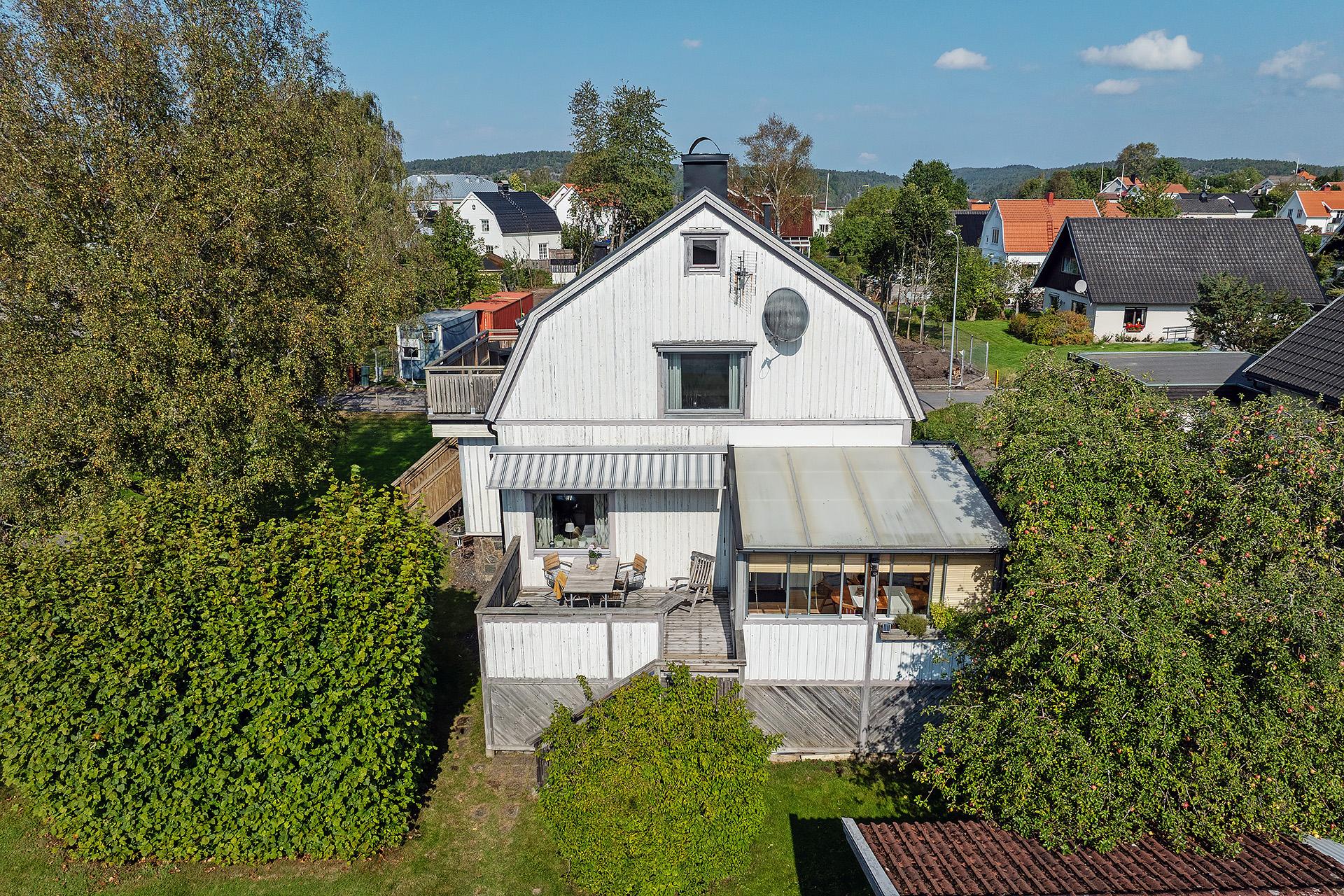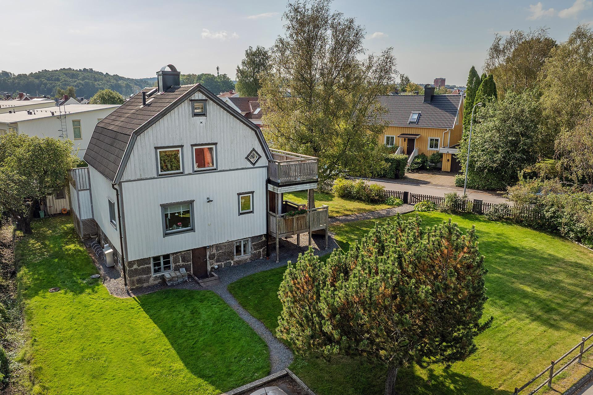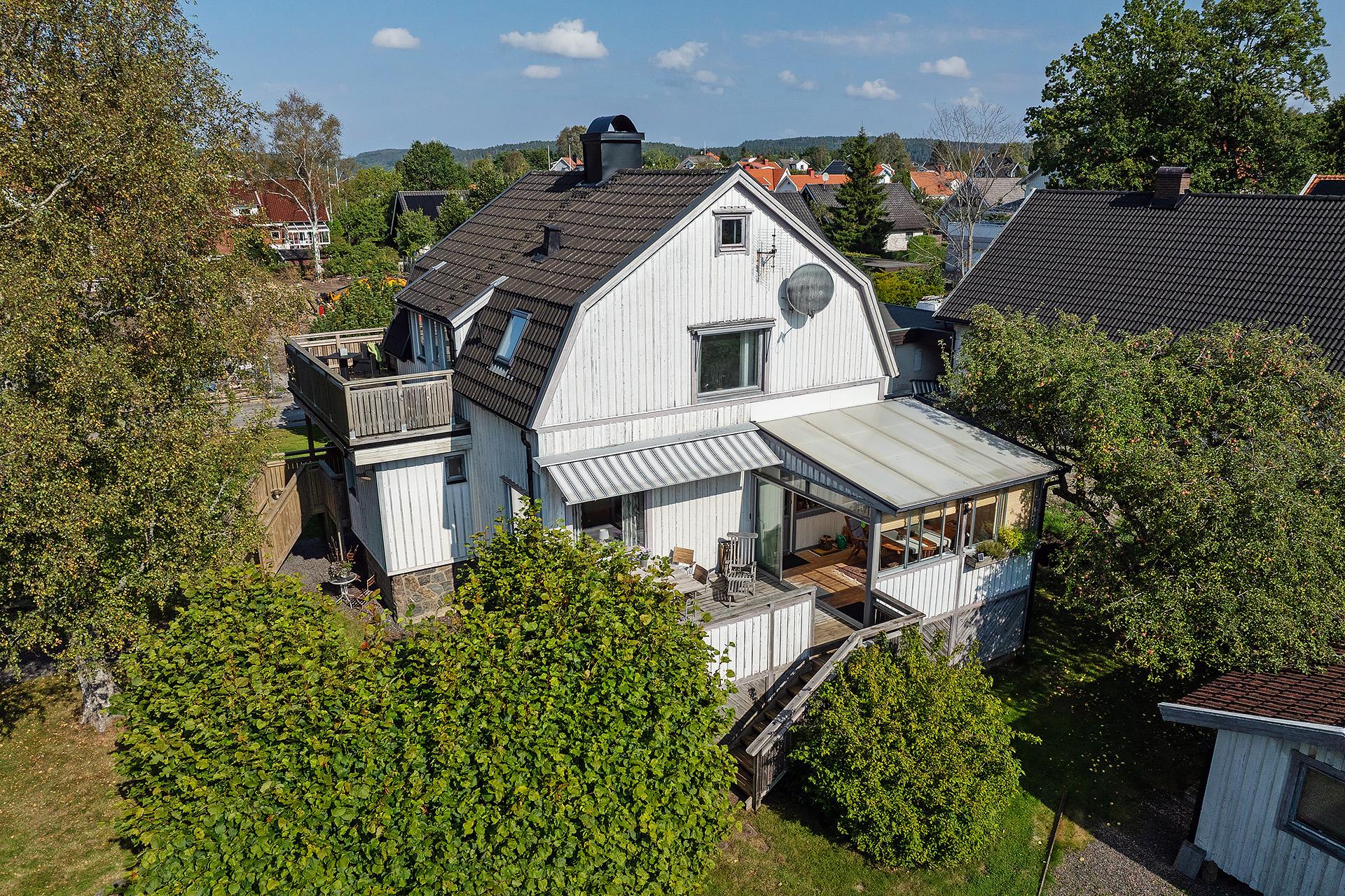 I över hundra år har denna fina villa i nationalromantisk stil vilat på sin vackra naturstensgrund. Det är ett välbyggt hus som tagits väl om hand genom decennierna. Huset bjuder in till umgänge, och på entrévåningen förenas vardagsrummet, matsalen, köket och den välkomnande hallen i en rundgående planlösning. Det finns gott om utrymme för att samla släkt och vänner för middagar, högtidsfirande och kalas, och från tidig vår till sen höst växer sällskapsytan genom uterummet och den soliga altanen intill. Ljuset strömmar in, och mörka höst- och vinterkvällar är det mysigt att elda i vardagsrummets braskamin. Övervåningen är en privat sfär med tre möjliga sovrum, ett smakfullt renoverat badrum och utgång till en solig terrass med intagande vy över takåsarna, trädtopparna och himlen. Källaren, vars stenväggar verkligen får en att känna av historiens vingslag, består av tvättstuga, fjärrvärmerum och allrum.