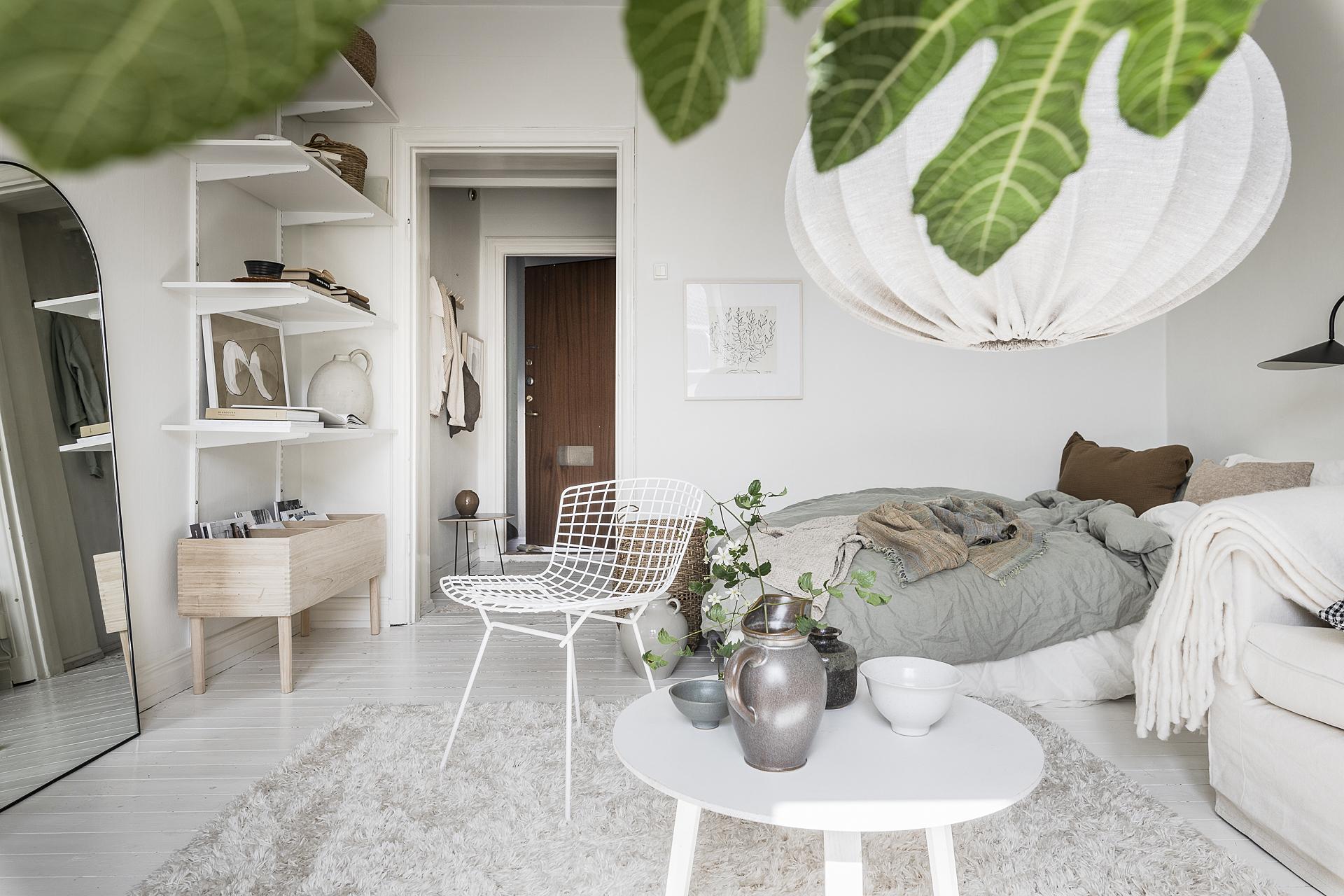 Mysigt rum med stort ljusinsläpp, och ljuvlig utsikt mot Sofiagatan och dess färgglada små radhus. Rummet går lätt att möblera med dubbelsäng, soffa, och arbetsplats om så önskas. Vitmålade väggar, och vitmålat brädgolv.