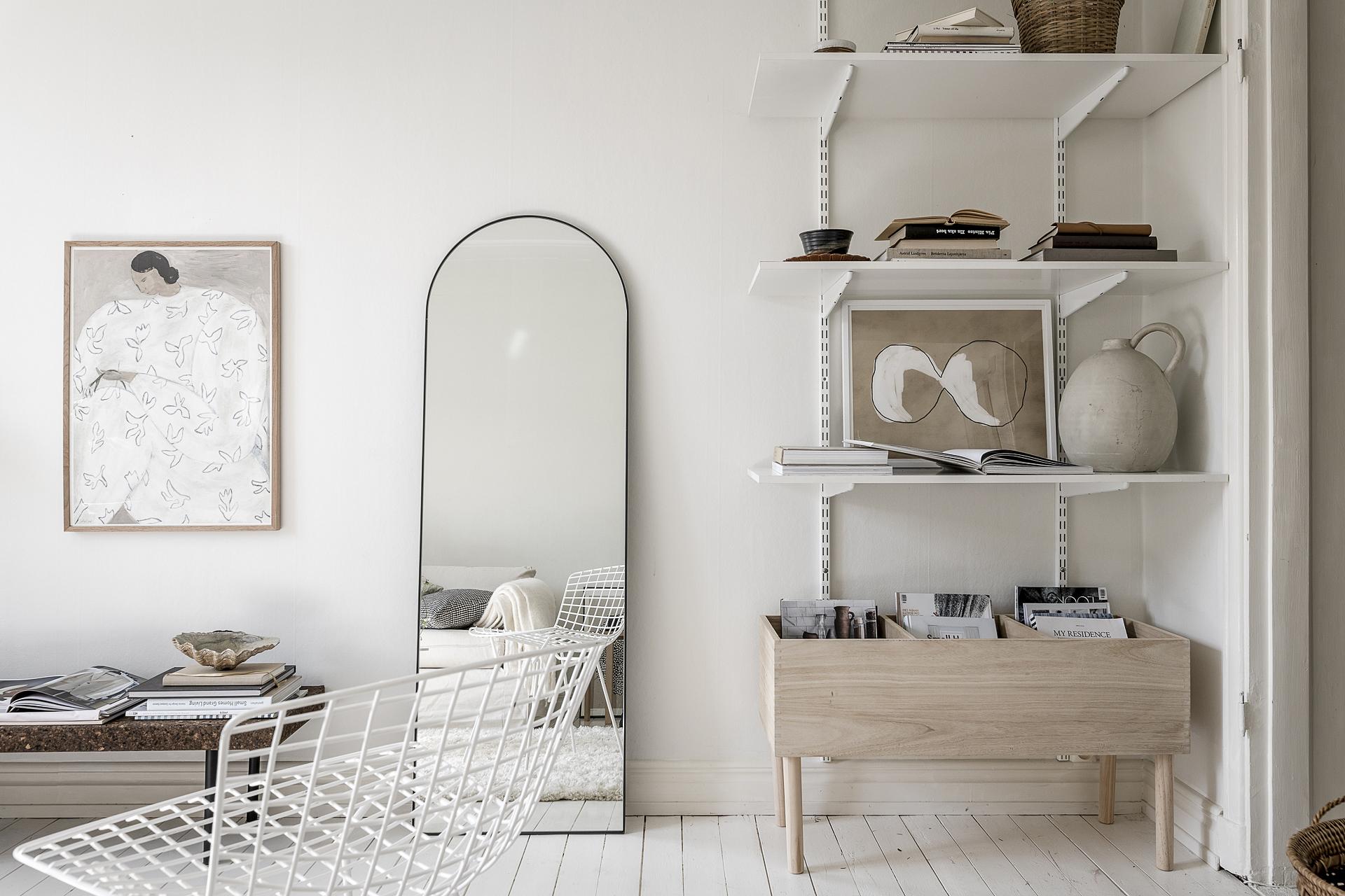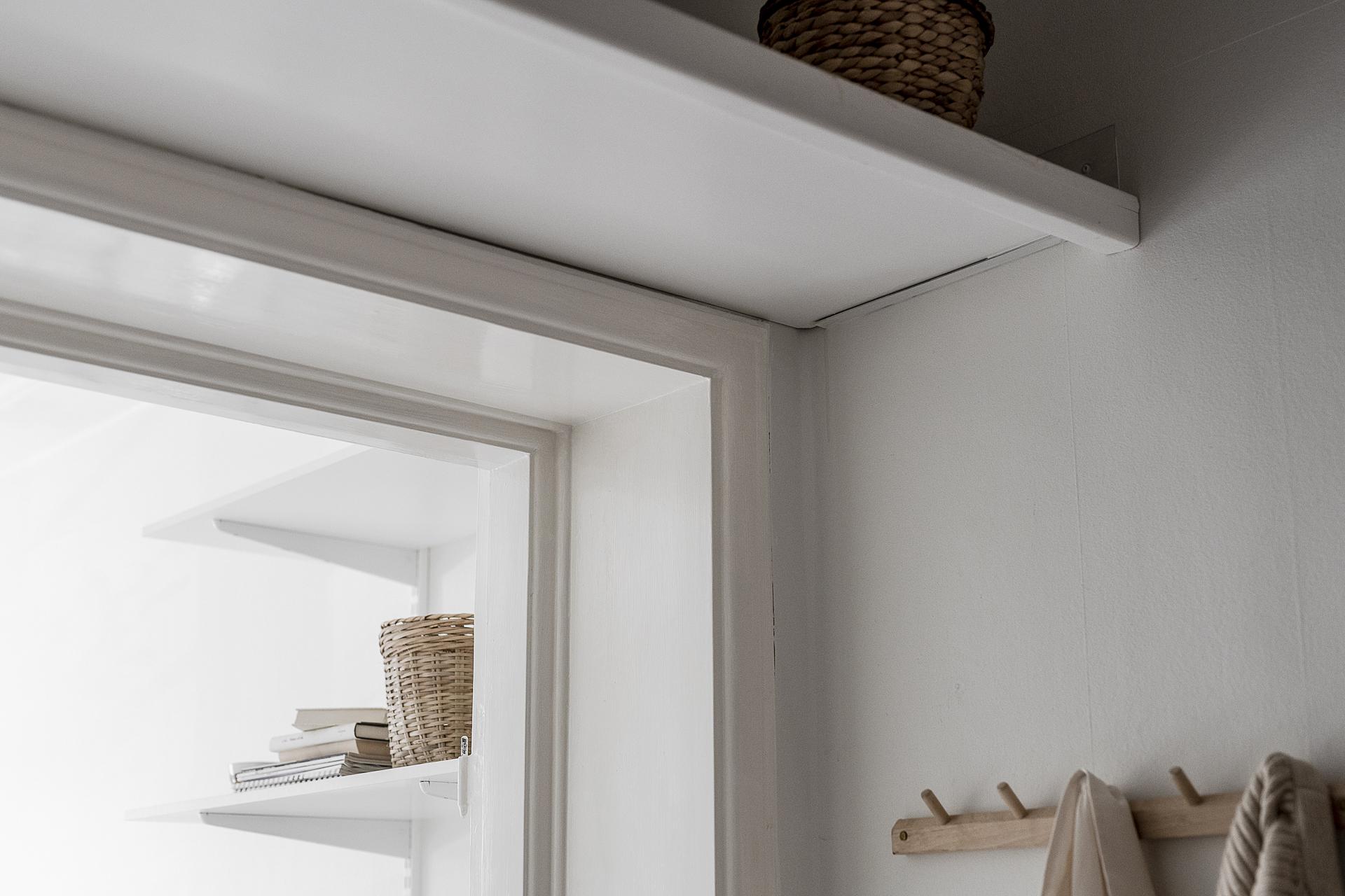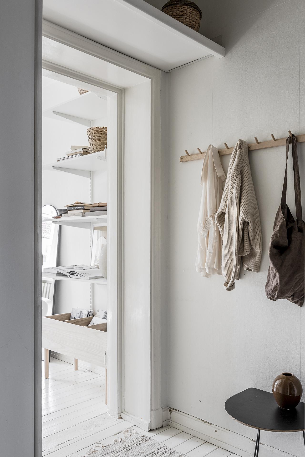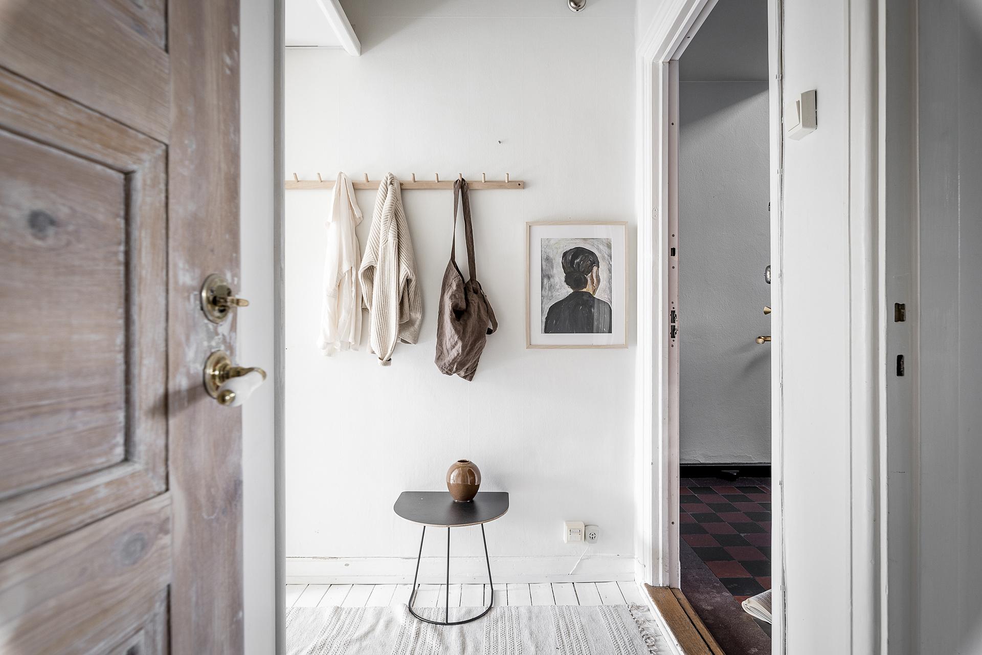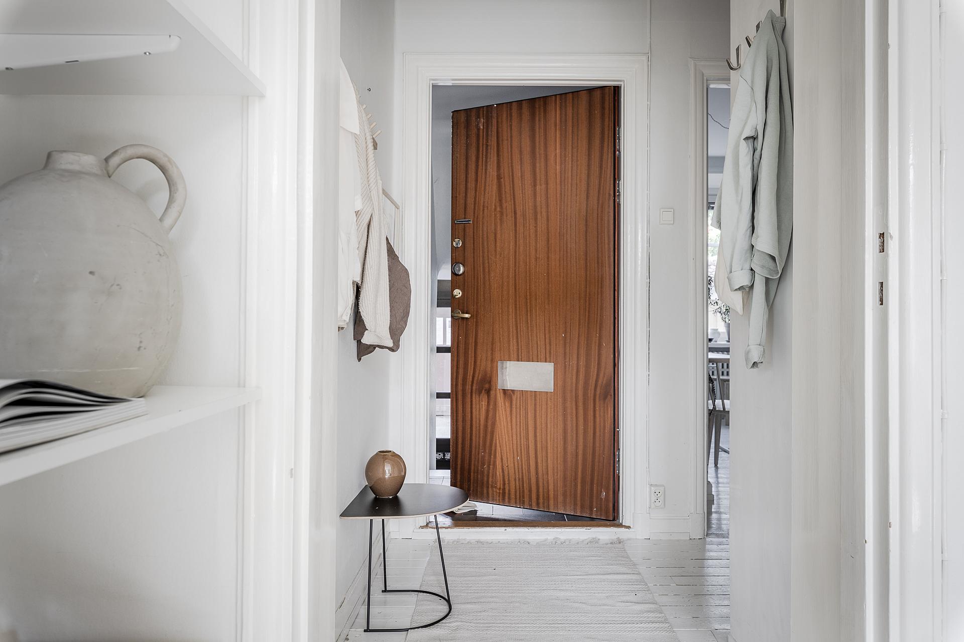 Centralt placerad i bostaden finns hallen, och härifrån nås alla rum. Här finns gott om förvaring, och en fristående garderob har ställts in.