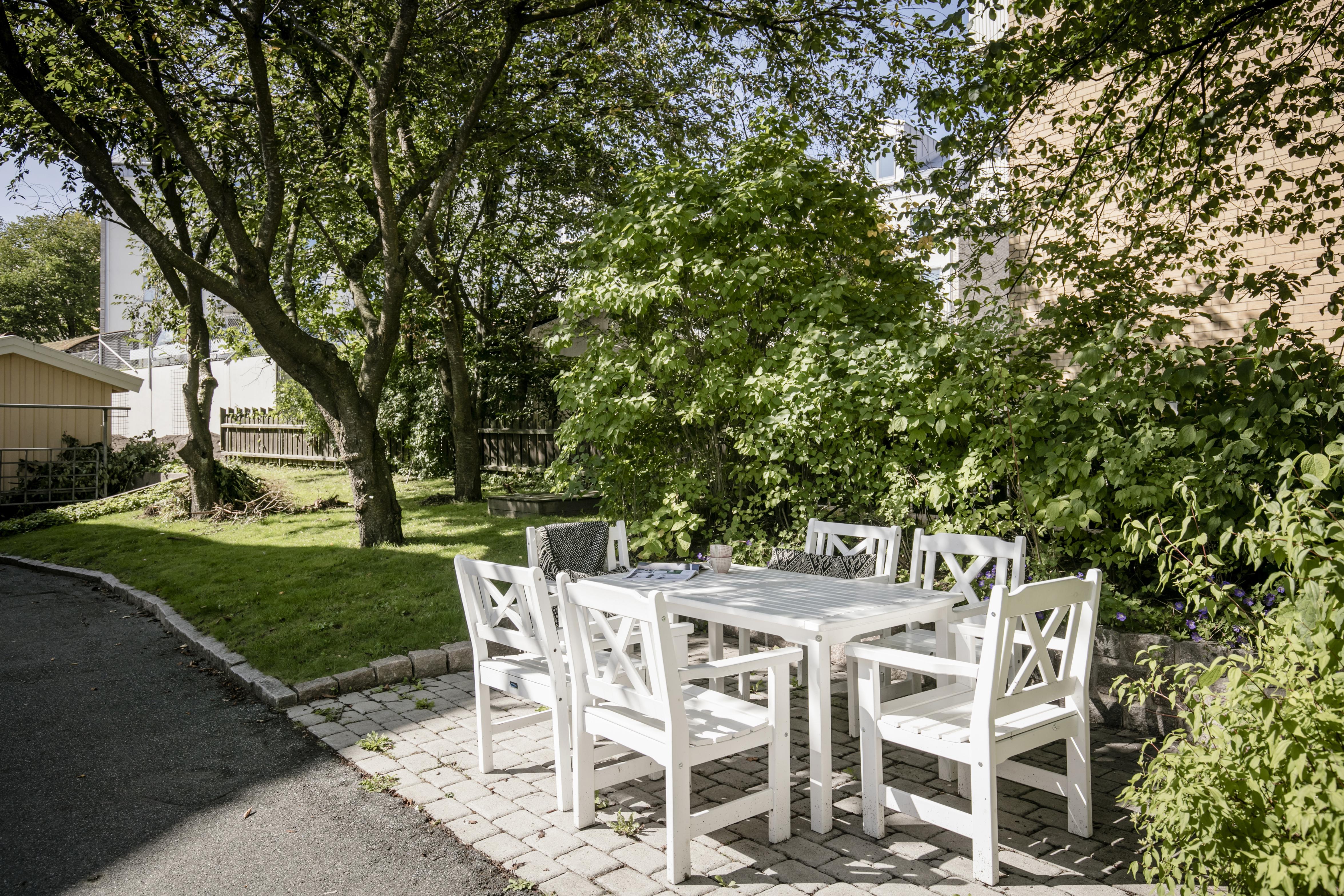 - Balkong/Uteplats: Nej. Gemensamma uteplatsers på föreningens lummiga gård.