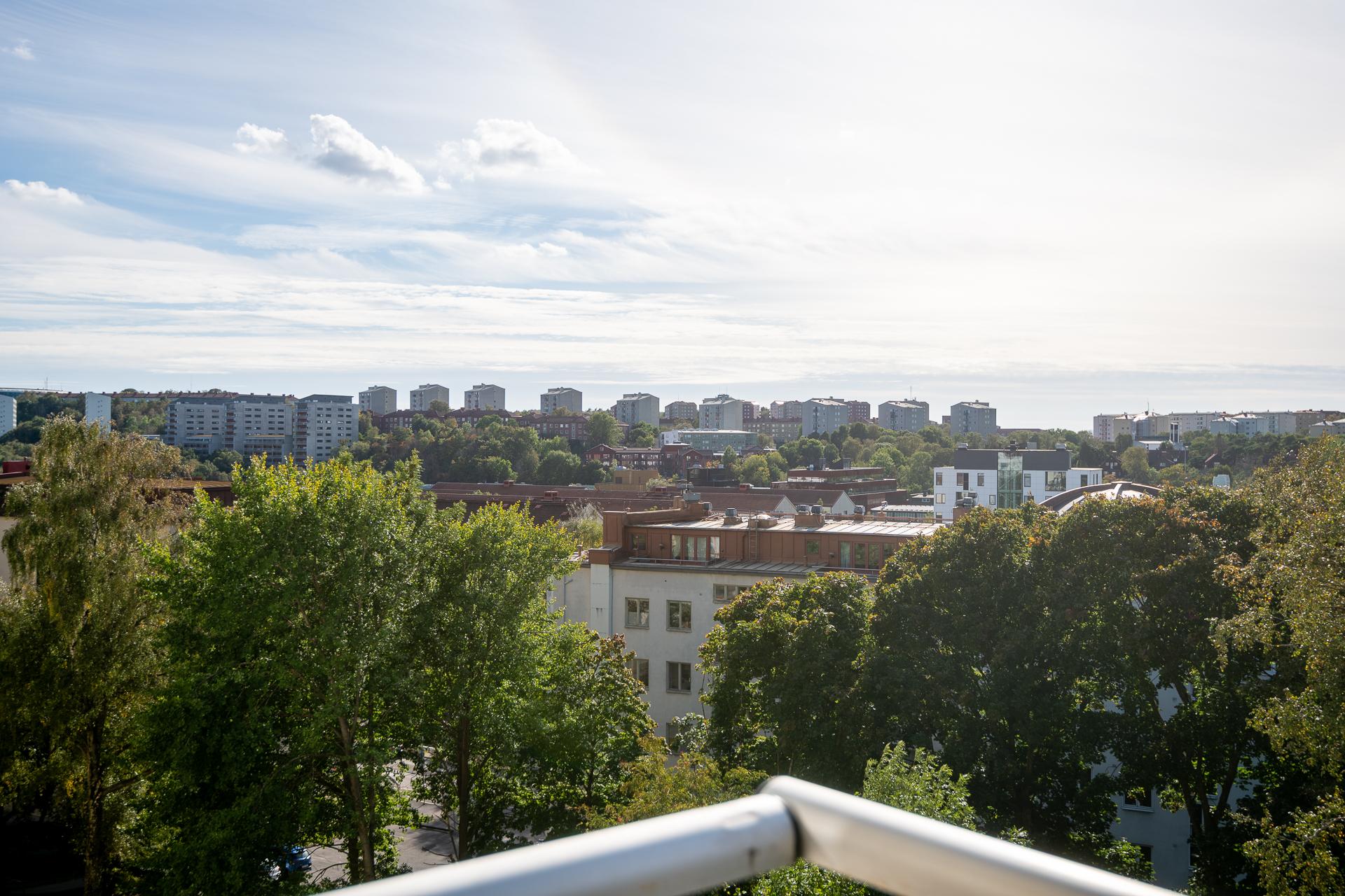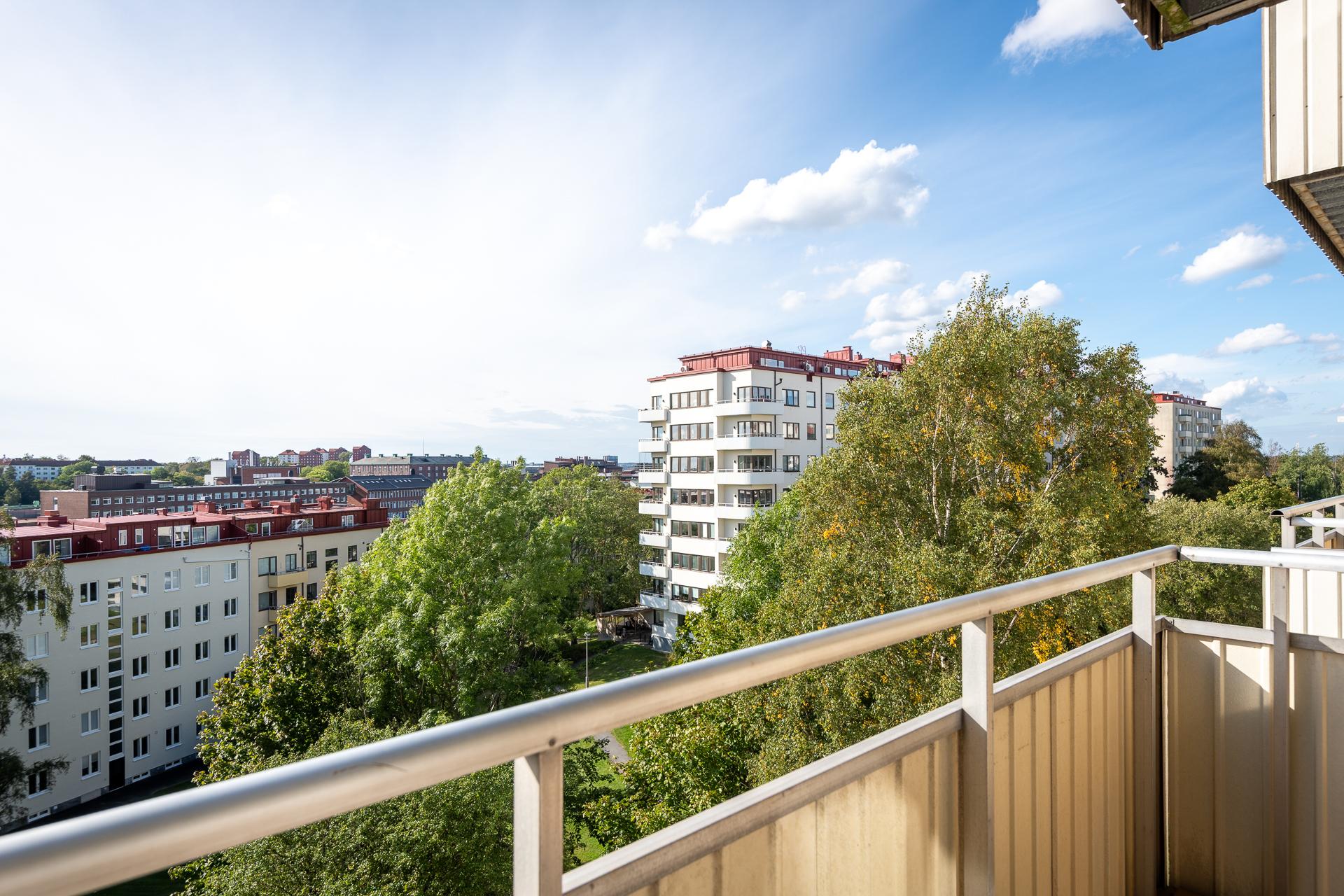 Det är ett mycket trivsamt hem med lika genuin som fräsch funkiskänsla. Den genomgående planlösningen ger dagsljuset ett stort spelrum, och sommartid njuter man av solen ute på balkongen med fri utsikt över omgivningen. Eller uppe på den gemensamma takterrassen med utemöbler, gasolgrill och fantastiska vyer över stora delar av staden. 1930-talets stadsplaner benämndes ”hus i park”, och huset ligger mitt i ett parkliknande kvarter med lummiga träd, härliga gräsytor och berg i dagen. Det är en välskött bostadsrättsförening med god ekonomi och en belåningsgrad under snittet för Göteborg.