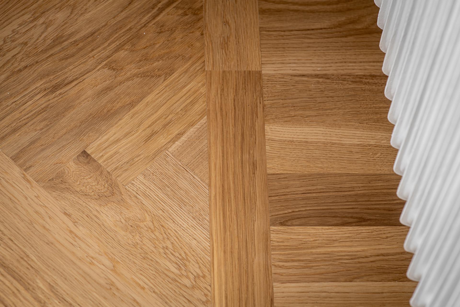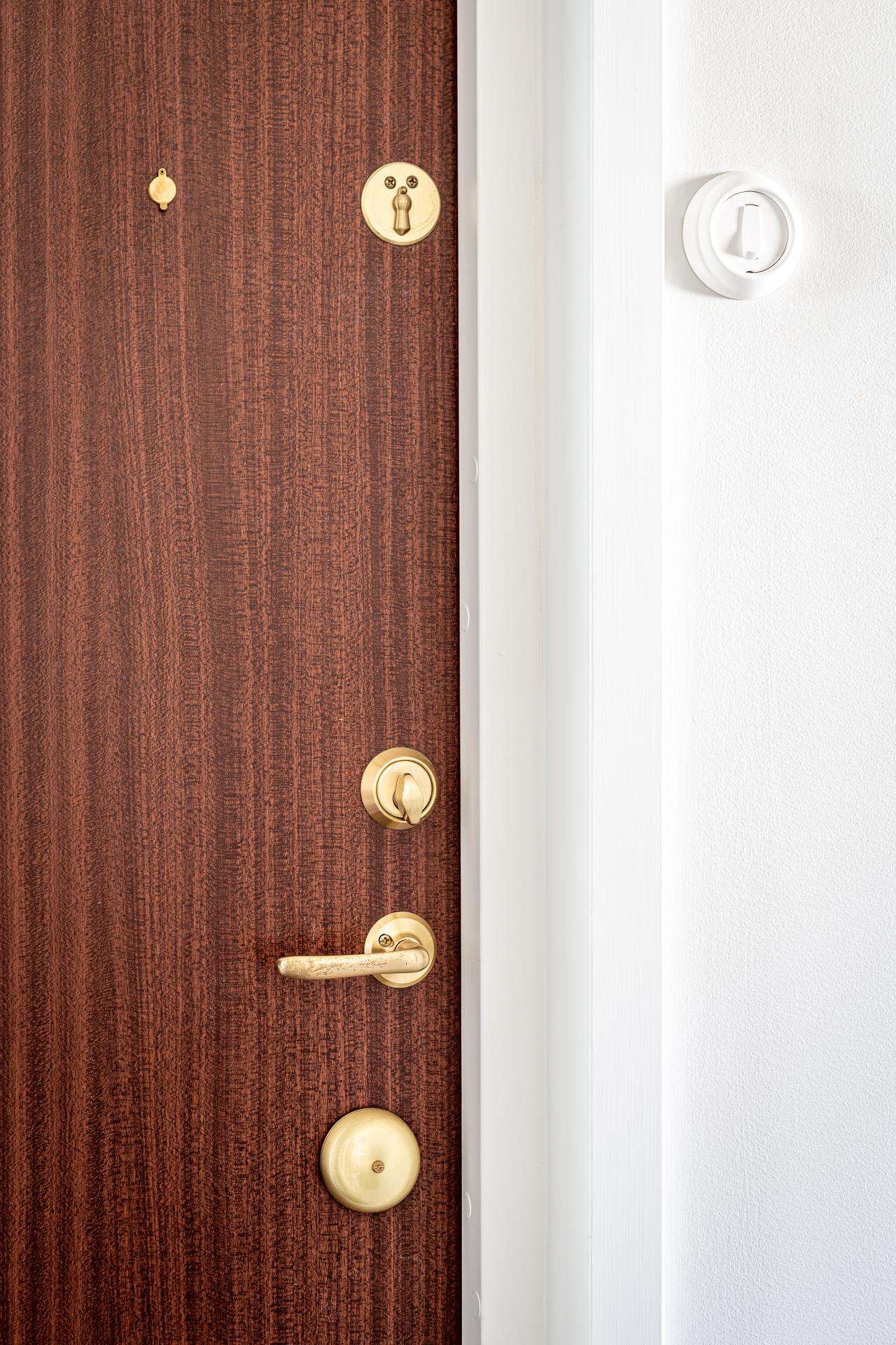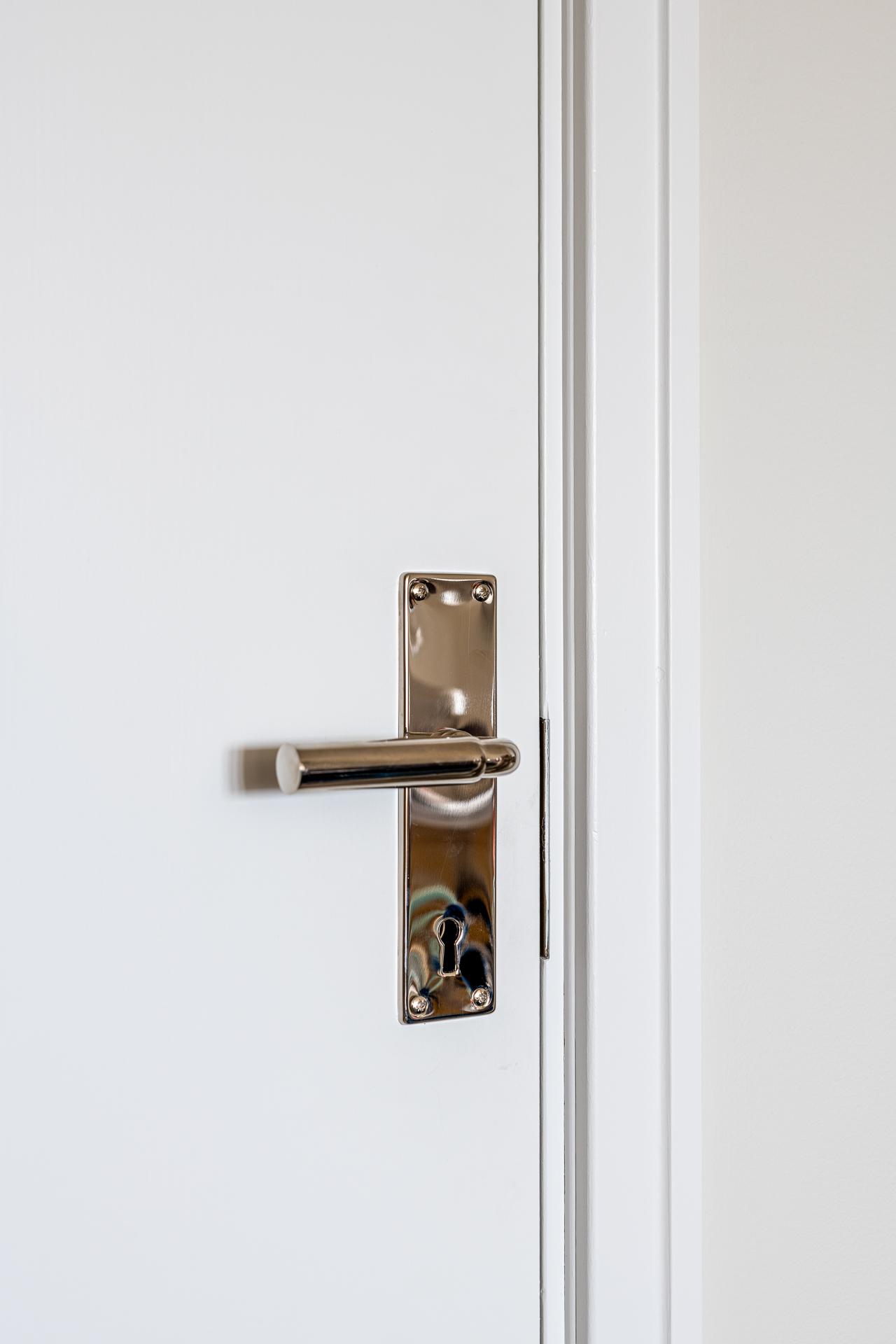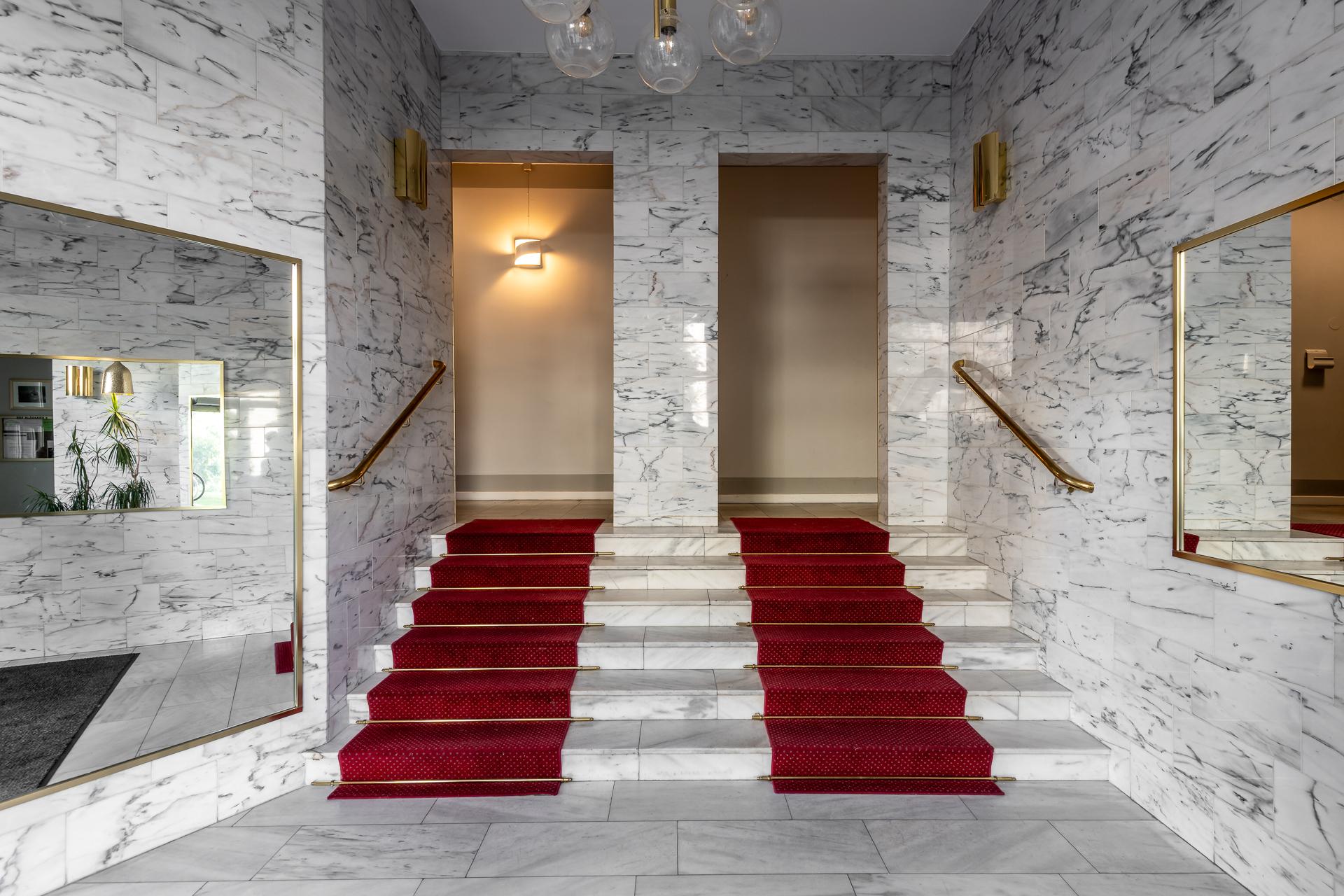 Lägenheten har genomgått en totalrenovering under de senaste tre åren, och skicket är det allra bästa. Inredningen i det lika smakfulla som välplanerade köket kommer från HTH, och badrummet är helkaklat med italienskt kakel och klinker. Fiskbensparketten från Ekebo och trestavsparketten från Kährs är lackade med matt naturlack. Golvlisterna har specialbeställts för att likna originalen, och dörrfodren är tillverkade av Veckebo Hyvleri i Hälsingland. Alla lister är målade med halvblank snickerifärg från Jotun. Nya dörrhandtag i tidstypisk funkisstil har satts in, och alla uttag och kontakter bytts ut till nya från Schneiders retroserie ”Renova”.