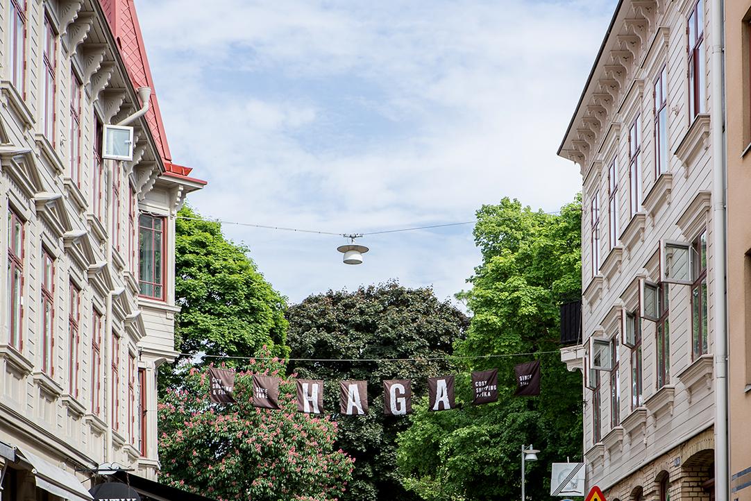 Haga är en stadsdel med liv och rörelse från såväl turister som promenerande göteborgare och det är fullt av charmiga kaféer och små, unika butiker där du kan handla hattar, antikviteter, second hand, praliner, te, kryddor, inredningsartiklar och mycket, mycket mer.