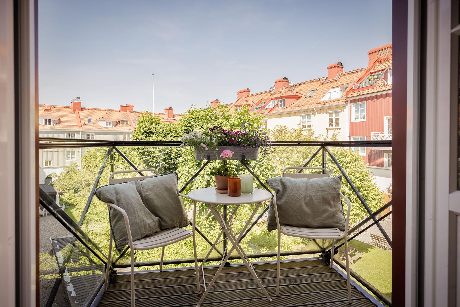 - Balkong/Uteplats: Ja. Balkong mot innergård.