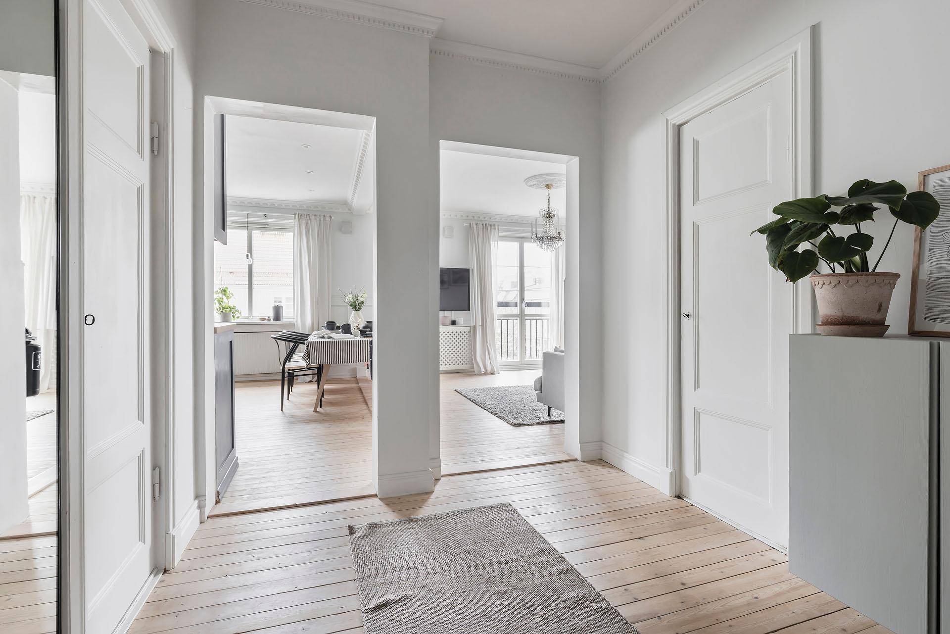 I ett av Bagaregårdens idylliska landshövdingehuskvarter finner vi denna inbjudande hörntvåa med högt i tak och härligt ljusinsläpp från fönster i två väderstreck. Lägenheten renoverades i sekelskiftesstil för cirka sex år sedan, och klassiska snickerier såsom bröstpanel, stuckatur och takrosetter ger en vacker inramning. Spegeldörrarna och brädgolven är i original från byggnadsåret. Vardagsrummet och köket förenas i en öppen planlösning med plats för stora middagsbjudningar, och bakom en laserad spegeldörr döljer sig ett rymligt sovrum med en hel garderobsvägg. I anslutning till hallen finns en lyxig klädkammare, och badrummet har nyligen uppdaterats med en ny tvättmaskin. Ett underbart boende erbjuds, och kvarterets innergård är en grönskande oas med utemöbler, grillar och prydliga rabatter. Förutom en fantastisk utemiljö har den ekonomiskt välmående och synnerligen lågt belånade föreningen även övernattningslägenhet, övernattningsrum och en samlingslokal som kan hyras för sammankomster. Tillträde: maj eller senare. Varmt välkomna på visning!