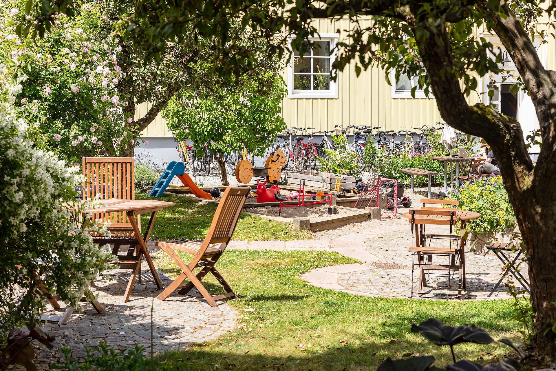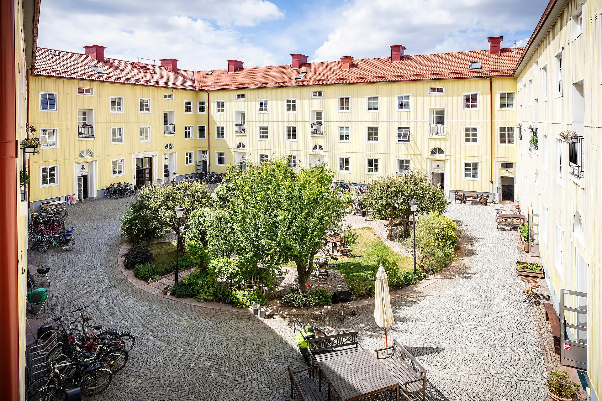 - Balkong/Uteplats: Nej. Föreningen har en underbart vacker, gemensam innergård med uteplatser, traä, blommor och lekplats.