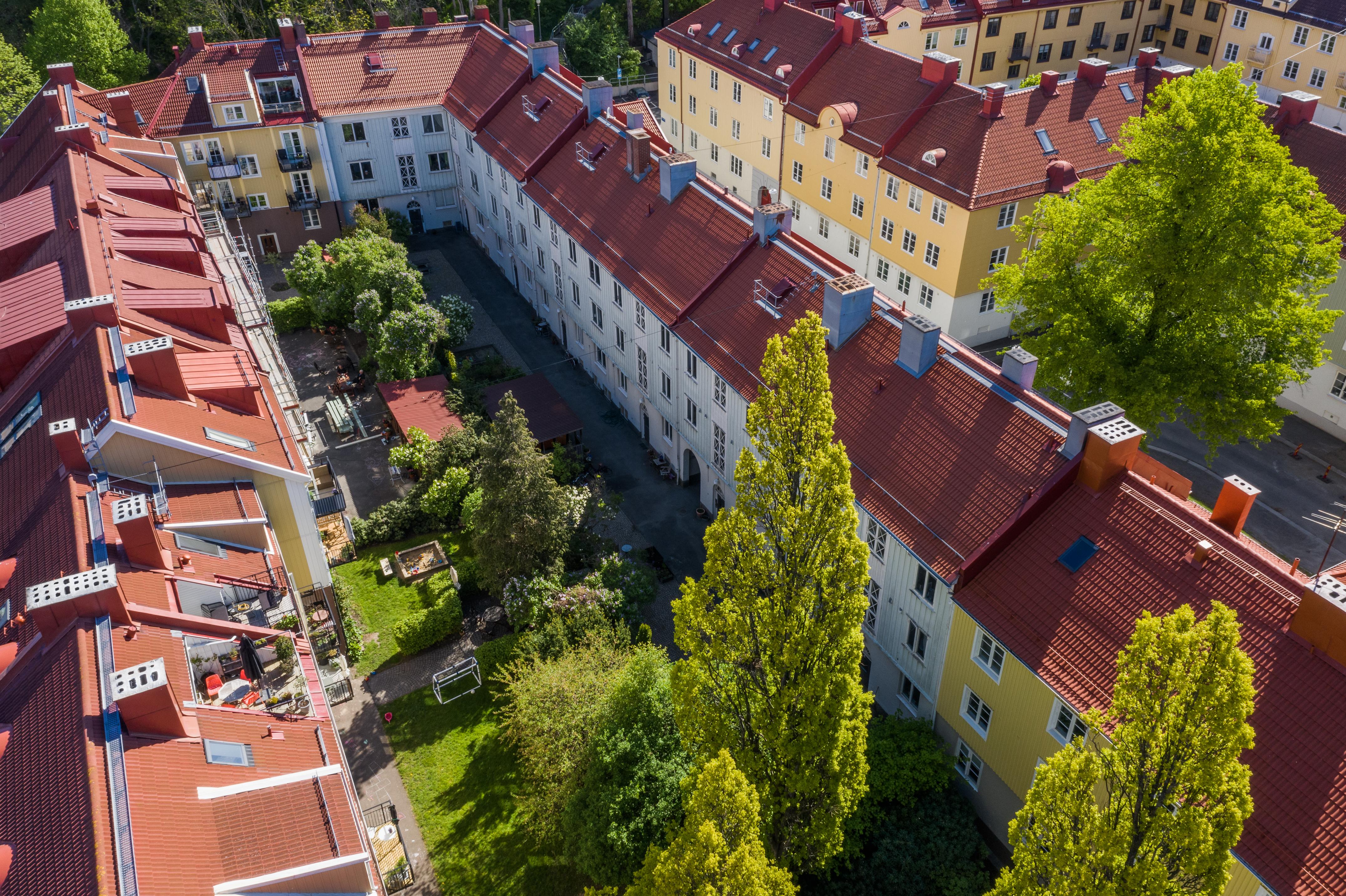 Här bor du i en etagelägenhet, insynsfritt och med fönster i tre väderstreck, med både balkong för sköna sommardagar och kakelugn för mysiga vinterkvällar. Planlösningen är flexibel och passar lika bra för en barnfamilj som för paret som vill ha mycket sällskapsyta. Till exempel är den nuvarande matsalen, med utgång till balkongen, även ett perfekt sovrum. Skicket är gott och läget är det bästa tänkbara. Här erbjuds ett rofyllt boende i lugna kvarter med lekplatser, förskola, skola, kafé och italiensk vinbar inom ett stenkast. Det är även nära till Härlanda tjärns badplats, Skatås motionsmöjligheter och Delsjöområdets natur. Med spårvagn tar man sig snabbt in till stan. Tillträde: våren eller enligt överenskommelse. Varmt välkommen hem!