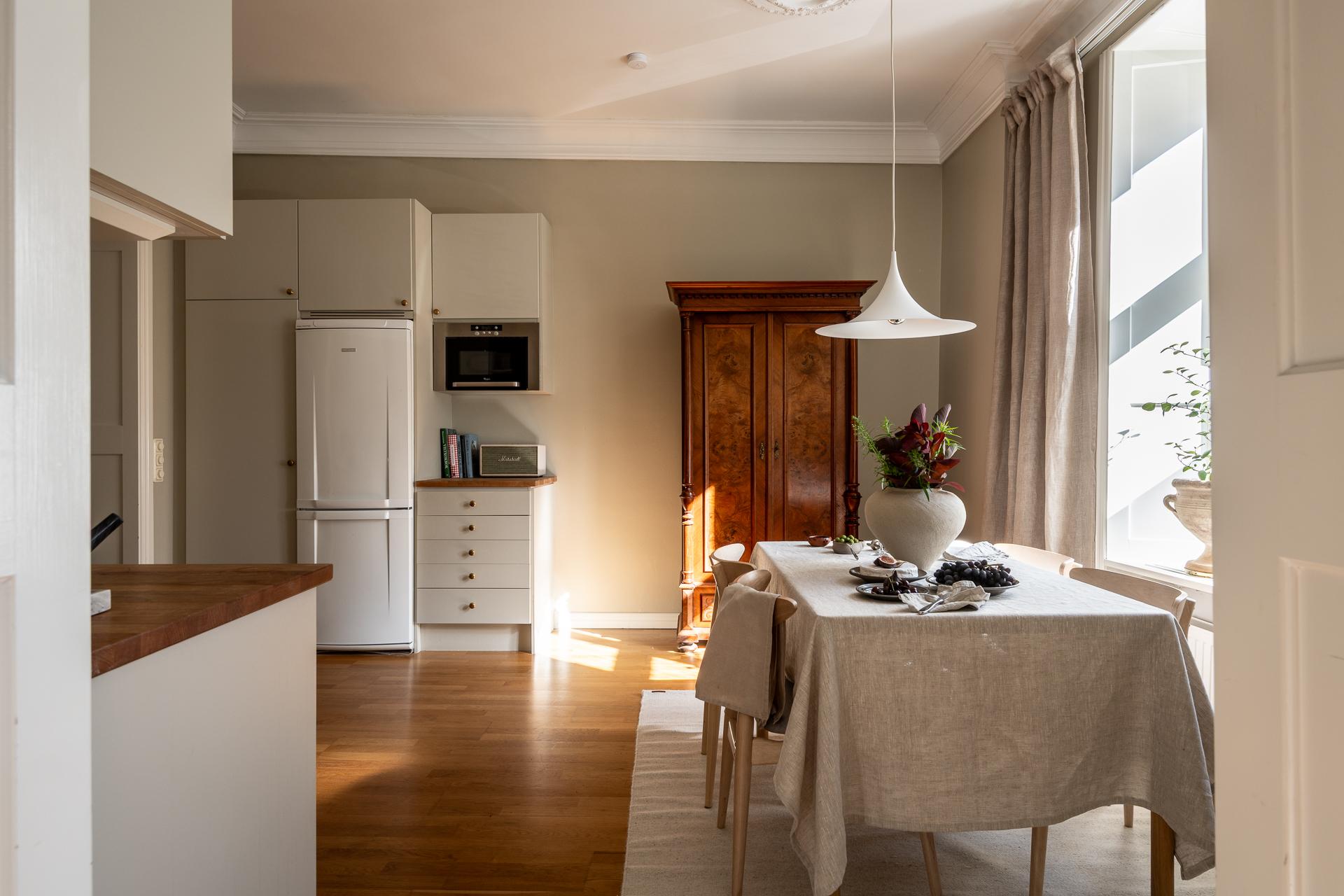 I en underbar fastighet uppförd år 1888, supercentralt men ändå väldigt lugnt belägen, finns nu denna 1,5:a om 52 välplanerade kvadrat till salu. Ett stort sällskapskök, rymligt vardagsrum, ovanligt tilltaget badrum med tvättmaskin samt en väl avskild alkov med plats för dubbelsäng. Ett trivsamt hem för både en och två personer. Bostadsrättsföreningen har en stabil ekonomi och äger en välhållen och grundförstärkt fastighet. Lättillgänglig gemensam balkong och fantastisk innergård.