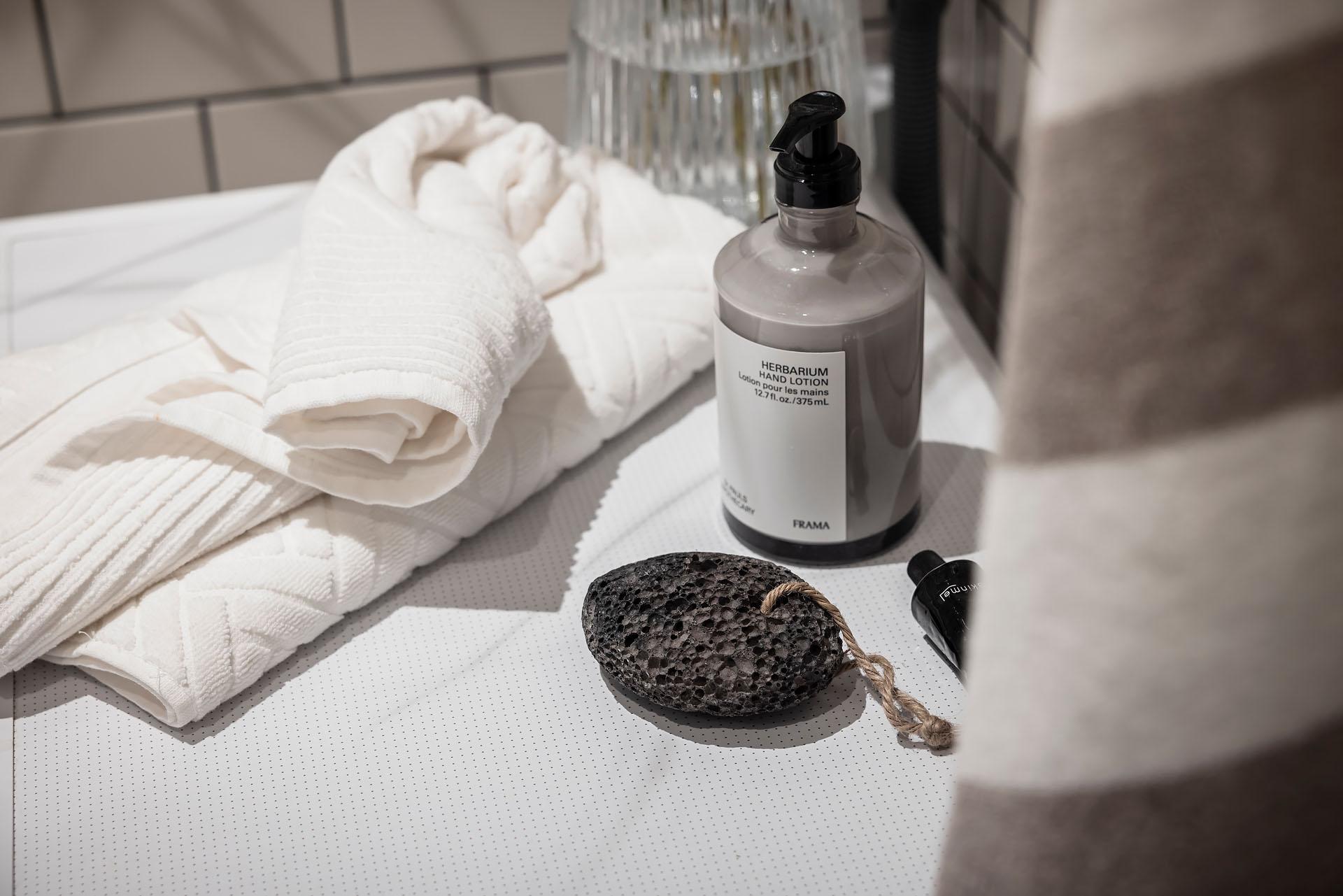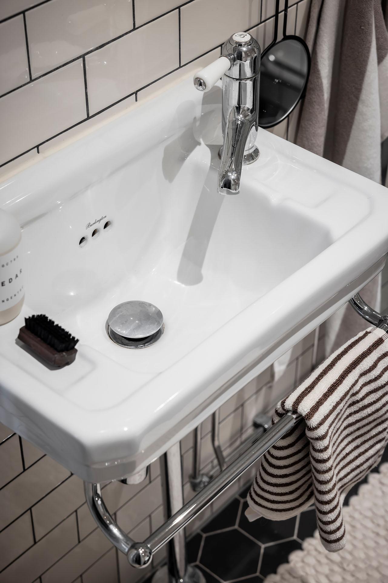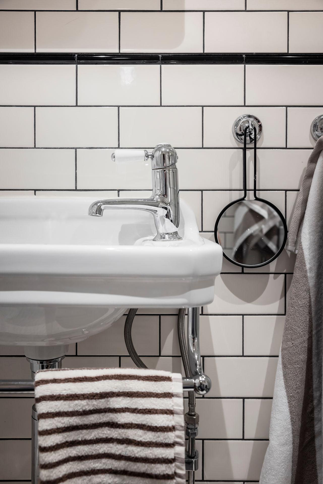 Totalrenoverat under 2022, grått hexagonformat klinker på golvet och vitt kakel lagt i halvförband på väggarna. Det finns plats till en rejäl dusch samt tvättmaskin. Givetvis finns här handdukstork och golvvärme.