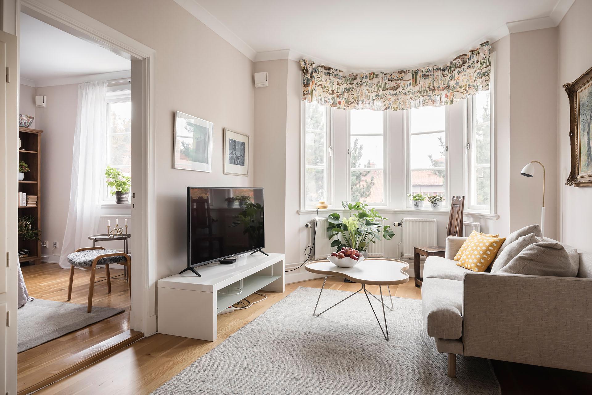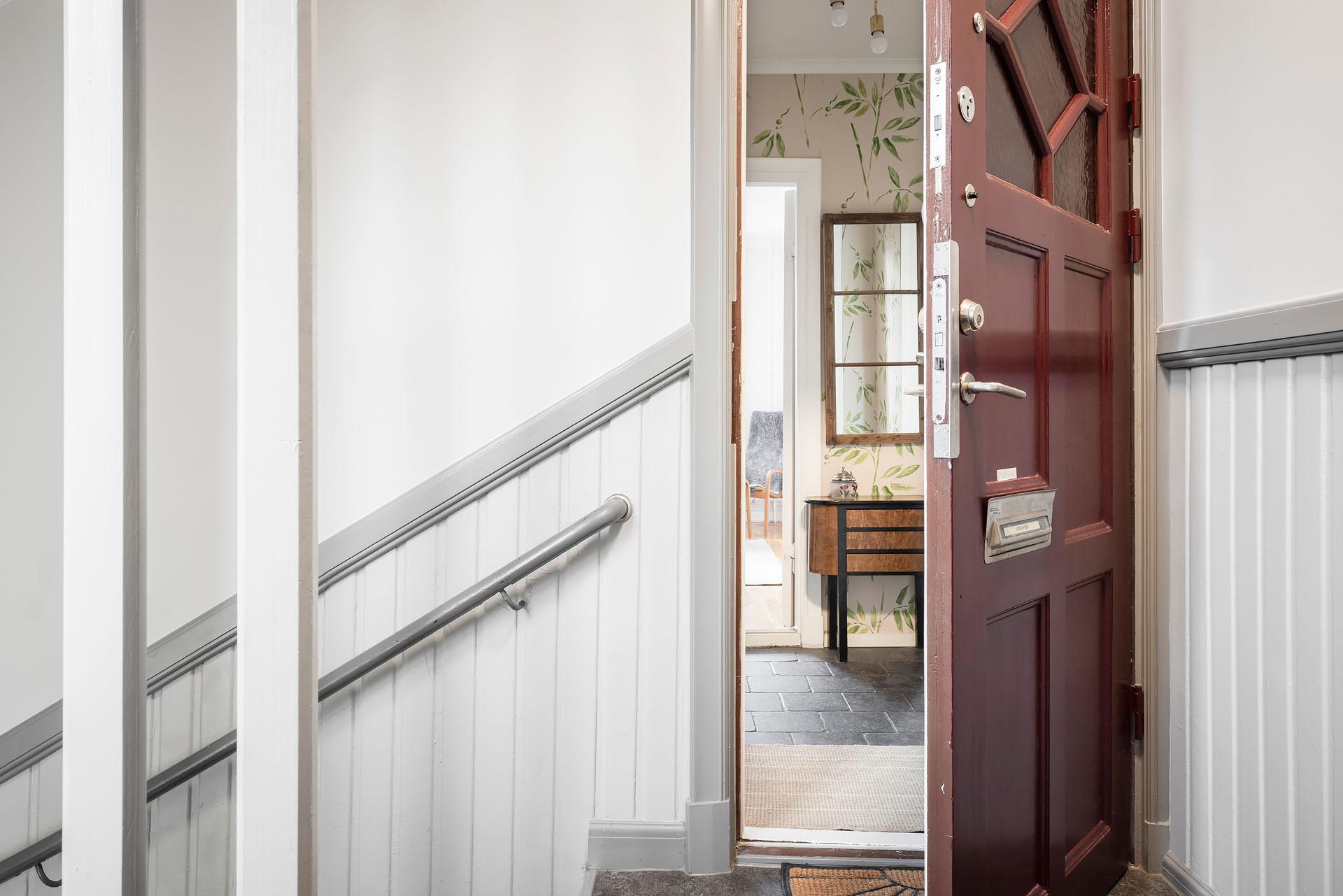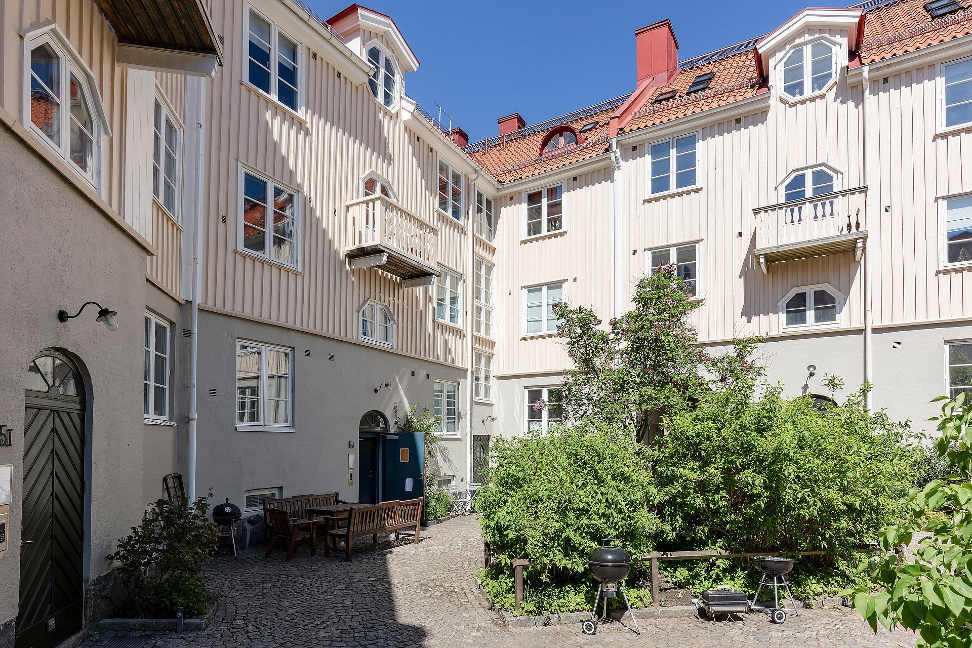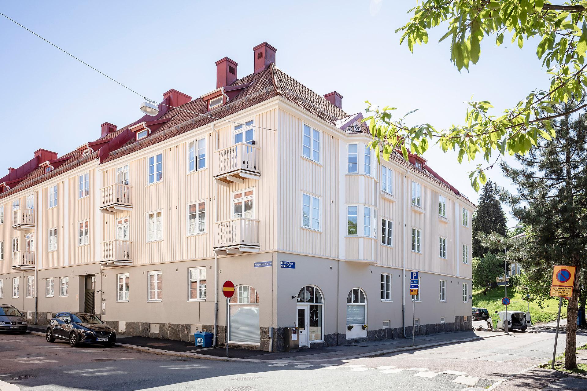 En vacker och välbevarad gaveltrea där varje rum andas harmoni, ljus och historia. Här samsas landshövdingshusets klassiska detaljer med ett genomtänkt och väl omhändertaget skick. Tre rum i fil med spröjsade fönster, spegeldörrar, spontpanel och takrosett skapar en unik karaktär – och balkongen, en av Bagaregårdens sällsynta, ger utsikt över de lummiga och kulturhistoriska kvarteren där Bagaregårdsgatan möter Viloplatsen. Bostaden har löpande renoverats med varsam hand och är redo för inflyttning, men rymmer också fin potential för den som önskar öppna upp mellan kök och vardagsrum. Föreningen är välskött och gården en av områdets mest omtyckta – en grön oas med plats för både stillhet och samvaro.